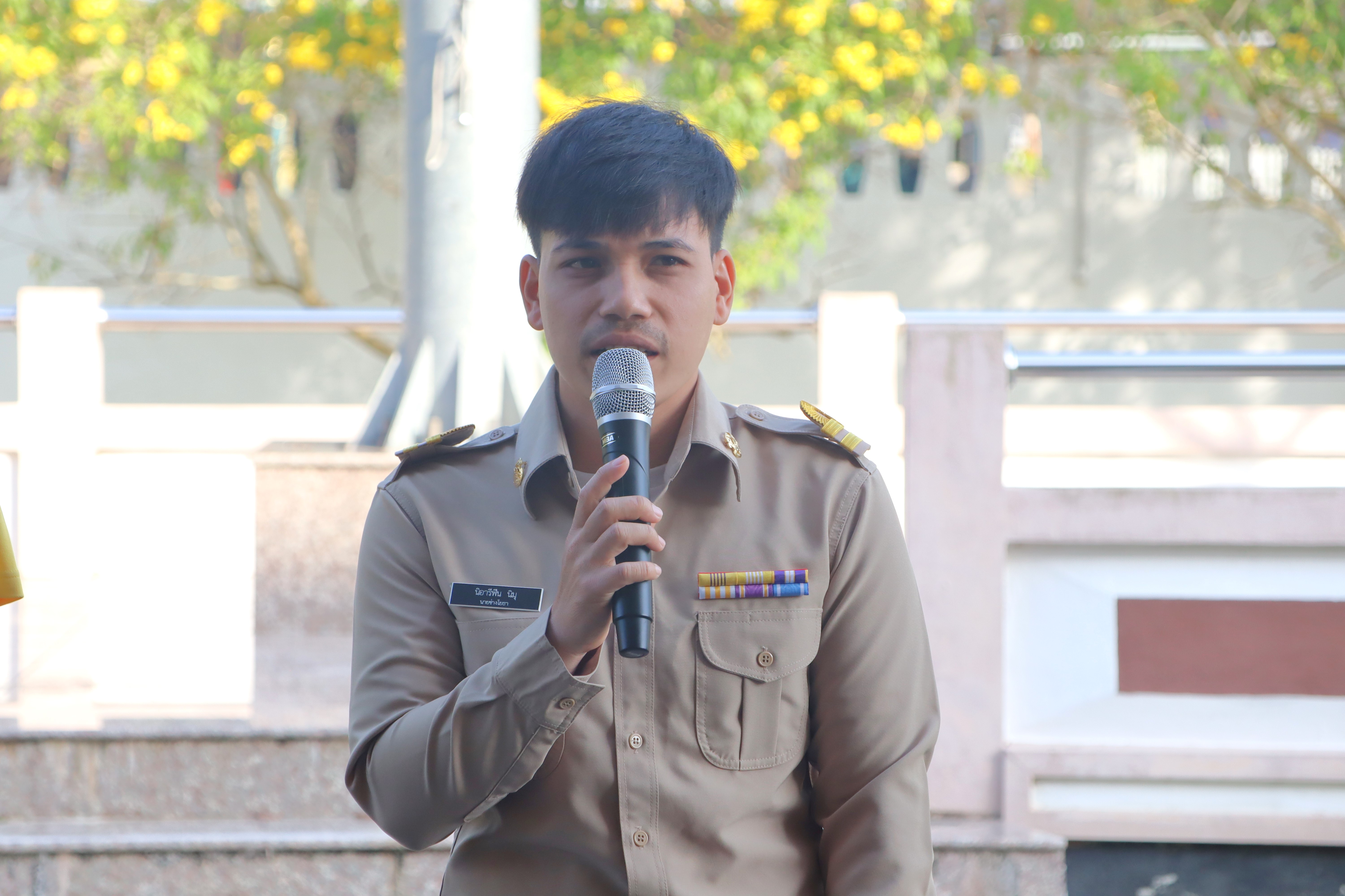 นายจอมปวีร์ จันทร์หิรัญ ผู้อำนวยการสำนักงานทางหลวงที่ 18 รักษาราชการแทน ผู้อำนวยการแขวงทางหลวงนราธิวาส มอบหมายให้รองผู้อำนวยการแขวงทางหลวงนราธิวาส ฝ่ายปฏิบัติการ ฝ่ายวิศวกรรม และฝ่ายบริหาร นำข้าราชการ และเจ้าหน้าที่แขวงทางหลวงนราธิวาส ร่วมกิจกรรมเข้าแถวเคารพธงชาติ โดยร่วมแต่งกายด้วยเสื้อสีเหลืองเพื่อเฉลิมพระเกียรติพระบาทสมเด็จพระเจ้าอยู่หัว เนื่องในโอกาสมหามงคลเฉลิมพระชนมพรรษา 6 รอบ 28 กรกฏาคม 2567 และเพื่อเสริมสร้างจิตสำนึกต่อสถาบันชาติ ศาสนา พระมหากษัตริย์ และการเป็นข้าราชการที่ดี เพื่อแสดงออกถึงความจงรักภักดีต่อชาติ ศาสนา พระมหากษัตริย์ และเป็นการเตรียมความพร้อมในการปฏิบัติราชการ อีกทั้งยังเป็นการเพิ่มประสิทธิภาพในการทำงาน เสริมสร้างความรัก ความสามัคคีในองค์กร พร้อมกันนี้ได้ให้การต้อนรับ และร่วมแสดงความยินดีกับข้าราชการบรรจุใหม่ และข้าราชการโอนย้ายมาปฏิบัติงาน ณ แขวงทางหลวงนราธิวาส โดยมีรองผู้อำนวยการแขวงทางหลวงนราธิวาส ฝ่ายปฏิบัติการ ฝ่ายวิศวกรรม และฝ่ายบริหาร กล่าวต้อนรับ