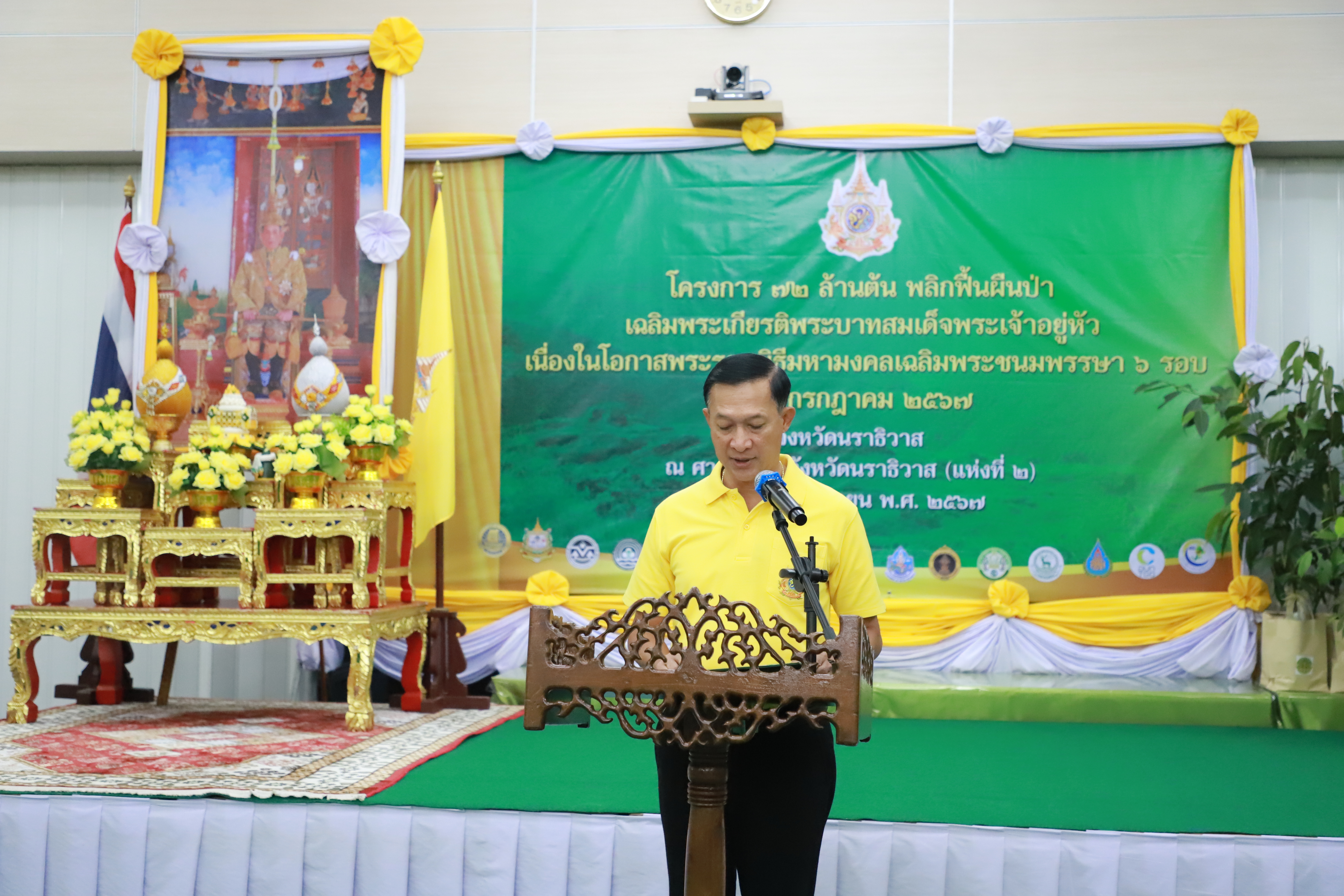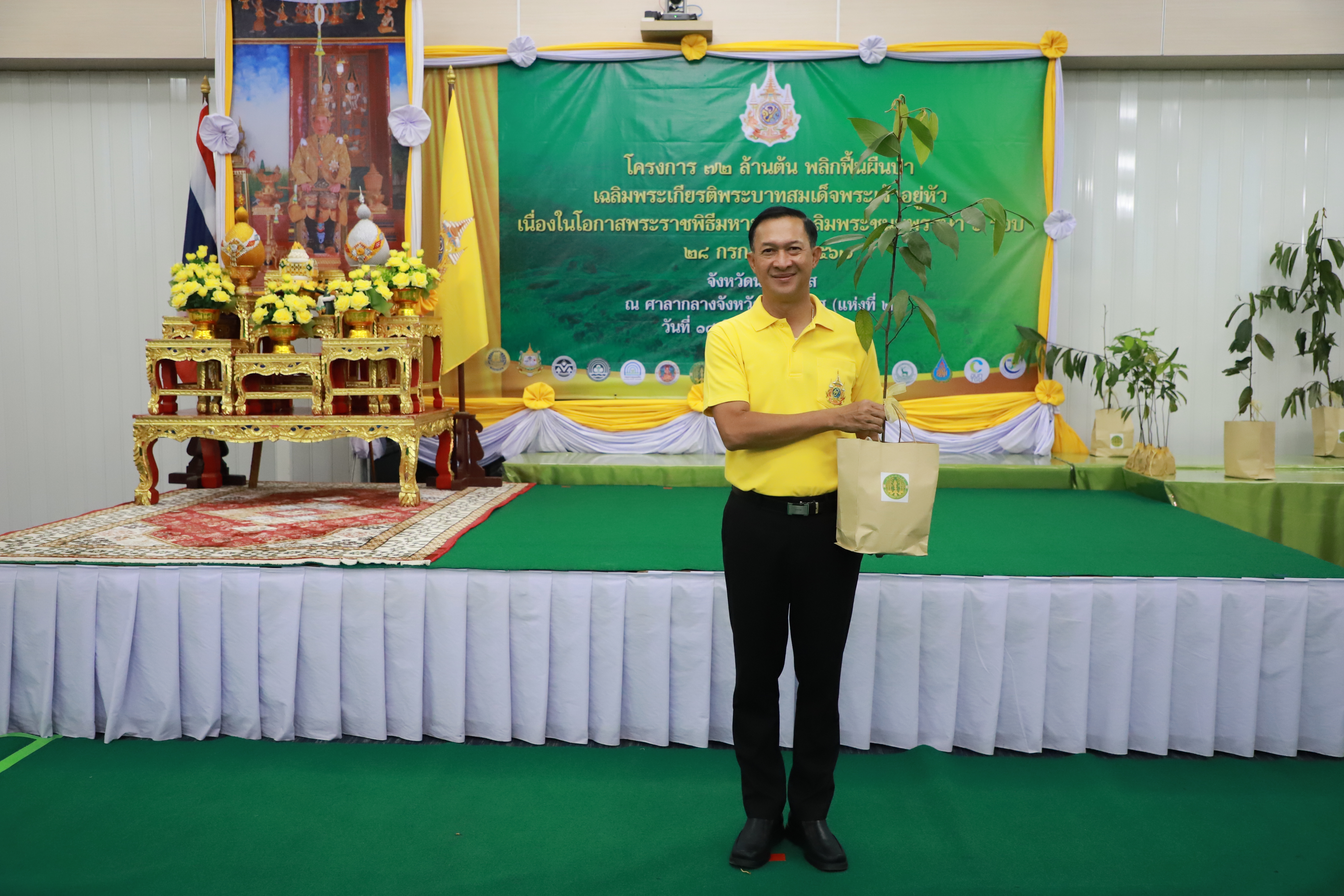นายปฏิเวชวุฒิศักย์ สุขขี ผู้อำนวยการแขวงทางหลวงนราธิวาส มอบหมายให้นางกานดา วรรณสิงห์ เจ้าพนักงานสถิติชำนาญงาน ร่วมพิธีมอบกล้าไม้ให้หัวหน้าส่วนราชการในท้องที่จังหวัดนราธิวาส ภายใต้ “โครงการ 72 ล้านต้น พลิกฟื้นผืนป่า เฉลิมพระเกียรติพระบาทสมเด็จพระเจ้าอยู่หัวเนื่องในโอกาสพระราชพิธีมหามงคลเฉลิมพระชนมพรรษา 6 รอบ 28 กรกฎาคม 2567” โดยมีว่าที่ร้อยตรี ตระกูล โทธรรม ผู้ว่าราชการจังหวัดนราธิวาส เป็นประธานในพิธี ณ ห้องประชุมพระนราภิบาล (เล็ก) ชั้น 4 ศาลากลางจังหวัดนราธิวาส (แห่งที่ 2) ตำบลลำภู อำเภอเมืองนราธิวาส จังหวัดนราธิวาส