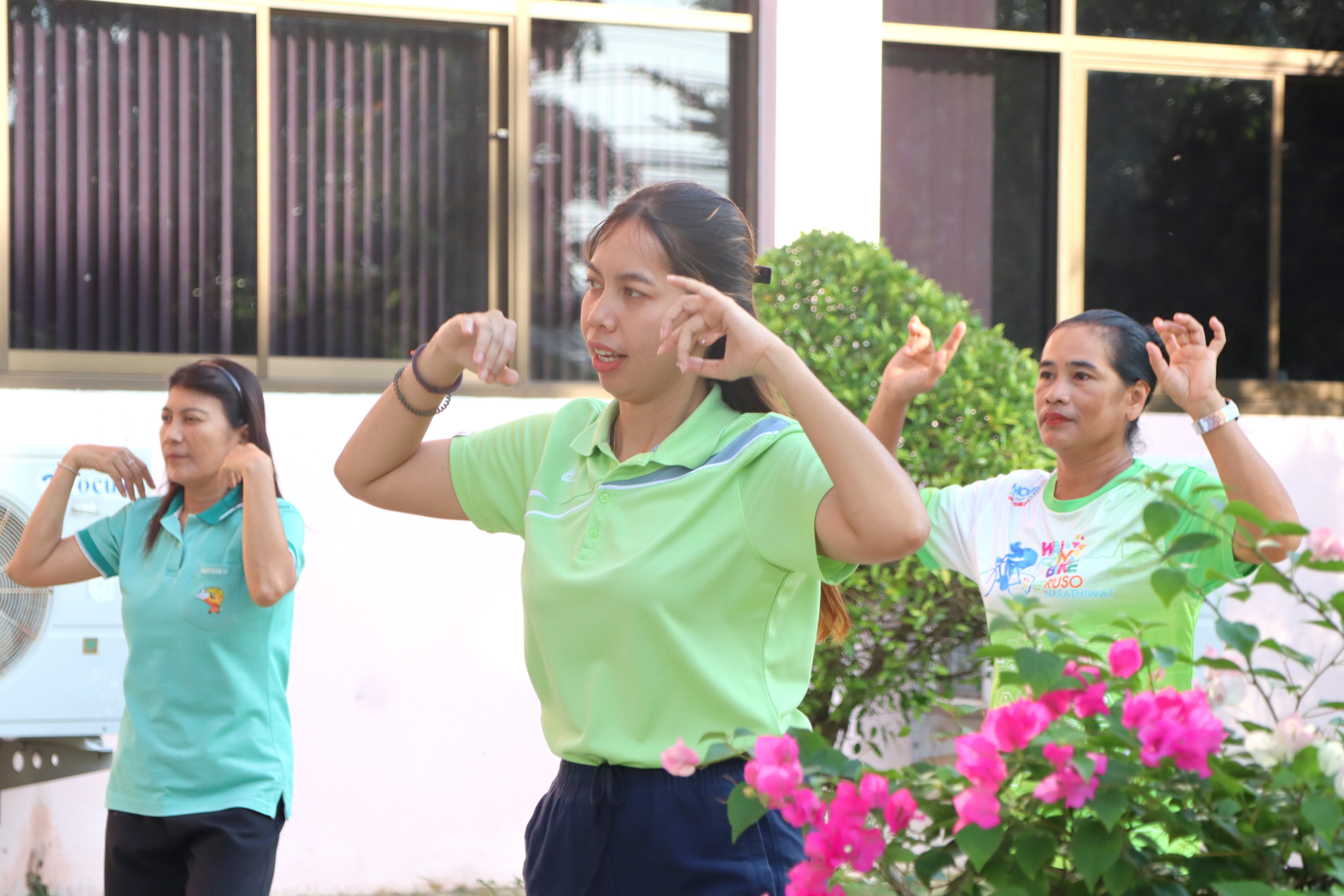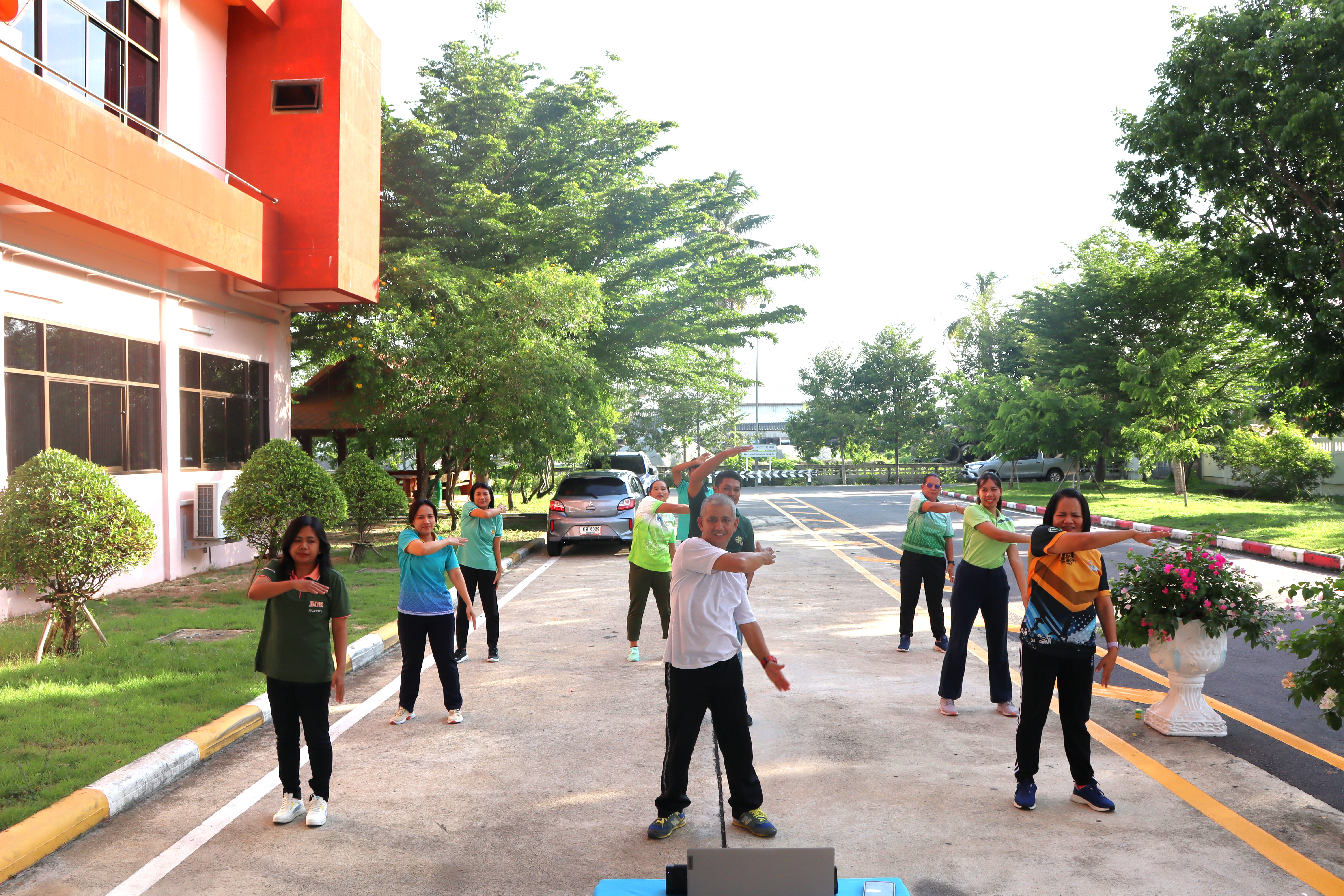 นายปฏิเวชวุฒิศักย์ สุขขี ผู้อำนวยการแขวงทางหลวงนราธิวาส มอบหมายให้นางอรัญญา เพ็ชรพูล รองผู้อำนวยการแขวงทางหลวงนราธิวาส (ฝ่ายบริหาร) นำข้าราชการ และเจ้าหน้าที่ในสังกัด ร่วมกิจกรรมการออกกำลังกายทุกวันพุธตามนโยบายขับเคลื่อนการส่งเสริมและพัฒนาการออกกำลังกาย และกีฬาเพื่อมวลชนให้เป็นวิถีชีวิต ณ บริเวณหน้าอาคารสำนักงานแขวงทางหลวงนราธิวาส เพื่อเป็นการเสริมสร้างให้บุคลากร มีสุขภาพพลานามัยที่ดีทำให้สามารถปฏิบัติภารกิจหน้าที่ราชการได้อย่างมีประสิทธิภาพ