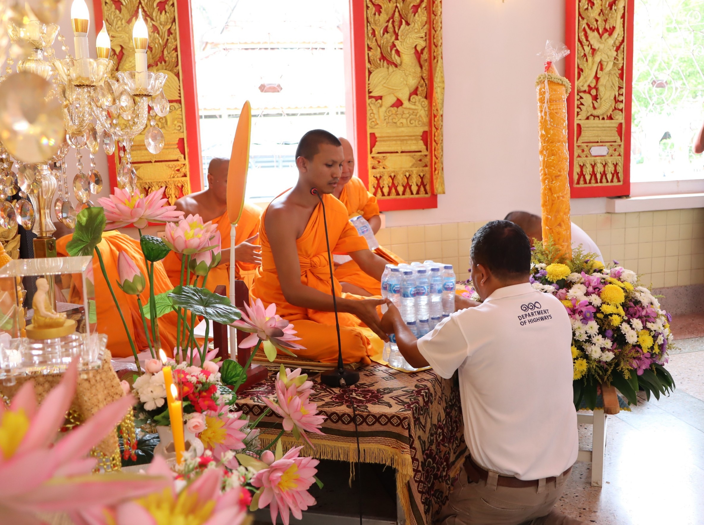 นายปฏิเวชวุฒิศักย์ สุขขี ผู้อำนวยการแขวงทางหลวงนราธิวาส มอบหมายให้นายวีระชัย ปัญญาเถิง ผู้อำนวยการหมวดทางหลวงอาวุโสนราธิวาส พร้อมด้วยนางกานดา วรรณสิงห์ เจ้าพนักงานสถิติชำนาญงาน และเจ้าหน้าที่แขวงทางหลวงนราธิวาส ร่วมพิธีถวายเทียนพรรษา พร้อมทั้งถวายเครื่องสังฆทานและจตุปัจจัย กิจกรรมสัปดาห์ส่งเสริมพระพุทธศาสนา เนื่องในวันอาสาฬหบูชาและวันเข้าพรรษา ประจำปี 2567 ณ วัดราษฎร์วิริยาราม ต.ยี่งอ อ.ยี่งอ จ.นราธิวาส โดยมี นายกิตติพงษ์ อำพันธ์ นายอำเภอยี่งอ เป็นประธานในพิธี พร้อมด้วยหัวหน้าส่วนราชการ ข้าราชการ ในสังกัดกระทรวงคมนาคม และกระทรวงยุติธรรม ร่วมกิจกรรมดังกล่าว