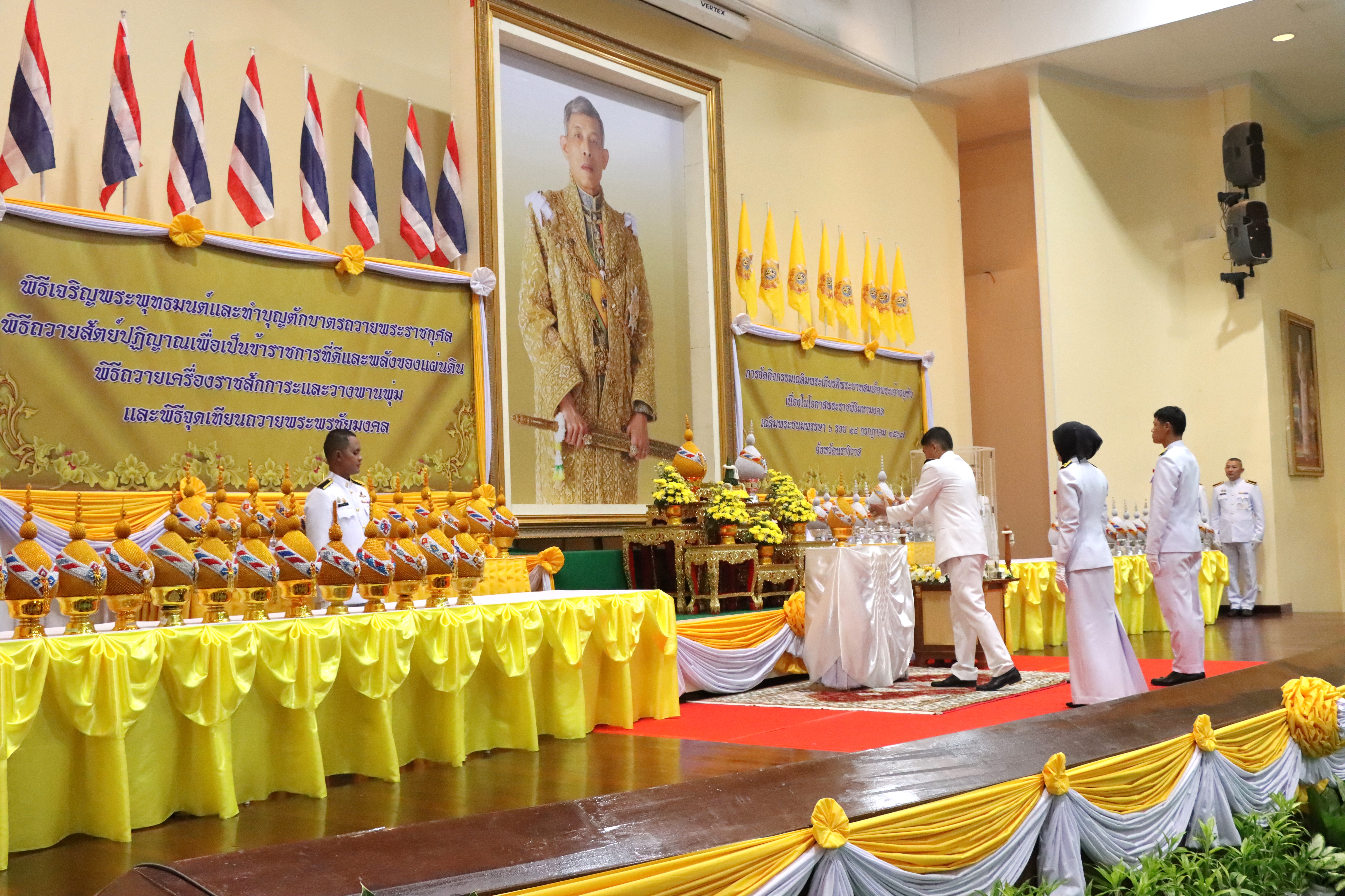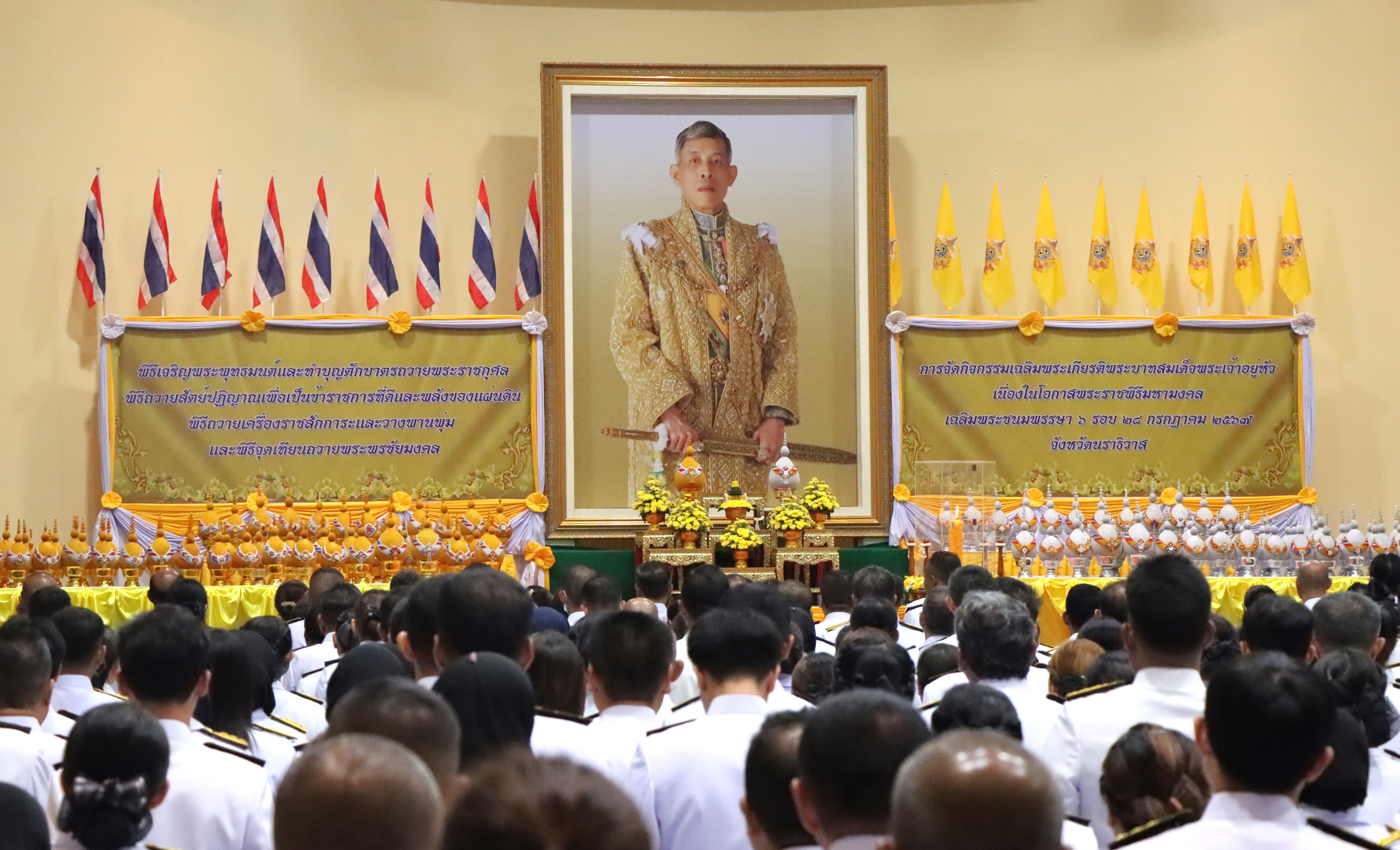 นายปฏิเวชวุฒิศักย์ สุขขี ผู้อำนวยการแขวงทางหลวงนราธิวาส มอบหมายให้นางอรัญญา เพ็ชรพูล รองผู้อำนวยการแขวงทางหลวงนราธิวาส (ฝ่ายบริหาร) พร้อมด้วยเจ้าหน้าที่ในสังกัด ร่วมพิธีถวายเครื่องราชสักการะและวางพานพุ่ม และพิธีจุดเทียนชัยถวายพระพรชัยมงคลเฉลิมพระเกียรติพระบาทสมเด็จพระเจ้าอยู่หัว เนื่องในโอกาสพระราชพิธีมหามงคลเฉลิมพระชนมพรรษา 6 รอบ 28 กรกฎาคม 2567 ณ หอประชุมเฉลิมพระเกียรติ 7 รอบ พระชนมพรรษา ศาลากลางจังหวัดนราธิวาส แห่งที่ 1 โดยมีนายสิทธิชัย สวัสดิ์แสน รองผู้ว่าราชการจังหวัดนราธิวาส เป็นประธานในพิธี พร้อมด้วยส่วนราชการ รัฐวิสาหกิจ ประชาชน ร่วมพิธีดังกล่าว