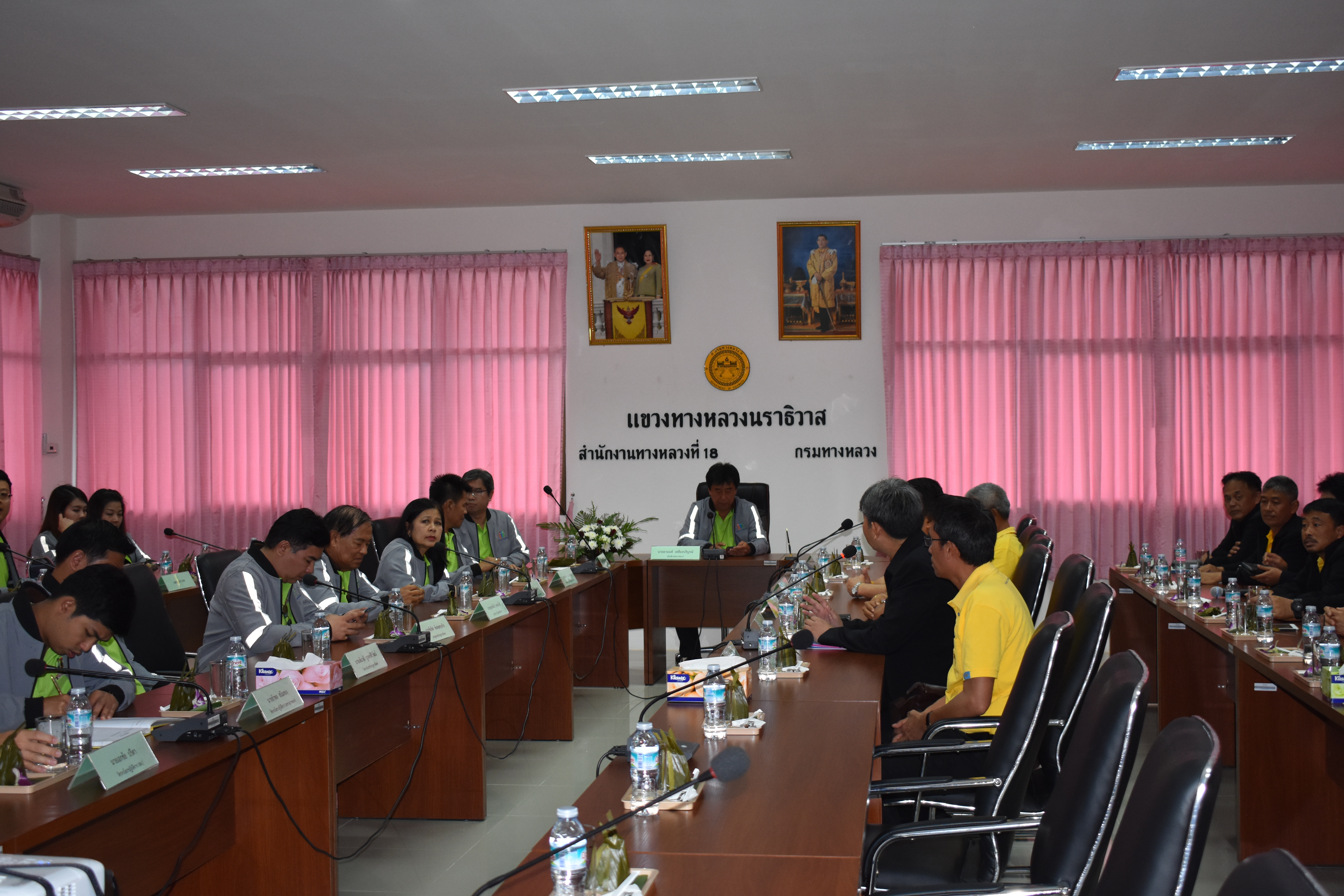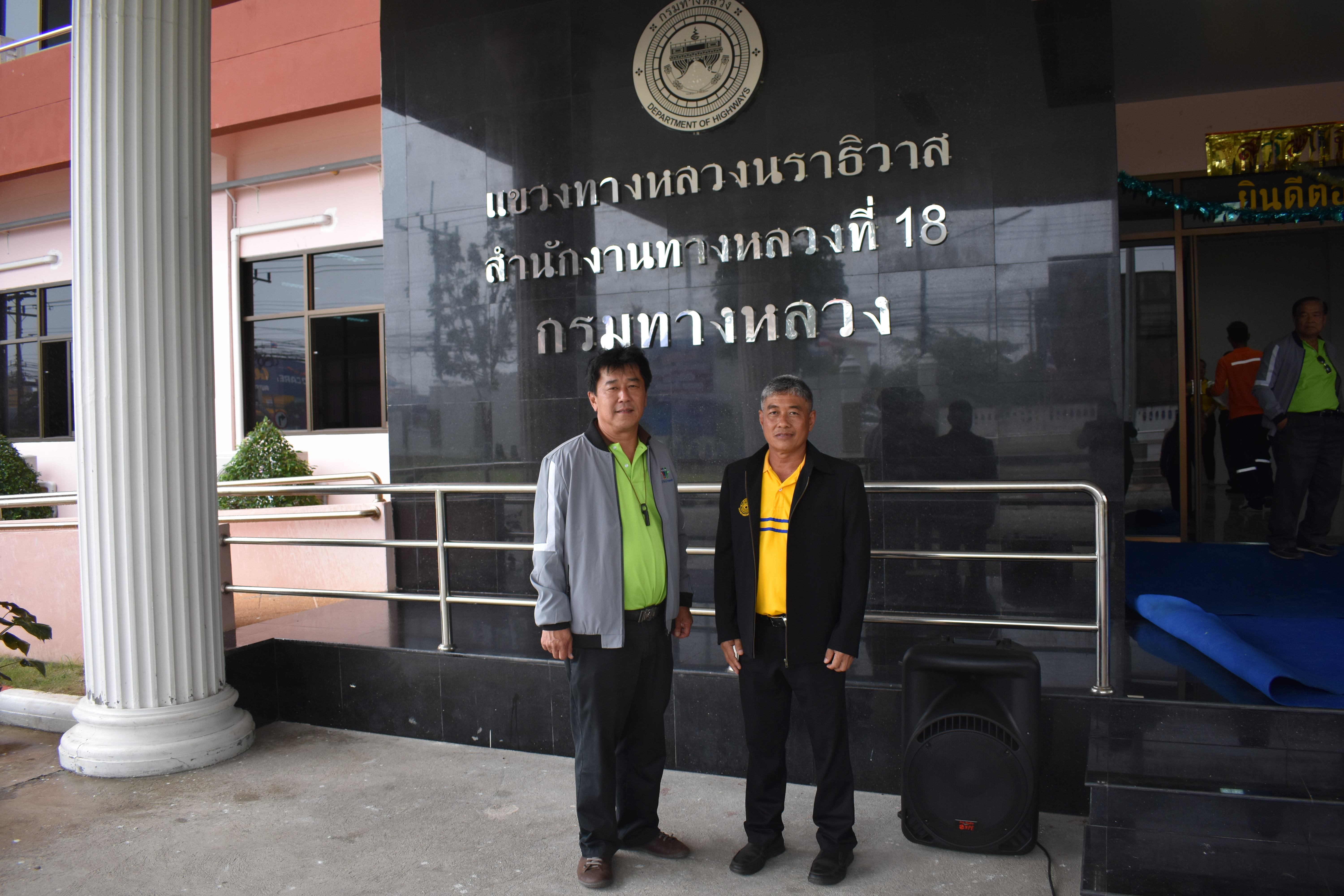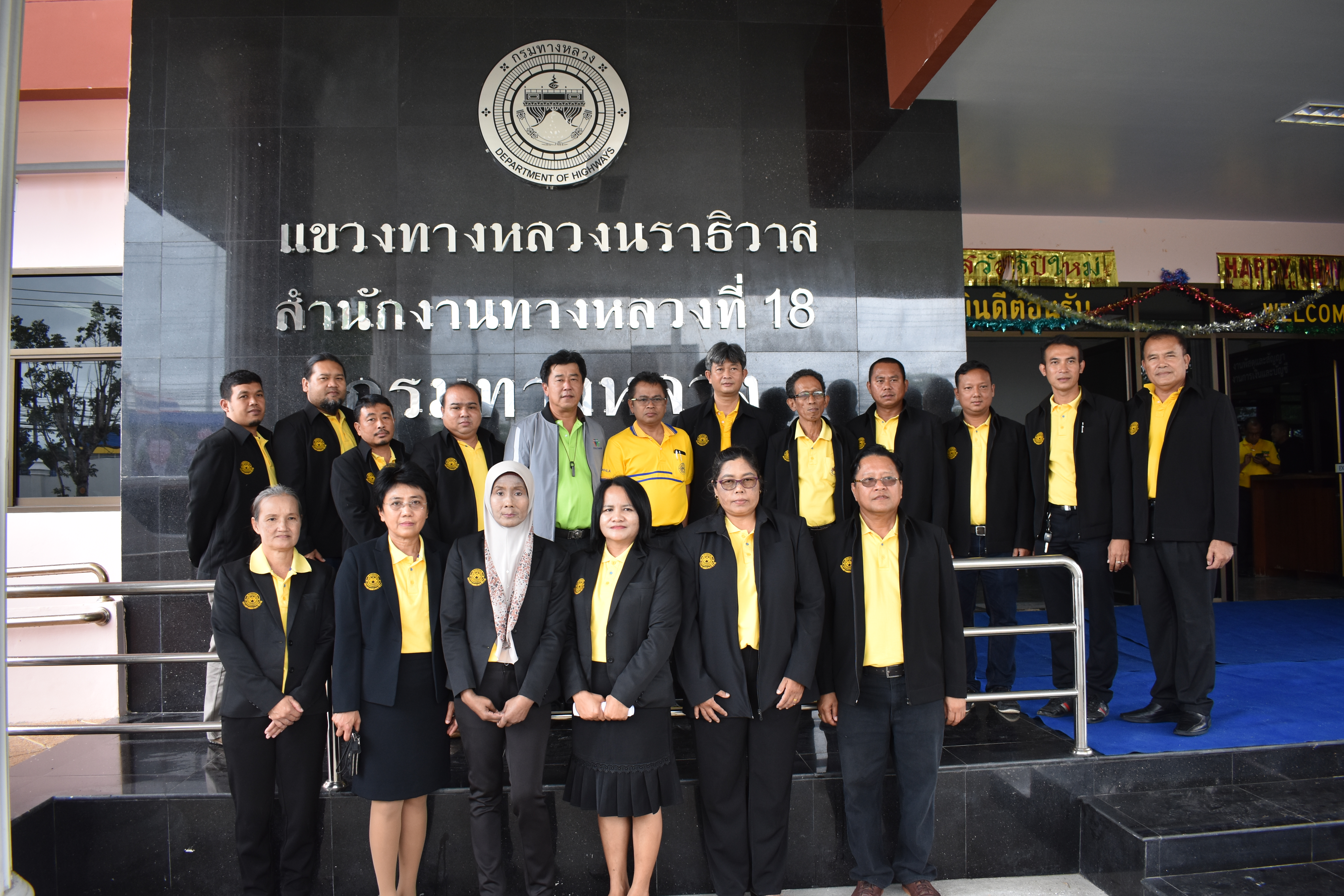 วันพฤหัสบดีที่ 17 มกราคม 2562 เวลา 9.30น. นายอานนท์ เหลืองบริบูรณ์ อธิบดีกรมทางหลวง พร้อมด้วยนายสิทธิชัย บุญสะอาด วิศวกรใหญ่ด้านวางแผนและวางโครงการก่อสร้าง กรมทางหลวงพร้อมคณะ ได้เดินทางมาตรวจเยี่ยม เพื่อสร้างขวํญและกำลังใจ ให้กับผู้ปฏิบัติงาน ณ แขวงทางหลวงนราธิวาส โดยการเดินทางมาตรวจราชการคราวนี้ ท่านอธิบดีได้ซักถามและชี้แนะการดำเนินงานต่างๆ โดยมีนายอรุณ เสน่ห์ ผู้อำนวยการสำนักงานทางหลวงที่ 18 นายคมกริช ตันตรัตนพงษ์ ผู้อำนวยการแขวงทางหลวงนราธิวาส และเจ้าหน้าที่แขวงทางหลวงนราธิวาส ร่วมให้การต้อนรับ
