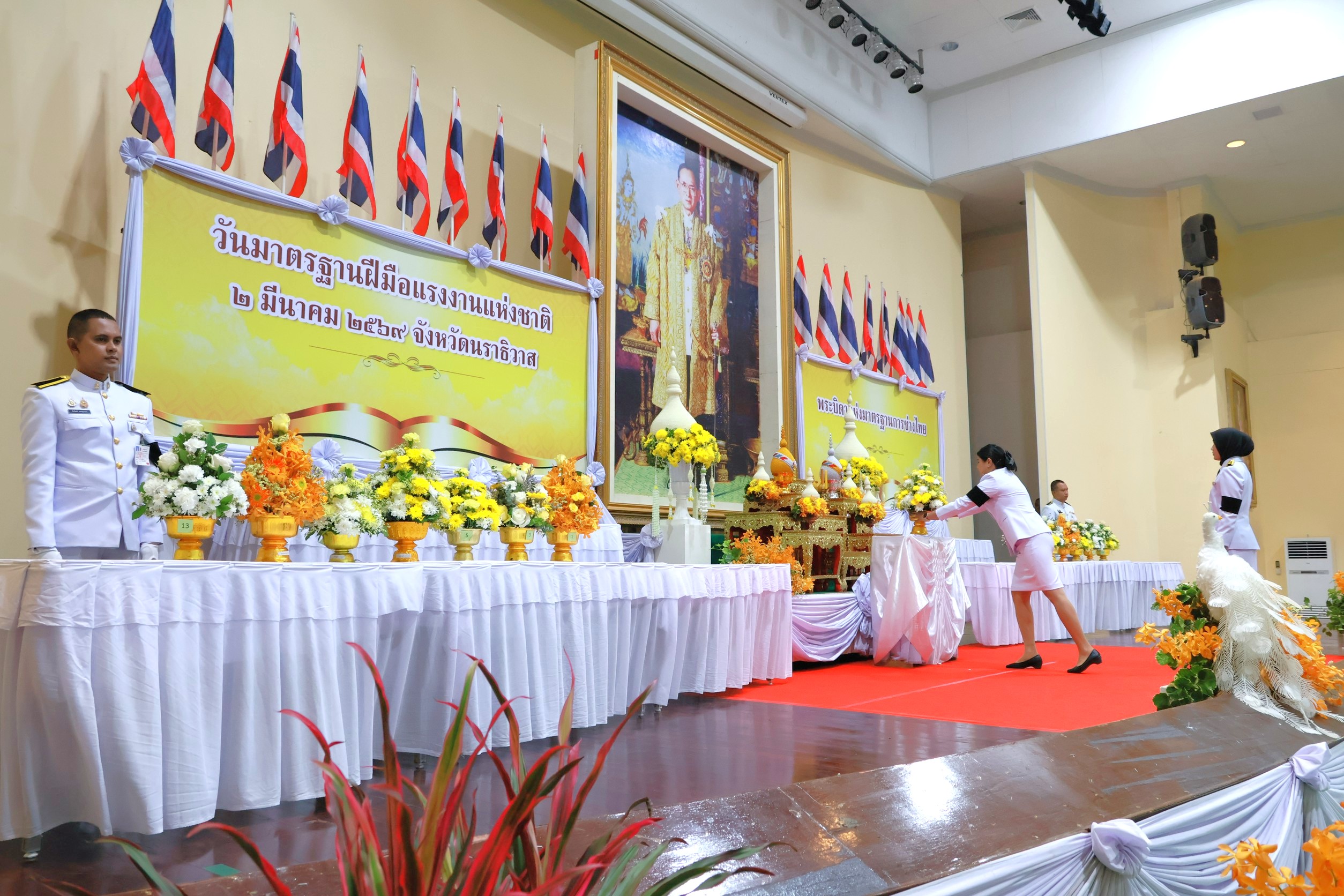 นายสมนึก เศียรอุ่น ผู้อำนวยการแขวงทางหลวงนราธิวาส มอบหมายให้นางอรัญญา เพ็ชรพูล รองผู้อำนวยการแขวงทางหลวงนราธิวาส ฝ่ายบริหาร และนางสาวซูเดีย ดารามั่น พนักงานบริการ ร่วมพิธีถวายราชสักการะแด่พระบาทสมเด็จพระบรมชนกาธิเบศร มหาภูมิพลอดุลยเดชมหาราชบรมนาถบพิตร "พระบิดาแห่งมาตรฐานการช่างไทย" ประจำปี 2569 ซึ่งเป็นวันมาตรฐานฝีมือแรงงานแห่งชาติ เพื่อรำลึกถึงพระมหากรุณาธิคุณที่ทรงให้ความสำคัญกับการพัฒนาทักษะช่างไทยให้ได้มาตรฐานสากล ในการนี้มีนายบุญช่วย หอมยามเย็น ผู้ว่าราชการจังหวัดนราธิวาส เป็นประธานในพิธี พร้อมด้วยหัวหน้าส่วนราชการ ข้าราชการ และเจ้าหน้าที่ เข้าร่วมพิธีดังกล่าว