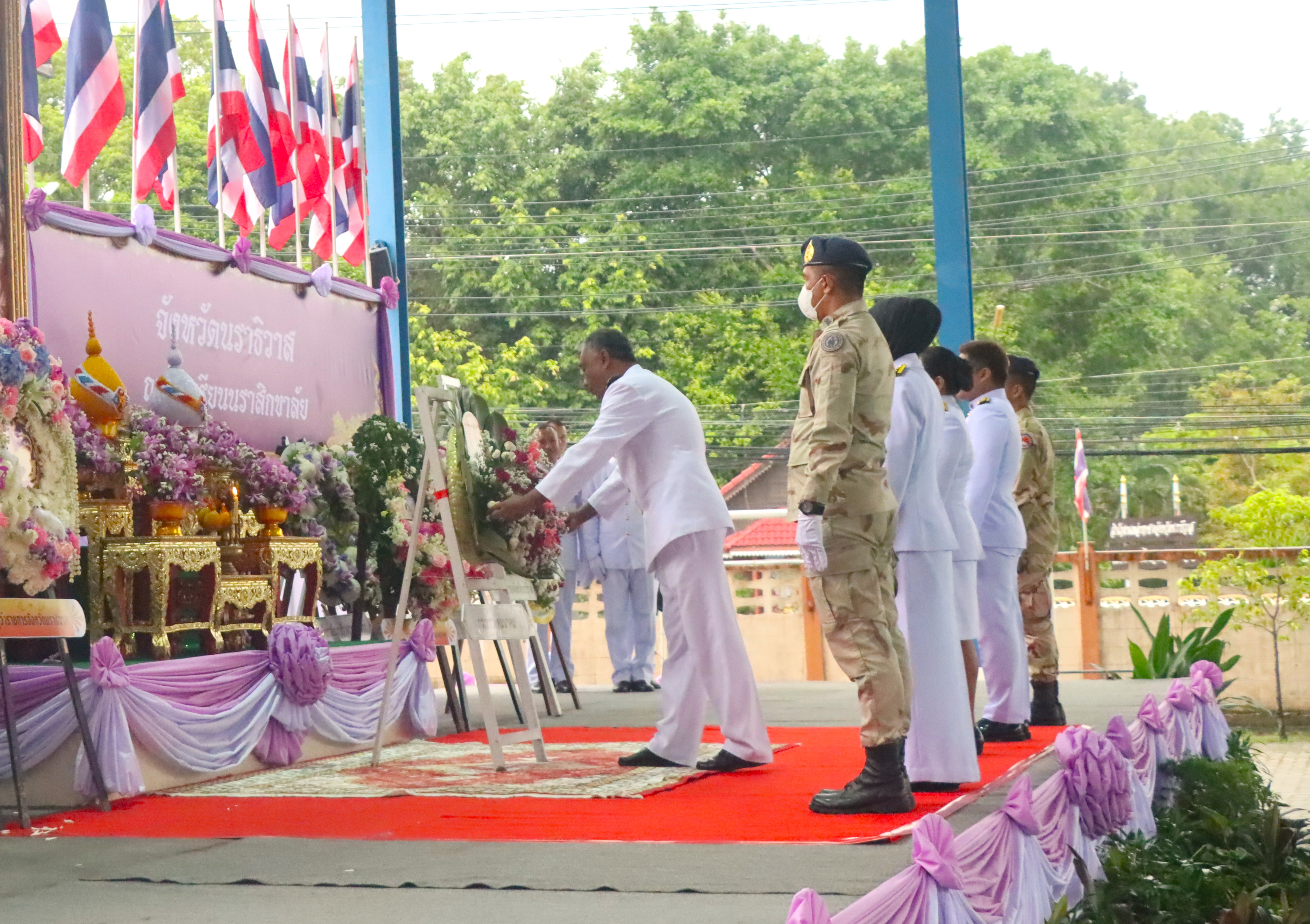นายสมัคร เลือดวงหัด ผู้อำนวยการแขวงทางหลวงนราธิวาส มอบหมายให้ นางอรัญญา เพ็ชรพูล รองผู้อำนวยการแขวงทางหลวงนราธิวาส (ฝ่ายบริหาร) และเจ้าหน้าที่แขวงทางหลวงนราธิวาส ร่วมกิจกรรมเนื่องในวันสมเด็จพระมหาธีรราชเจ้า ซึ่งเป็นวันคล้ายวันสวรรคตของพระบาทสมเด็จมงกุฎเกล้าเจ้าอยู่หัว พระผู้พระราชทานกำเนิดลูกเสือไทย โดยร่วมพิธีทางสงฆ์ ตักบาตรถวายเป็นพระราชกุศล และร่วมพิธีวางพวงมาลา ณ โรงเรียนนราสิขาลัย อำเภอเมืองนราธิวาส จังหวัดนราธิวาส ในการนี้มีนายปรีชา นวลน้อย รองผู้ว่าราชการจังหวัดนราธิวาส เป็นประธานในพิธี