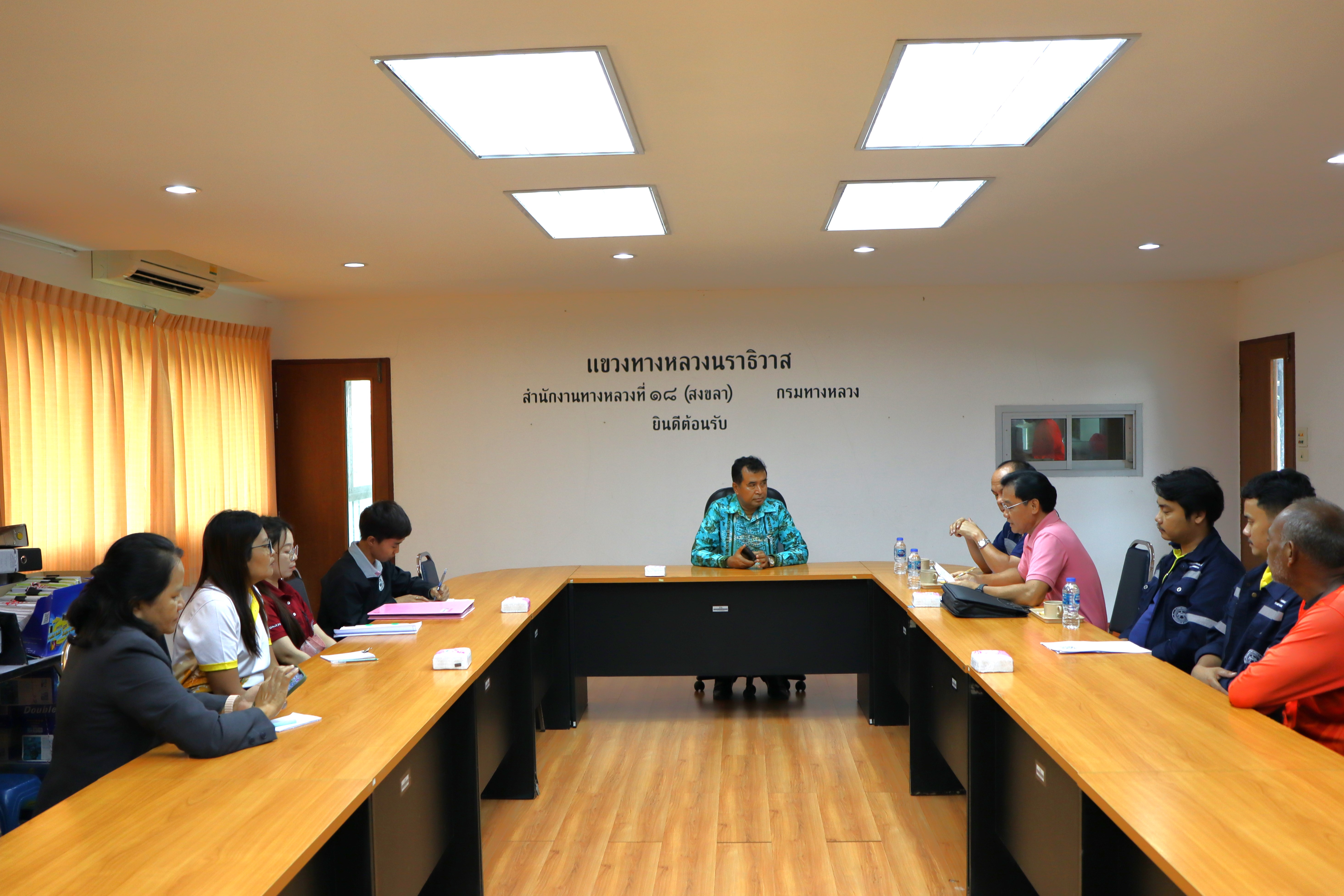 นายสมัคร เลือดวงหัด ผู้อำนวยการแขวงทางหลวงนราธิวาส พร้อมด้วย นางอรัญญา เพ็ชรพูล รองผู้อำนวยการแขวงทางหลวงนราธิวาส (ฝ่ายบริหาร) และเจ้าหน้าที่แขวงทางหลวงนราธิวาส ร่วมประชุมร่วมกับเจ้าหน้าที่สำนักเครื่องกลและสื่อสาร กรมทางหลวง โดยลงพื้นที่ติดตามการดำเนินงานในพื้นที่สำนักงานทางหลวงที่ 18 ณ ห้องประชุมแขวงทางหลวงนราธิวาส