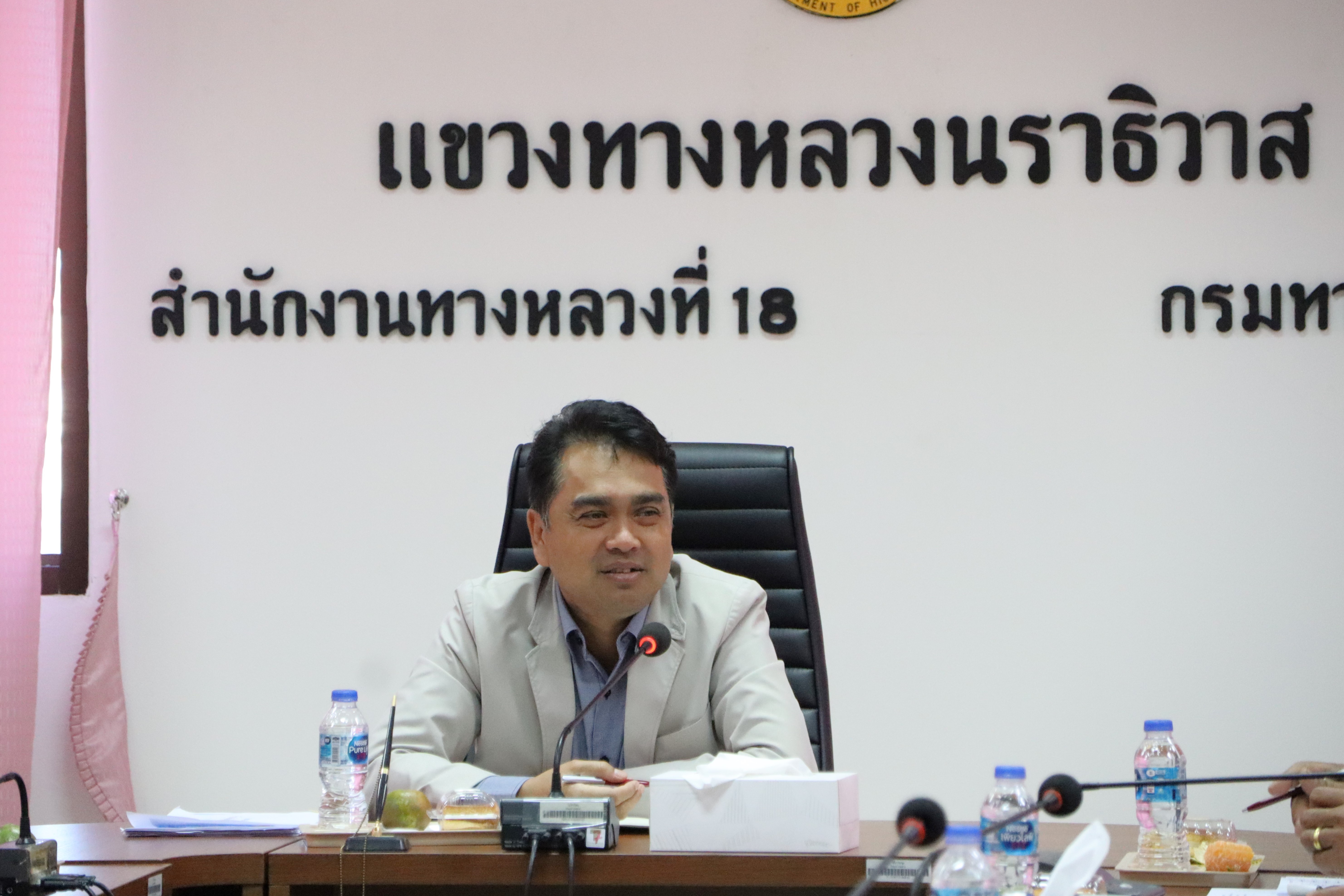 นายจอมปวีร์ จันทร์หิรัญ ผู้อำนวยการสำนักงานทางหลวงที่ 18 รักษาราชการแทน ผู้อำนวยการแขวงทางหลวงนราธิวาส พร้อมด้วยรองผู้อำนวยการฝ่ายวิศวกรรม ฝ่ายบริหาร ผู้อำนวยการหมวดทางหลวงอาวุโสนราธิวาส หัวหน้าหมวดทางหลวง หัวหน้างาน หัวหน้าหน่วย และข้าราชการ เจ้าหน้าที่แขวงฯ เข้าร่วมประชุมเจ้าหน้าที่แขวงทางหลวงนราธิวาส ครั้งที่ 5/2567 โดยมอบนโยบายให้แก่ข้าราชการ และเจ้าหน้าที่แขวงทางหลวงนราธิวาส พร้อมติดตามผลการดำเนินงานปีงบประมาณ 2567 ณ ห้องประชุม ชั้น 3 แขวงทางหลวงนราธิวาส