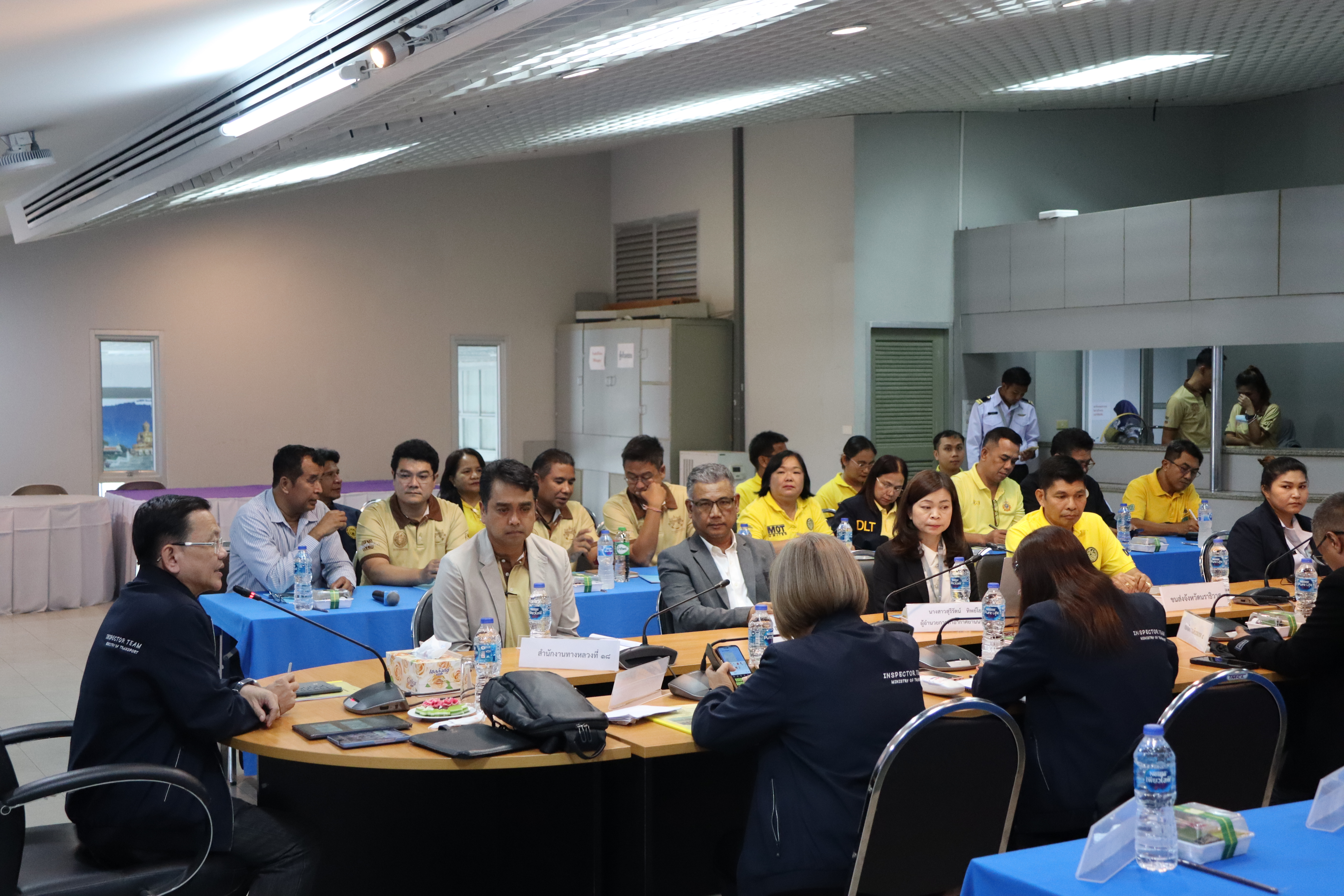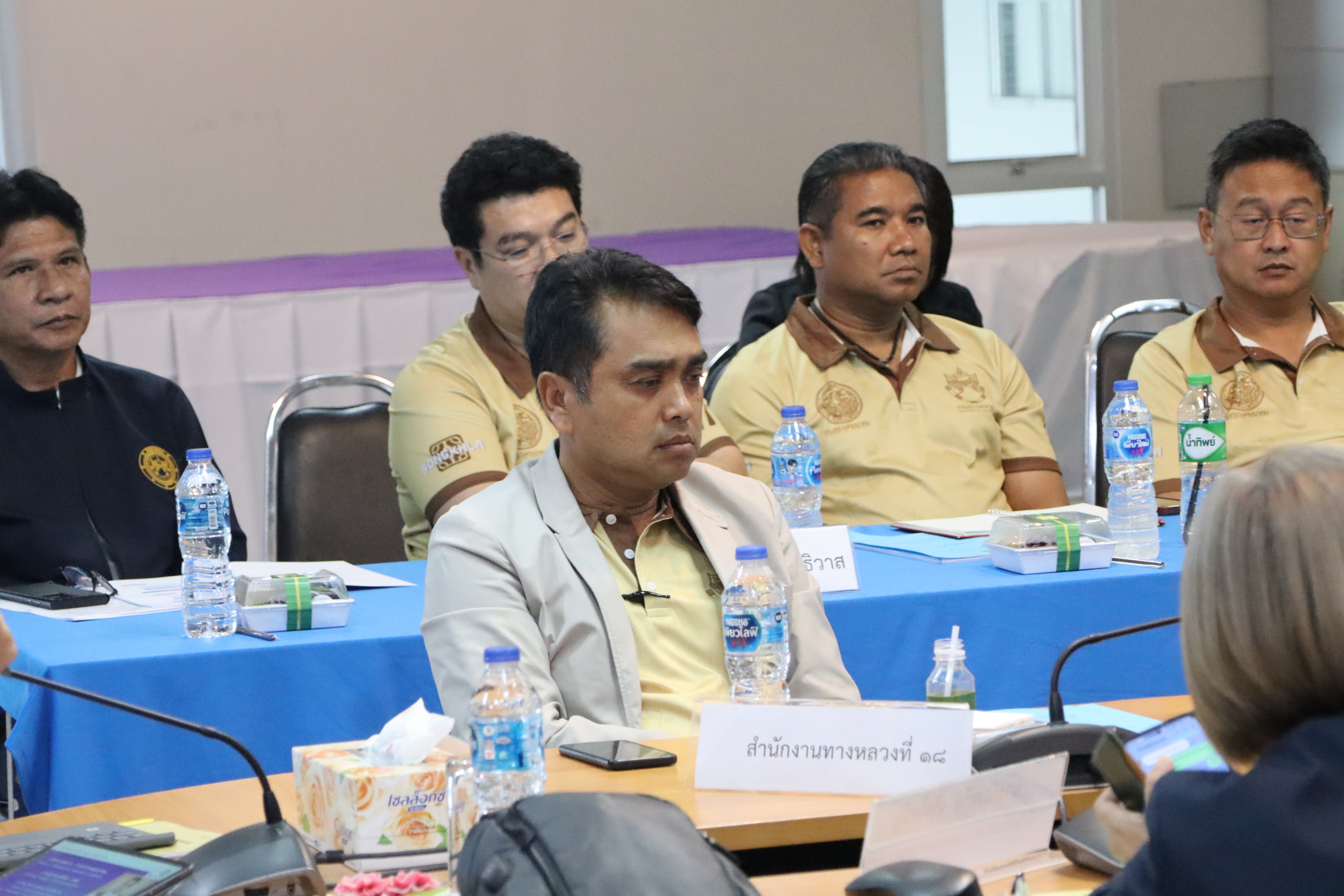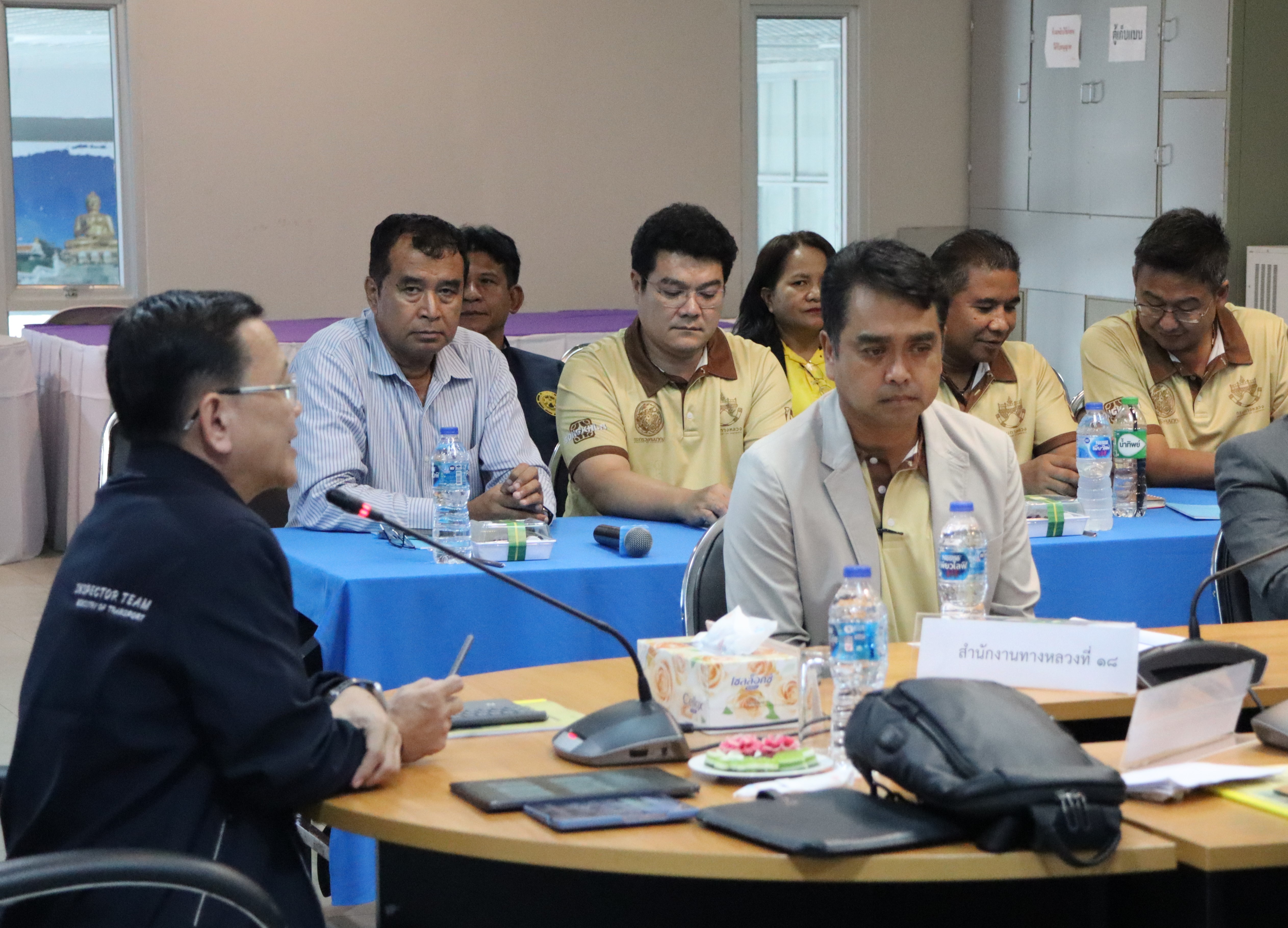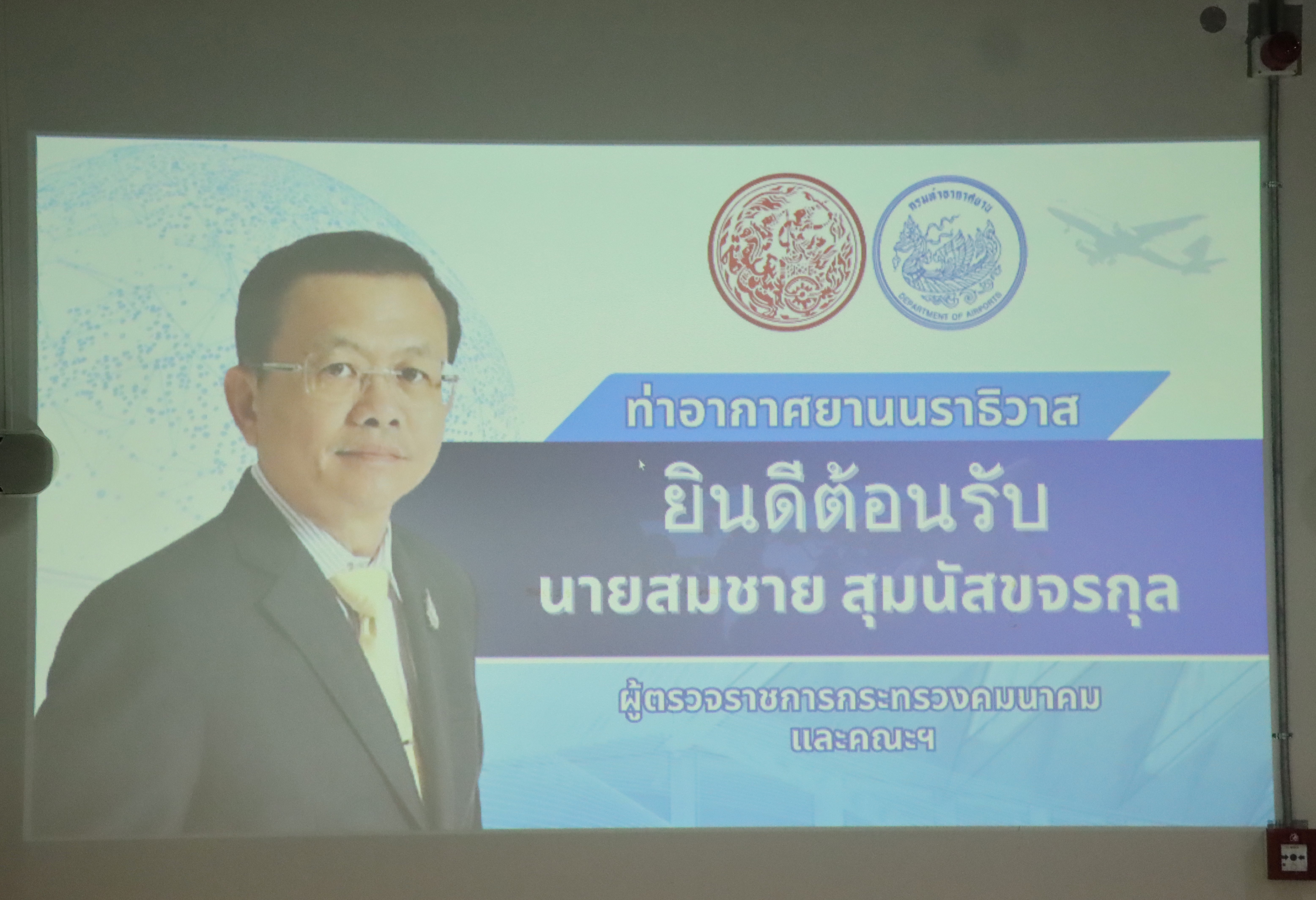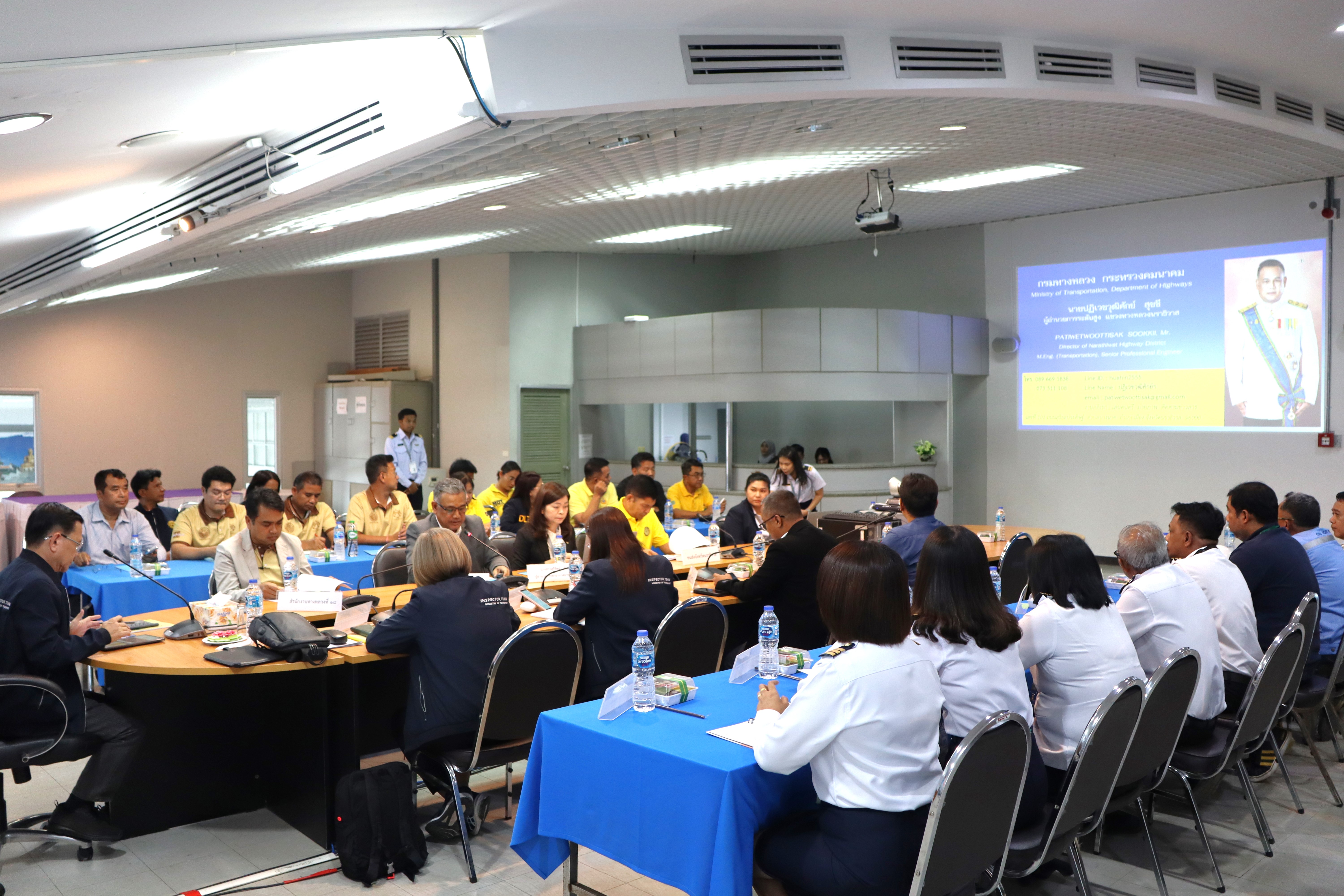 นายจอมปวีร์ จันทร์หิรัญ ผู้อำนวยการสำนักงานทางหลวงที่ 18 นายปฏิเวชวุฒิศักย์ สุขขี ผู้อำนวยการแขวงทางหลวงนราธิวาส พร้อมด้วยผู้อำนวยการส่วนแผนงาน ผู้อำนวยการแขวงทางหลวงในสังกัด นายธวัชชัย เผนานนท์ รองผู้อำนวยการแขวงทางหลวงนราธิวาส (ฝ่ายวิศวกรรม) นางอรัญญา เพ็ชรพูล รองผู้อำนวยการแขวงทางหลวงนราธิวาส (ฝ่ายบริหาร) ร่วมต้อนรับนายสมชาย สุมนัสขจรกุล ผู้ตรวจราชการกระทรวงคมนาคม และคณะฯ เดินทางมาตรวจราชการในพื้นที่เขตตรวจราชการที่ 7 (พื้นที่จังหวัดนราธิวาส) เพื่อตรวจติดตามความก้าวหน้าผลการดำเนินงานของหน่วยงานในสังกัดกระทรวงคมนาคมพื้นที่เขตตรวจราชการที่ 7 (พื้นที่จังหวัดนราธิวาส) ณ ห้องประชุมท่าอากาศยานนราธิวาส ต.โคกเคียน อ.เมืองนราธิวาส จ.นราธิวาส