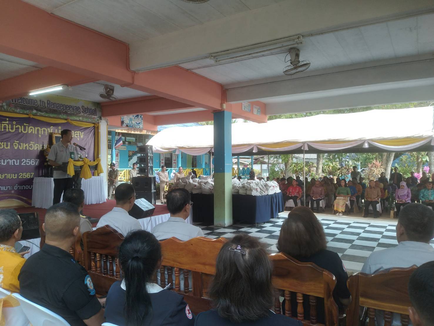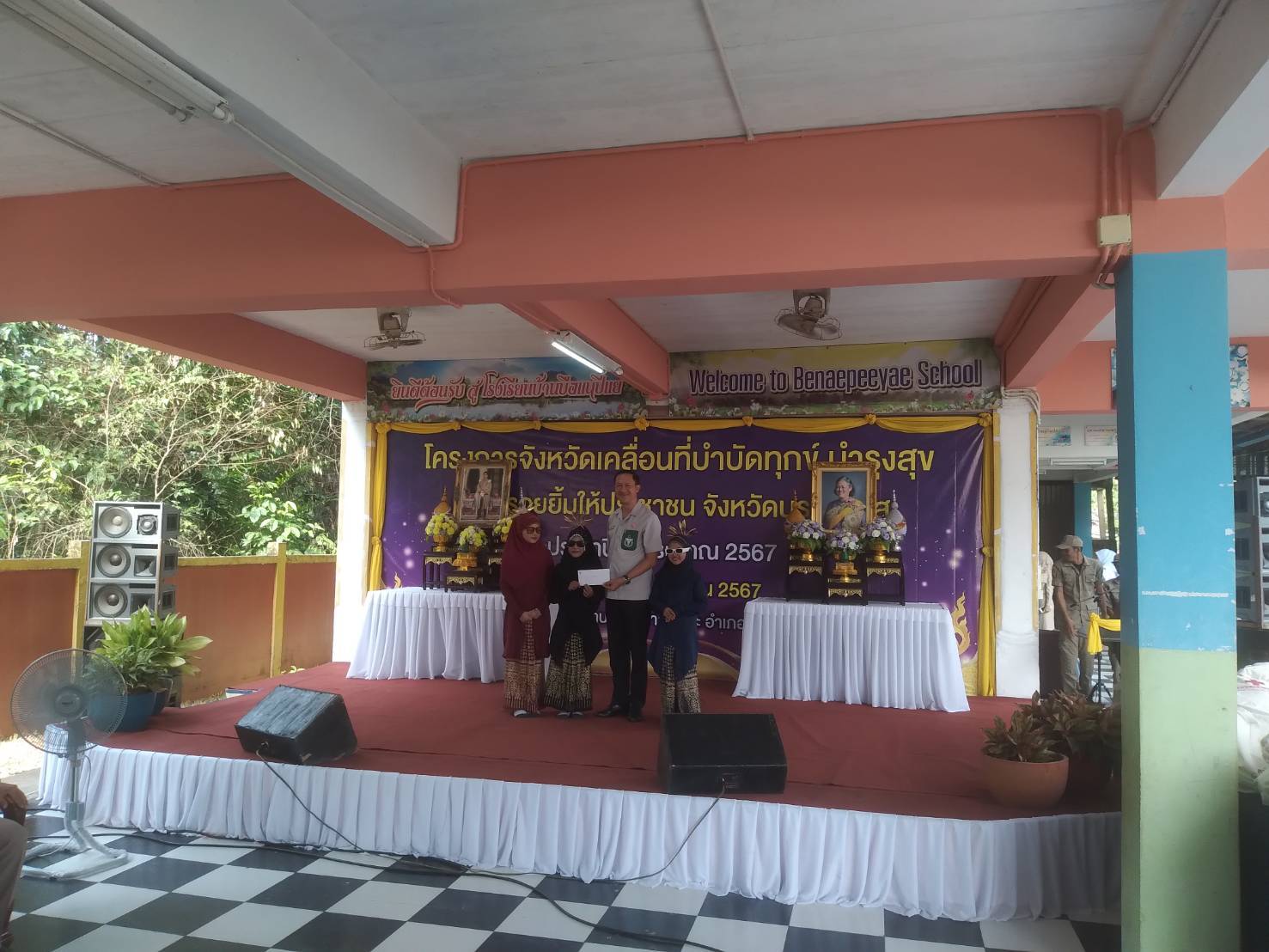 นายปฏิเวชวุฒิศักย์ สุขขี ผู้อำนวยการแขวงทางหลวงนราธิวาส พร้อมด้วยนายเจษฎา สุวรรณรัตน์ หัวหน้าหมวดทางหลวงยี่งอ เข้าร่วมโครงการจังหวัดเคลื่อนที่บำบัดทุกข์ บํารุงสุข สร้างรอยยิ้มให้ประชาชน จังหวัดนราธิวาส ประจำปีงบประมาณ 2567 ณ โรงเรียนบ้านบือแนปีแย ม.1 ต.ปะลุกาสาเมาะ อ.บาเจาะ จ.นราธิวาส โดยมีว่าที่ร้อยตรี ตระกูล โทธรรม ผู้ว่าราชการจังหวัดนราธิวาส เป็นประธานในพิธี พร้อมด้วยส่วนราชการ ประชาชนในพื้นที่เข้าร่วมกิจกรรมดังกล่าว