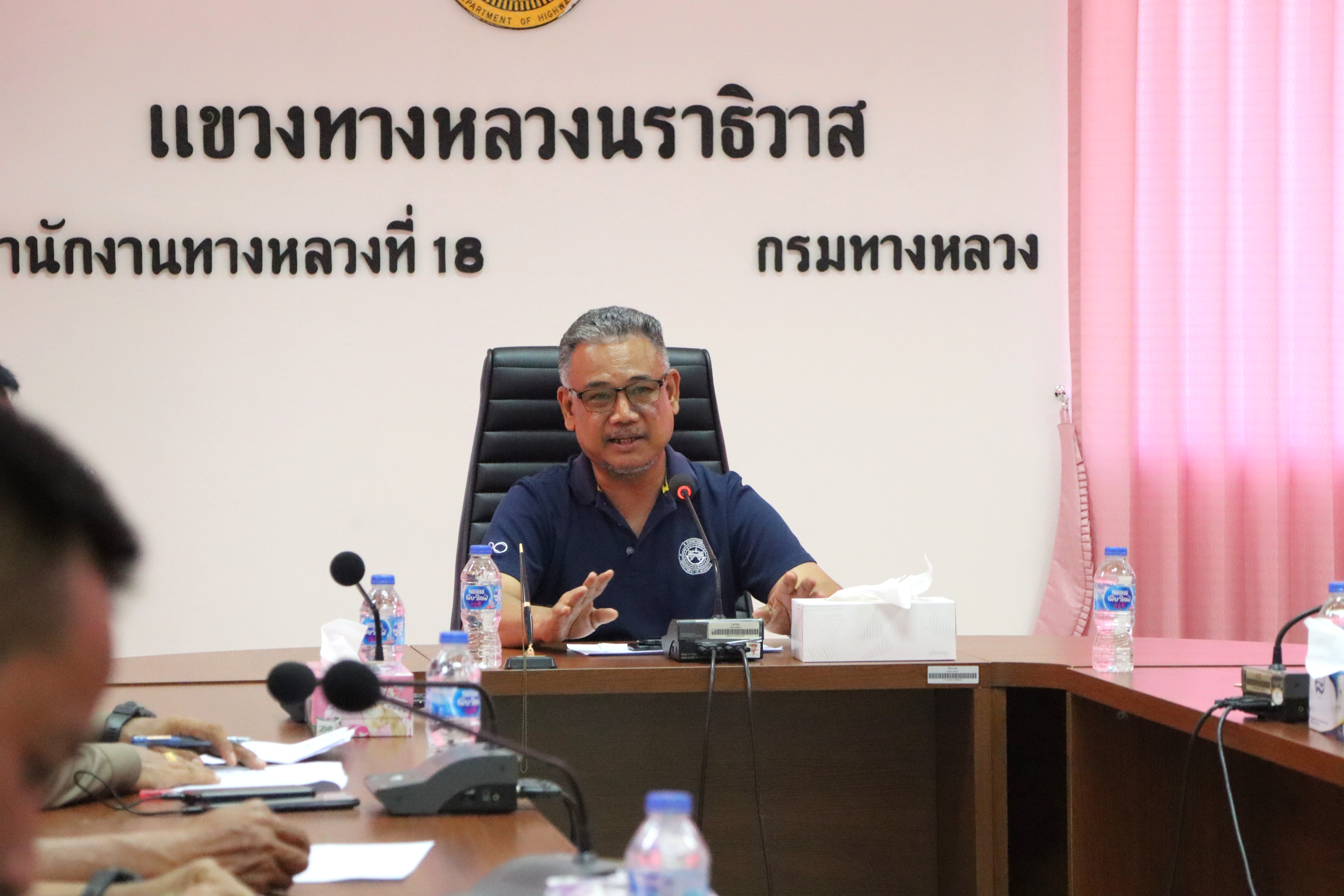นายปฏิเวชวุฒิศักย์ สุขขี ผู้อำนวยการแขวงทางหลวงนราธิวาส พร้อมด้วยนายจำลอง จันสุข รองผู้อำนวยการแขวงทางหลวงนราธิวาส (ฝ่ายปฏิบัติการ) นายธวัชชัย เผนานนท์ รองผู้อำนวยการแขวงทางหลวงนราธิวาส (ฝ่ายวิศวกรรม) นางอรัญญา เพ็ชรพูล รองผู้อำนวยการแขวงทางหลวงนราธิวาส (ฝ่ายบริหาร) นายวีระชัย ปัญญาเถิง ผู้อำนวยการหมวดทางหลวงอาวุโสนราธิวาส และนายศราวุธ ชุมทอง หัวหน้างานอำนวยความปลอดภัย ร่วมประชุมหารือเพื่อพิจารณาแนวทางแก้ไขปัญหาอุบัติเหตุทางถนนบริเวณหน้าแขวงทางหลวงนราธิวาส ร่วมกับอำเภอเมืองนราธิวาส เทศบาลเมืองนราธิวาส โครงการชลประทานนราธิวาส และสถานีตำรวจภูธรเมืองนราธิวาส เข้าร่วมประชุมเพื่อหาแนวทางการแก้ไขปัญหาดังกล่าว ณ ห้องประชุมชั้น 3 แขวงทางหลวงนราธิวาส