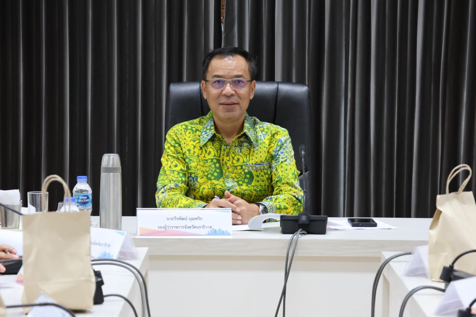 นายปฏิเวชวุฒิศักย์ สุขขี ผู้อำนวยการแขวงทางหลวงนราธิวาส มอบหมายให้นายวีระชัย ปัญญาเถิง ผู้อำนวยการหมวดทางหลวงอาวุโสนราธิวาส เข้าร่วมประชุมติดตามความคืบหน้าการจัดทำซุ้มประตูเฉลิมพระเกียรติ เนื่องในโอกาสพระราชพิธีมหามงคล เฉลิมพระชนมพรรษา 6 รอบ 28 กรกฎาคม 2567 จังหวัดนราธิวาส ณ ห้องประชุมพระศรีสุทัศน์ ชั้น 4 ศาลากลางจังหวัดนราธิวาส แห่งที่ 2 ต.ลำภู อ.เมืองนราธิวาส โดยมีนายวีรพัฒน์ บุณฑริก รองผู้ว่าราชการจังหวัดนราธิวาส เป็นประธานในการประชุม พร้อมด้วยคณะกรรมการฝ่ายกำกับและติดตามความก้าวหน้าการดำเนินการ และผู้ที่เกี่ยวข้อง เข้าร่วมประชุม