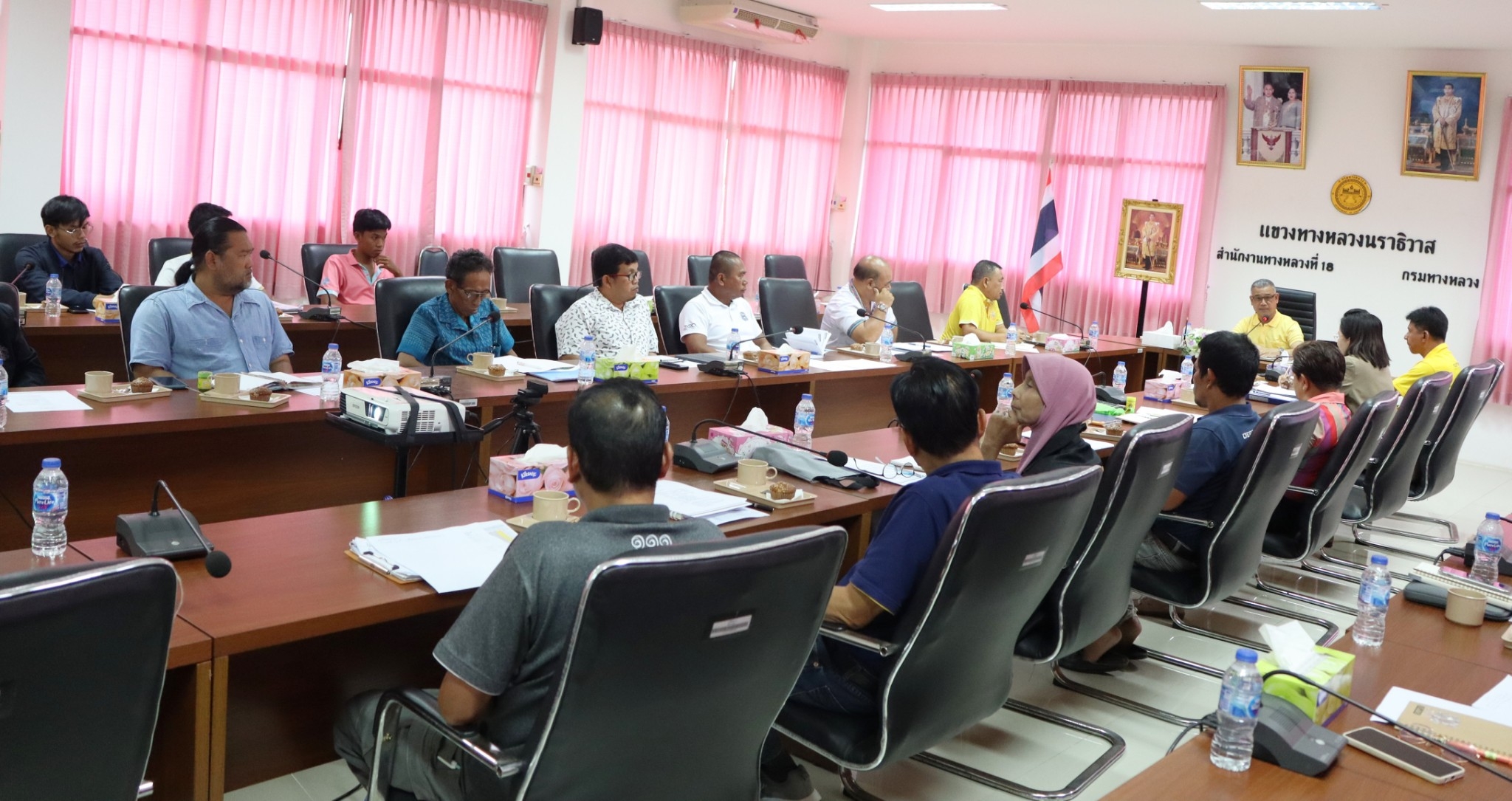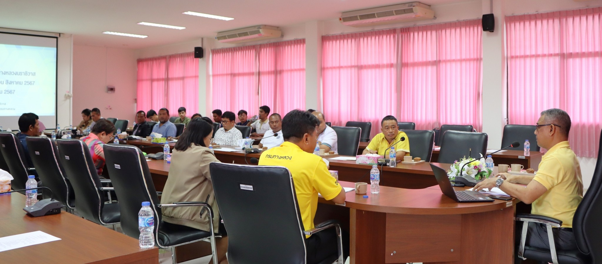 นายปฏิเวชวุฒิศักย์ สุขขี ผู้อำนวยการแขวงทางหลวงนราธิวาส พร้อมด้วยรองผู้อำนวยการแขวงทางหลวงนราธิวาส ฝ่ายปฏิบัติการ ฝ่ายวิศวกรรม ฝ่ายบริหาร ผู้อำนวยการหมวดทางหลวงอาวุโสนราธิวาส หัวหน้าหมวดทางหลวง หัวหน้างาน หัวหน้าหน่วย ข้าราชการและเจ้าหน้าที่ ร่วมประชุมเจ้าหน้าที่แขวงทางหลวงนราธิวาส ครั้งที่ 11/2567 ประจำเดือนสิงหาคม 2567 โดยติดตามผลการดำเนินงาน ปีงบประมาณ 2567 รายงานความก้าวหน้าการจัดซื้อจัดจ้าง พ.ร.บ. 2567 ติดตามความก้าวหน้าการบริหารงานสัญญา และรายงานแผน - ผล การปฏิบัติงาน และปัญหาอุปสรรค ณ ห้องประชุม ชั้น 3 แขวงทางหลวงนราธิวาส