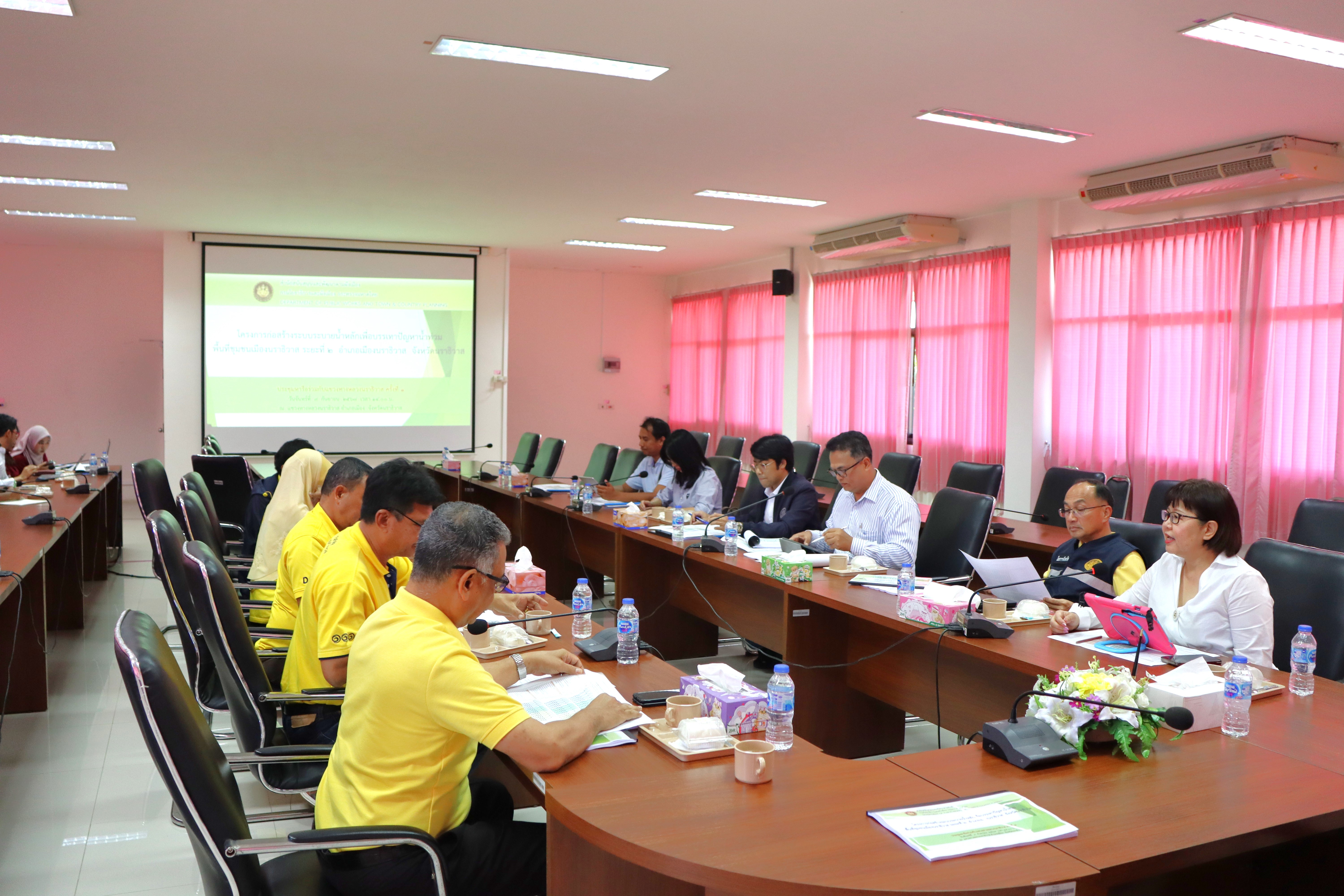 นายปฏิเวชวุฒิศักย์ สุขขี ผู้อำนวยการแขวงทางหลวงนราธิวาส พร้อมด้วยนายธวัชชัย เผนานนท์ รองผู้อำนวยการแขวงทางหลวงนราธิวาส (ฝ่ายวิศวกรรม)นายวีระชัย ปัญญาเถิง ผู้อำนวยการหมวดทางหลวงอาวุโสนราธิวาส และนางสาวอัธธิดา ติ้งหวัง หัวหน้างานสารสนเทศ ร่วมประชุมหารือครั้งที่ 1 โครงการก่อสร้างระบบระบายน้ำหลักเพื่อบรรเทาปัญหาน้ำท่วม พื้นที่ชุมชนเมืองนราธิวาส ระยะที่ 2 อำเภอเมืองนราธิวาส จังหวัดนราธิวาส โดยมีนางสาวสุภัทรา ชัยเทวารัณย์ ผู้ตรวจราชการกรมโยธาธิการและผังเมือง เขตตรวจราชการที่ 7 กลุ่มจังหวัดภาคใต้ชายแดน พร้อมด้วยนายว่าศักดิ์ เจิมจิระ โยธาธิการและผังเมืองจังหวัดนราธิวาส และเจ้าหน้าที่บริษัท เมกก้าเทค คอนซัลแตนท์ จำกัด บริษัทที่ปรึกษา ร่วมประชุมและหารือถึงองค์ประกอบ และรายละเอียดของโครงการดังกล่าว ณ ห้องประชุมชั้น 3 แขวงทางหลวงนราธิวาส