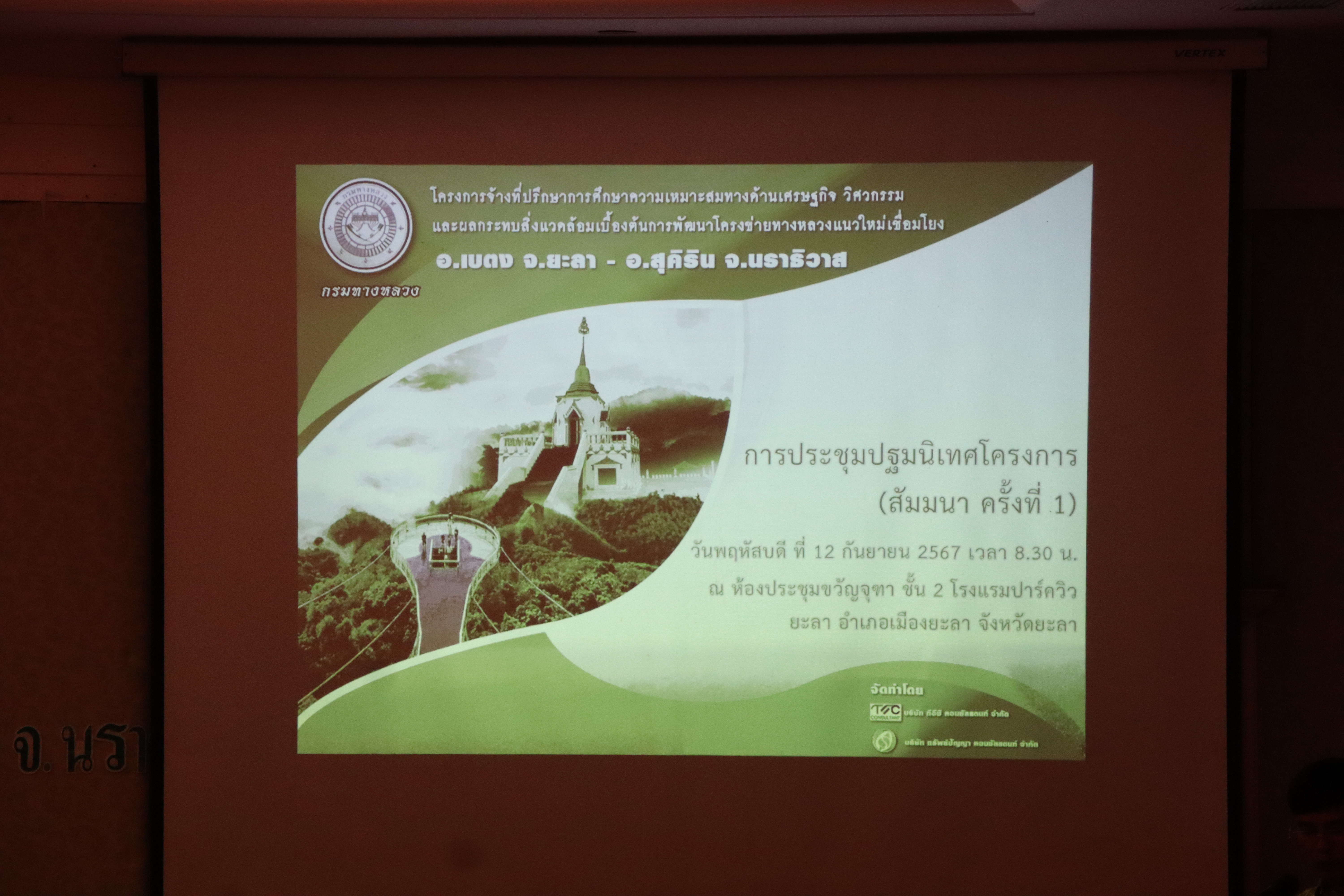 ร่วมประชุมปฐมนิเทศโครงการ (สัมมนาครั้งที่ 1) การพัฒนาโครงข่ายทางหลวงแนวใหม่เชื่อมโยง อ.เบตง จ.ยะลา - อ.สุคิริน จ.นราธิวาส