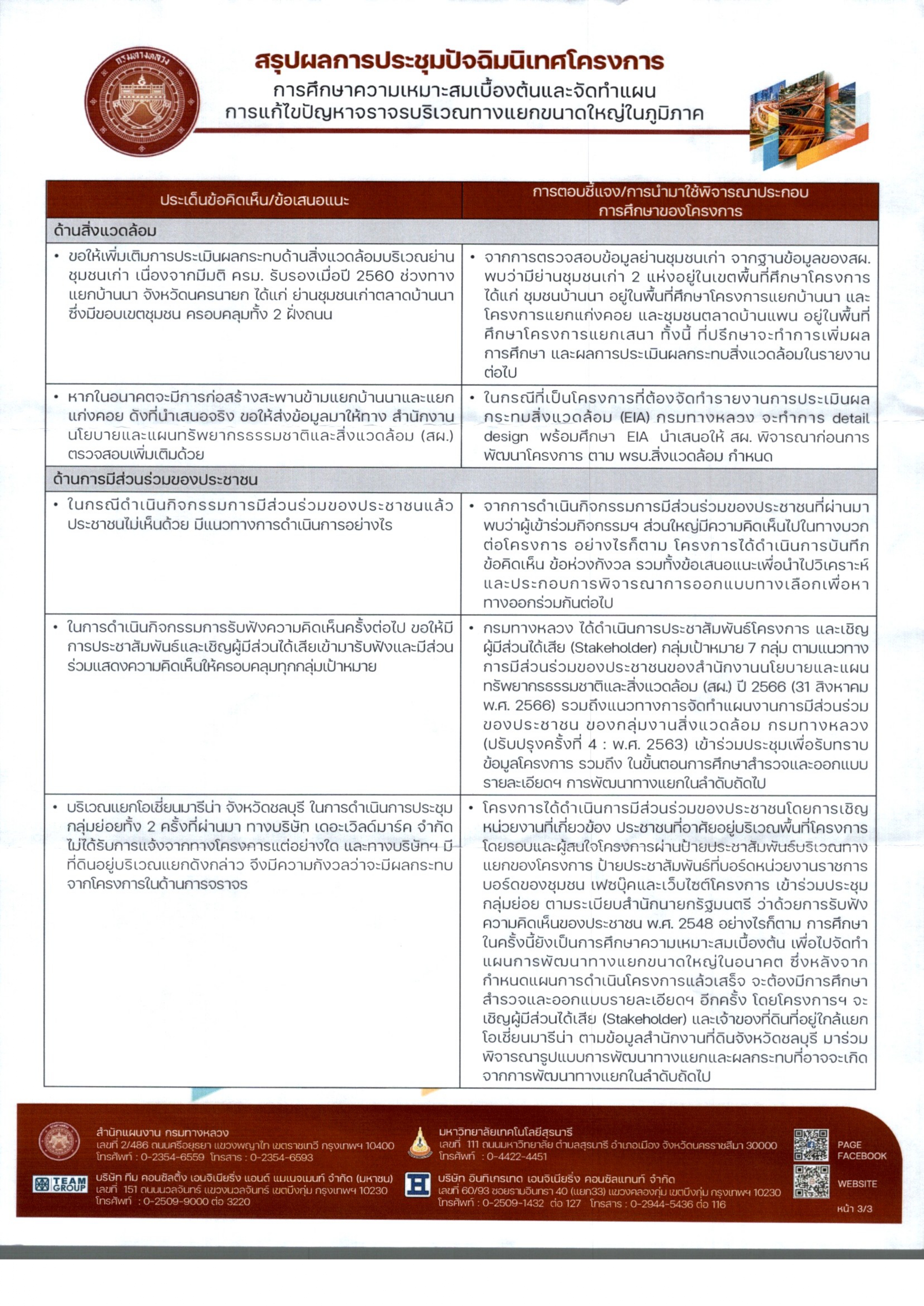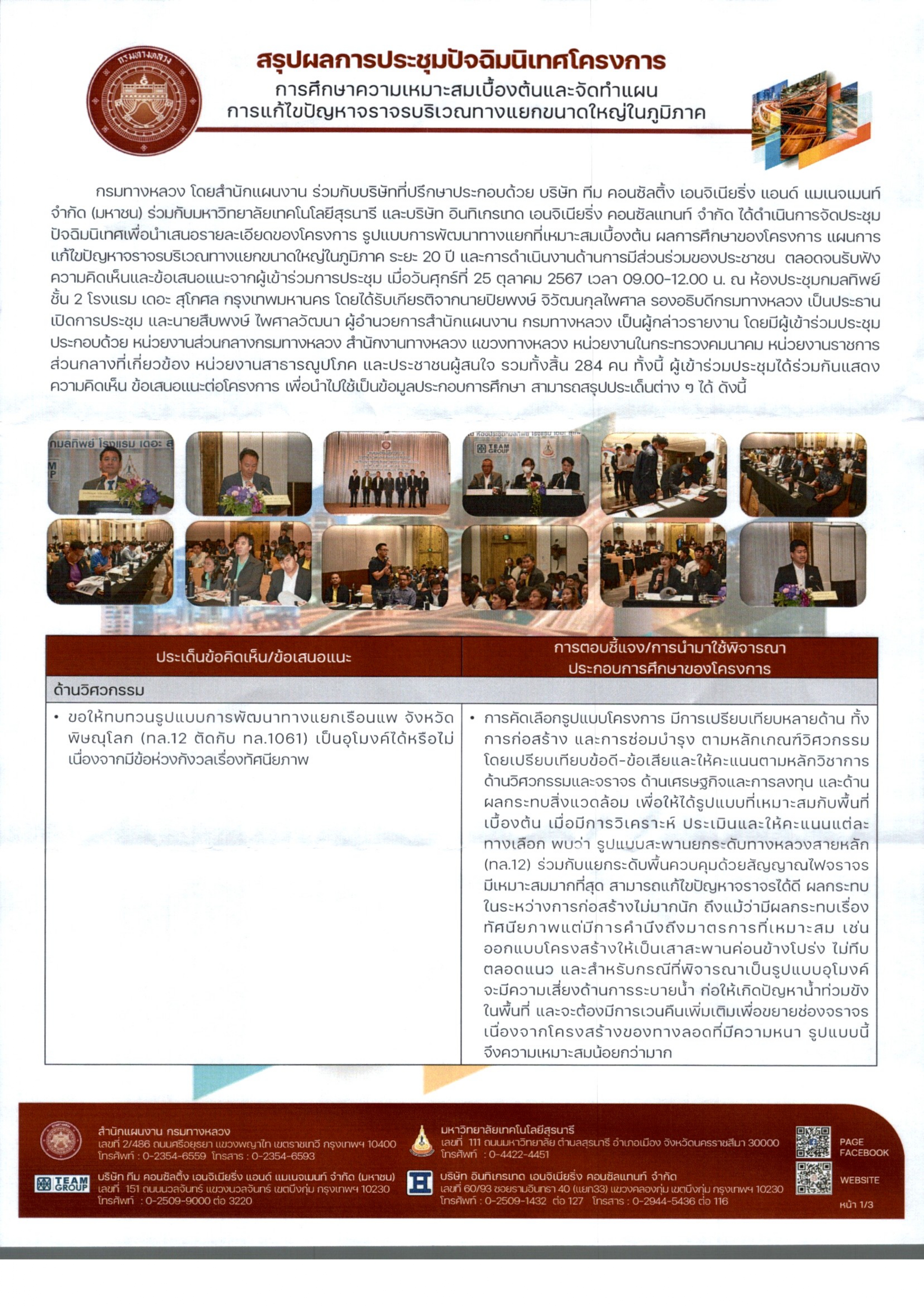 ประกาศประชาสัมพันธ์สรุปผลการประชุมปัจฉิมนิเทศน์โครงการ การศึกษาความเหมาะสมเบื้องต้นและจัดทำแผนการแก้ไขปัญหาการจราจรบริเวณทางแยกขนาดใหญ่ในภูมิภาค