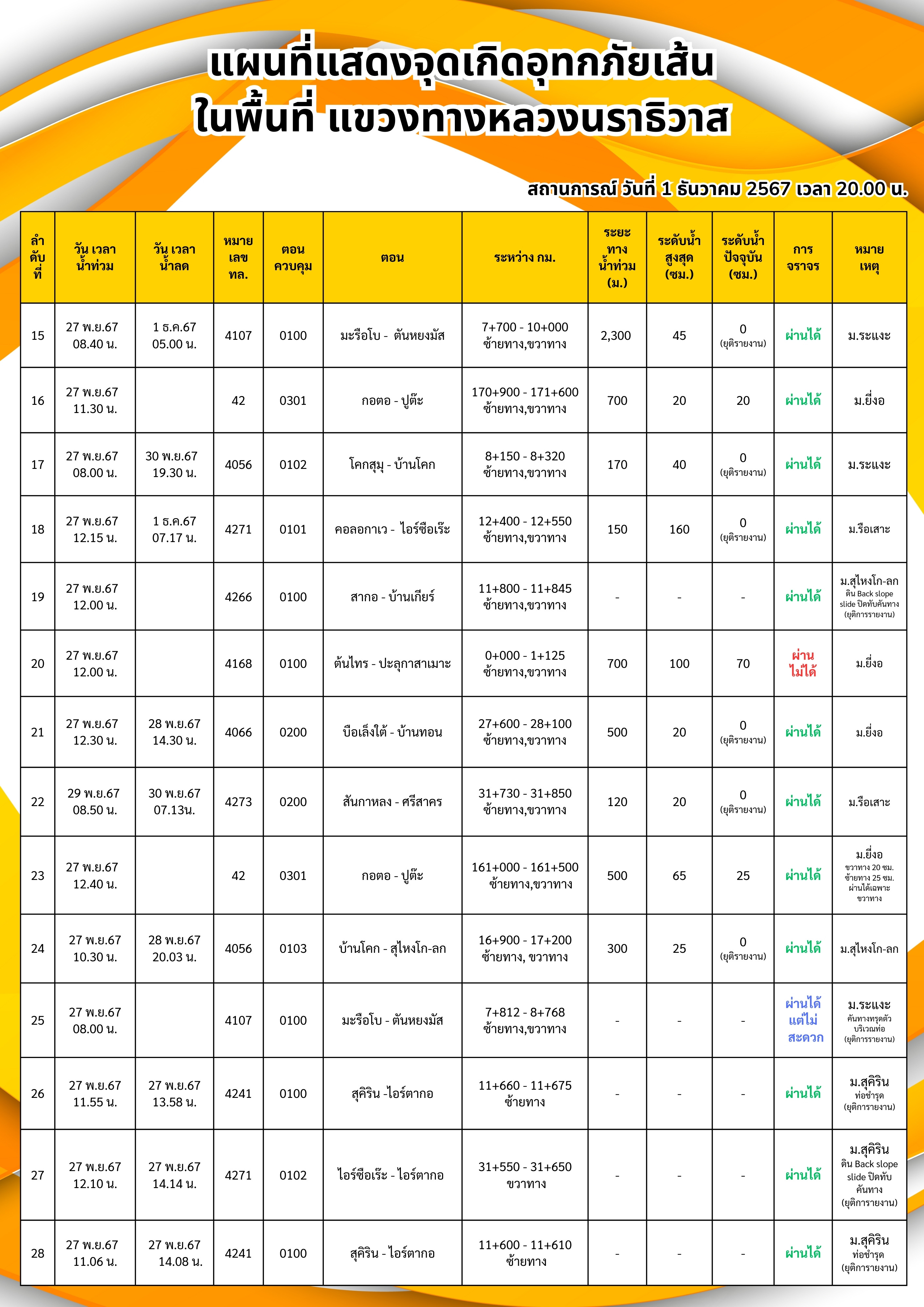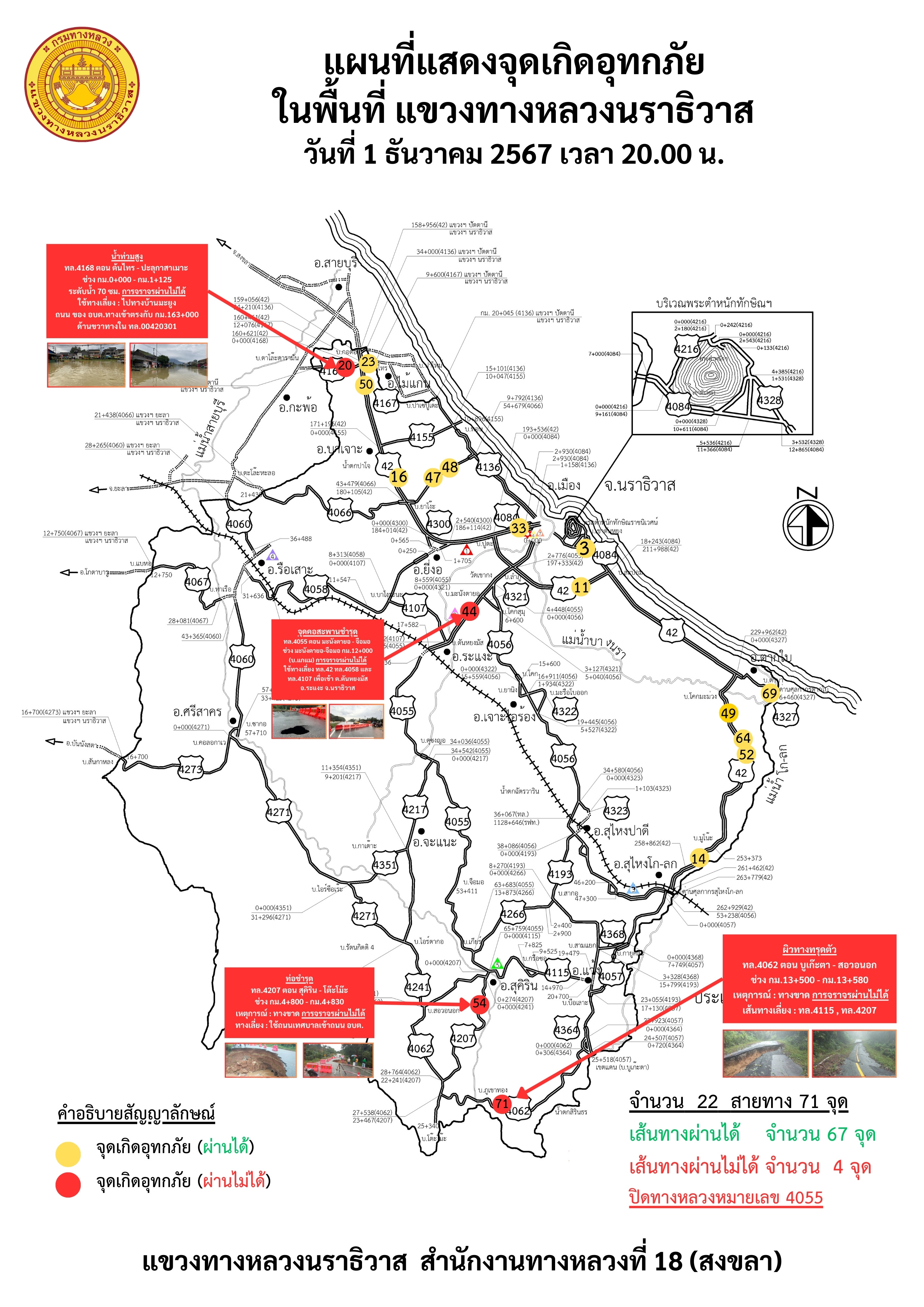 แขวงทางหลวงนราธิวาส ขอรายงานสถานการณ์อุทกภัยในพื้นที่จังหวัดนราธิวาส