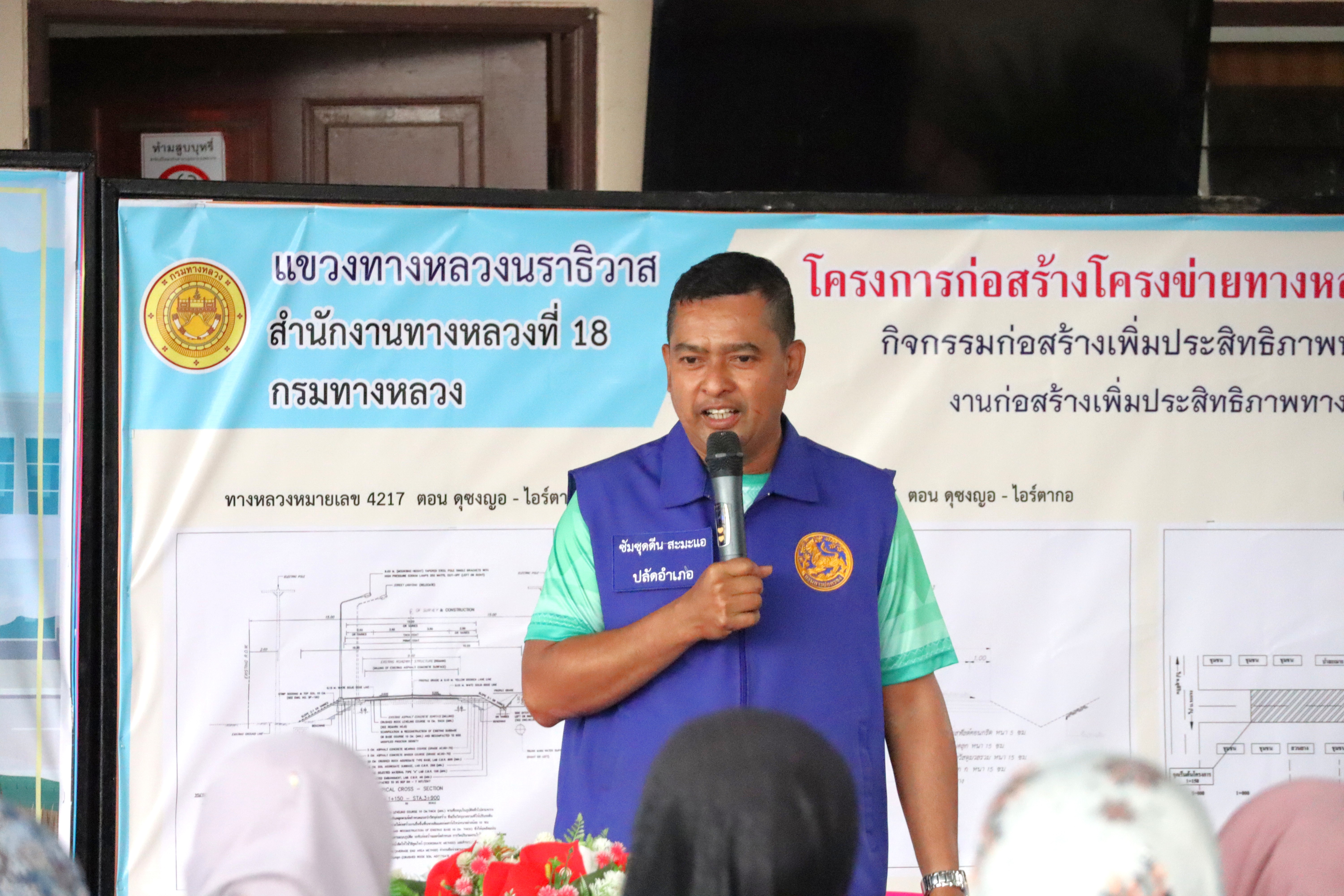 แขวงฯนราธิวาส ดำเนินงานการประชุมเพื่อการมีส่วนร่วมของประชาชน ทางหลวงหมายเลข 4127 ตอน ดุซงญอ - ไอร์ตากอ