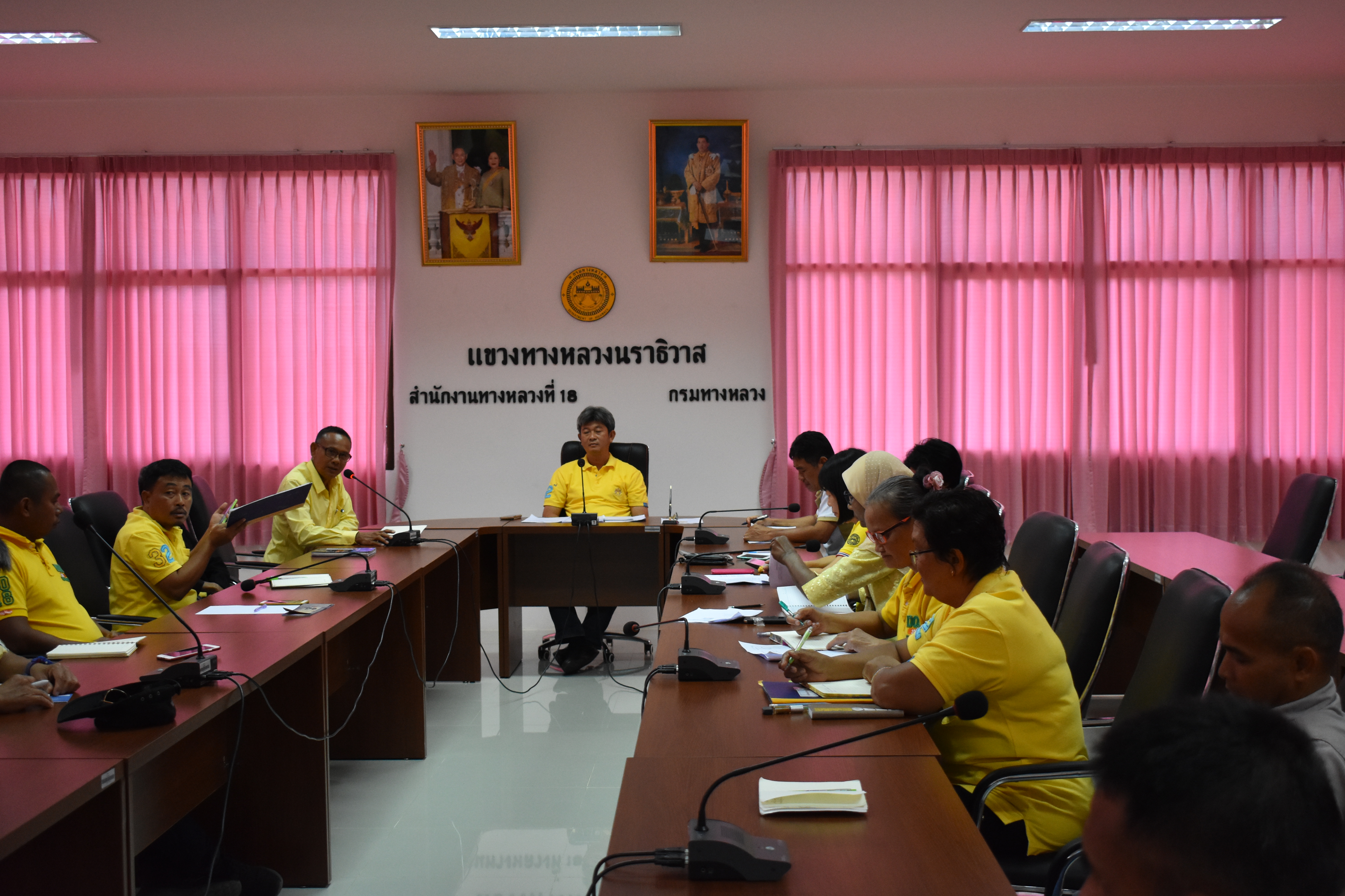 หัวหน้าหมวดทางหลวง และหัวหน้างาน ร่วมประชุมประจำเดือนเมษายน ของแขวงทางหลวงนราธิวาส โดย นายคมกริช ตันตรัตนพงษ์ ผู้อำนวยการแขวงทางหลวงนราธิวาส เป็นประธานในการประชุม
