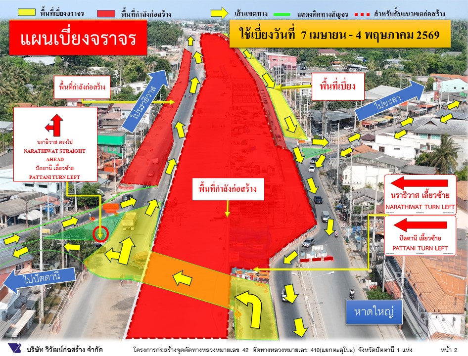 #ประชาสัมพันธ์ทางเบี่ยงการจราจร (ชั่วคราว) โครงการก่อสร้างสะพานจุดตัดทางหลวงหมายเลข 42 ตัดทางหลวงหมายเลข 410 (แยกตะลุโบะ) จ.ปัตตานี ระหว่าง วันที่ 7 เมษายน 2569 - 4 พฤษภาคม 2569