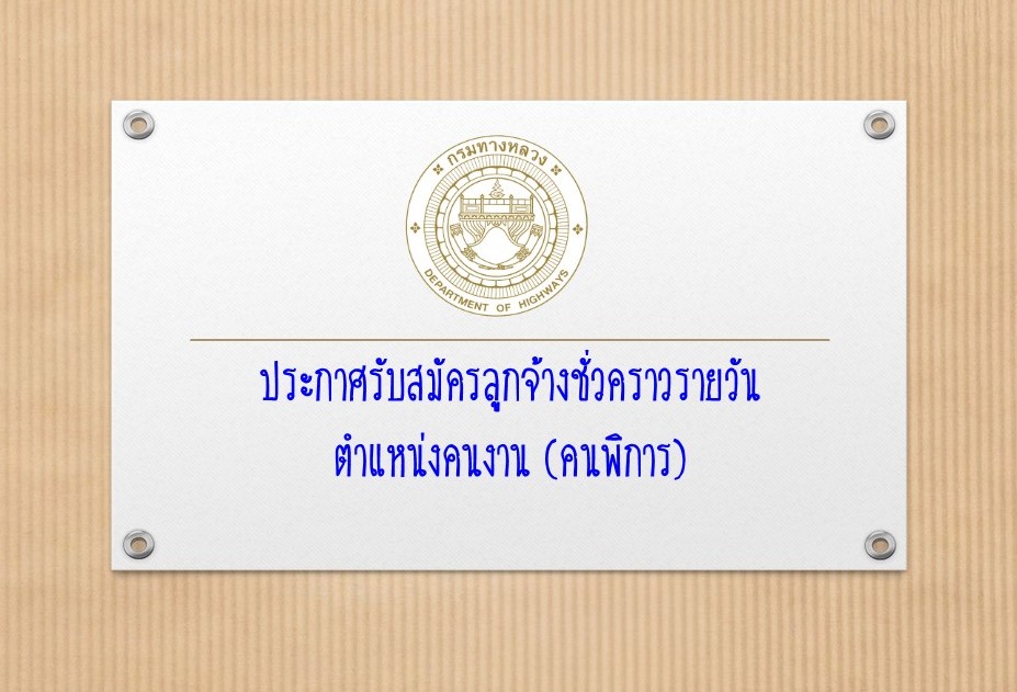 ประกาศแขวงทางหลวงปัตตานี เรื่องรับสมัครบุคคลเพื่อคัดเลือกเป็นลูกจ้างชั่วคราวรายวัน (คนพิการ)