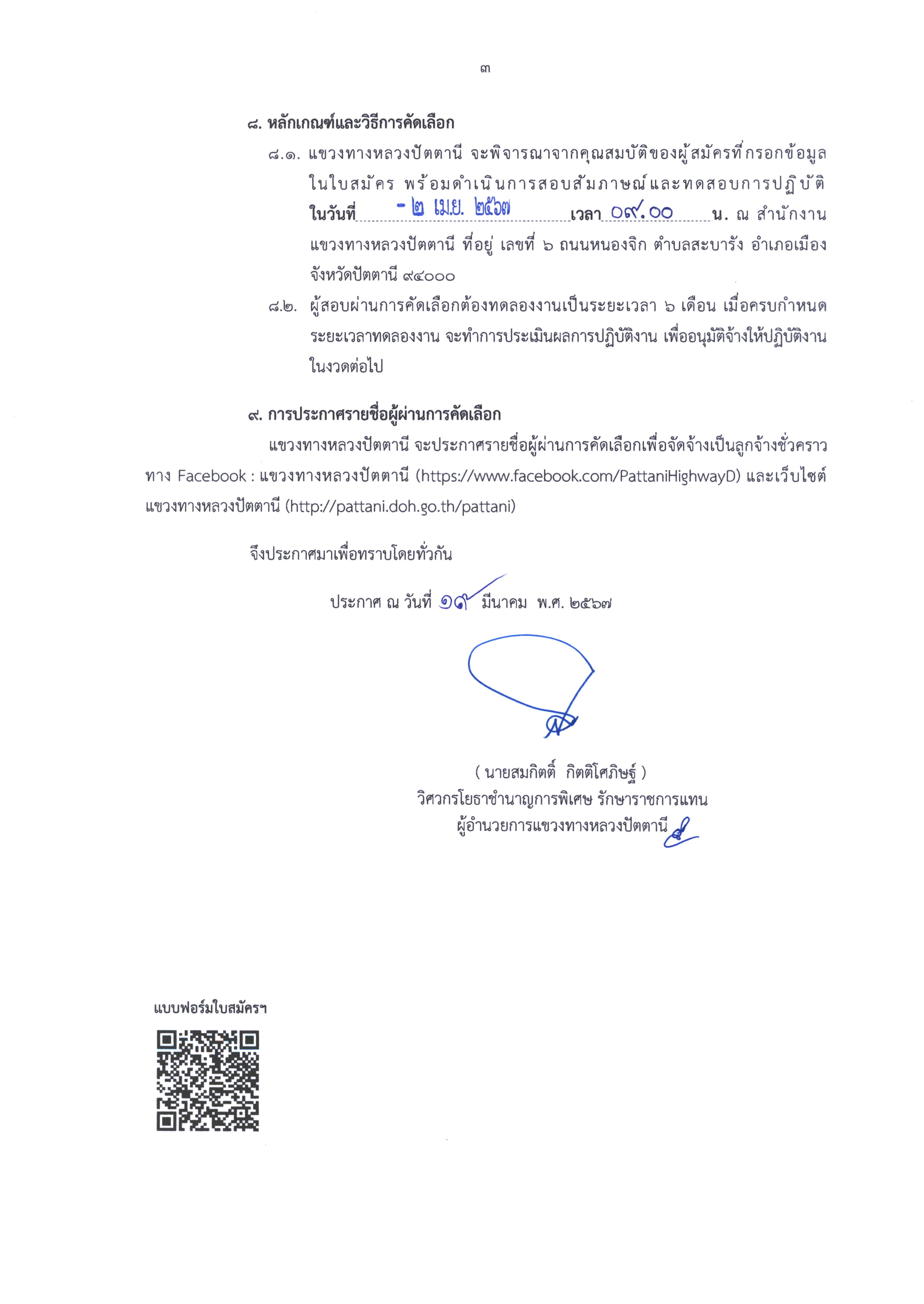 แขวงทางหลวงปัตตานี เปิดรับสมัครบุคคล ตำแหน่งคนงาน ลูกจ้างชั่วคราว (รายวัน) ปฏิบัติงานประจำ งานอำนวยความปลอดภัย จำนวน 4 อัตรา