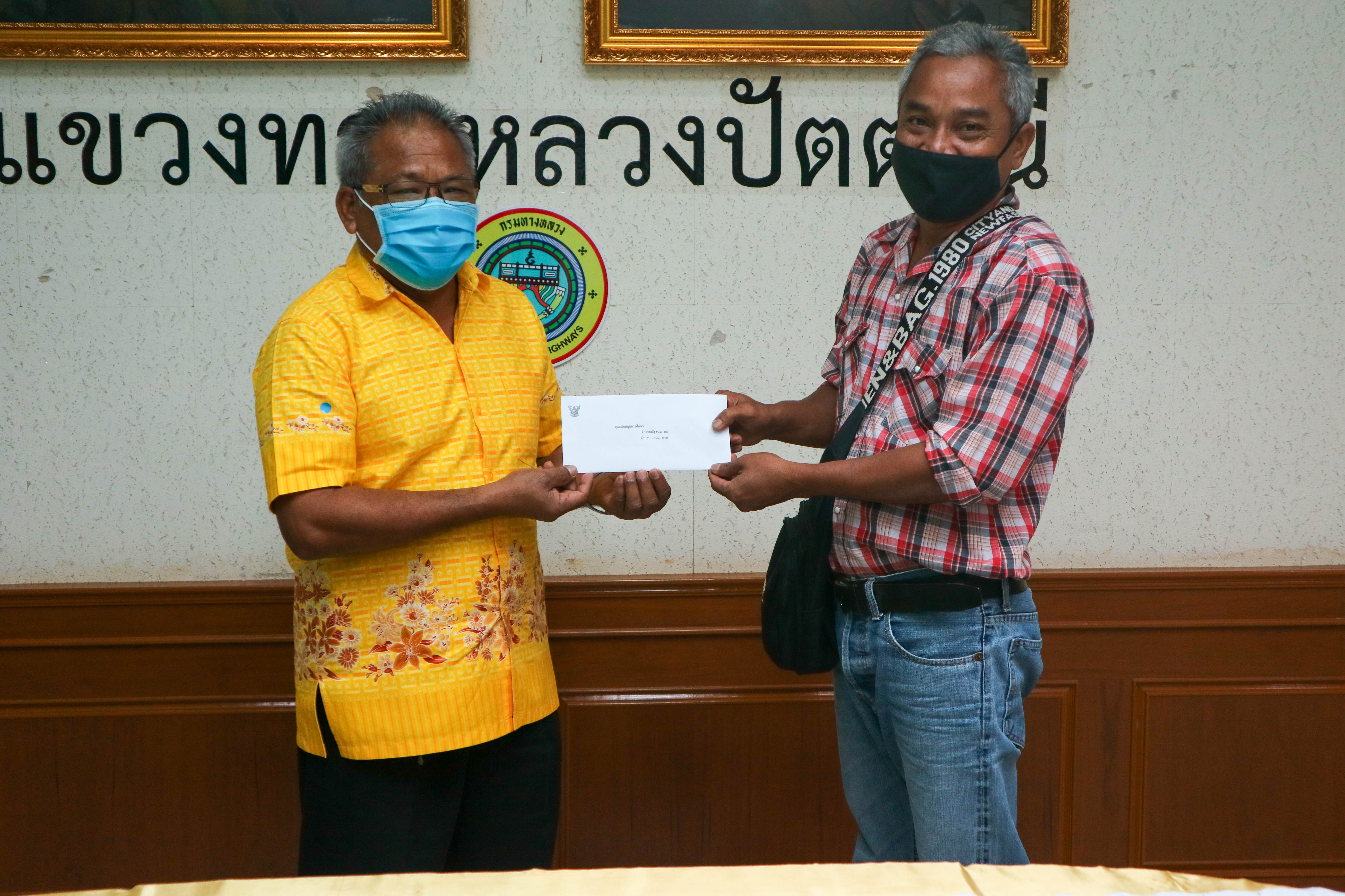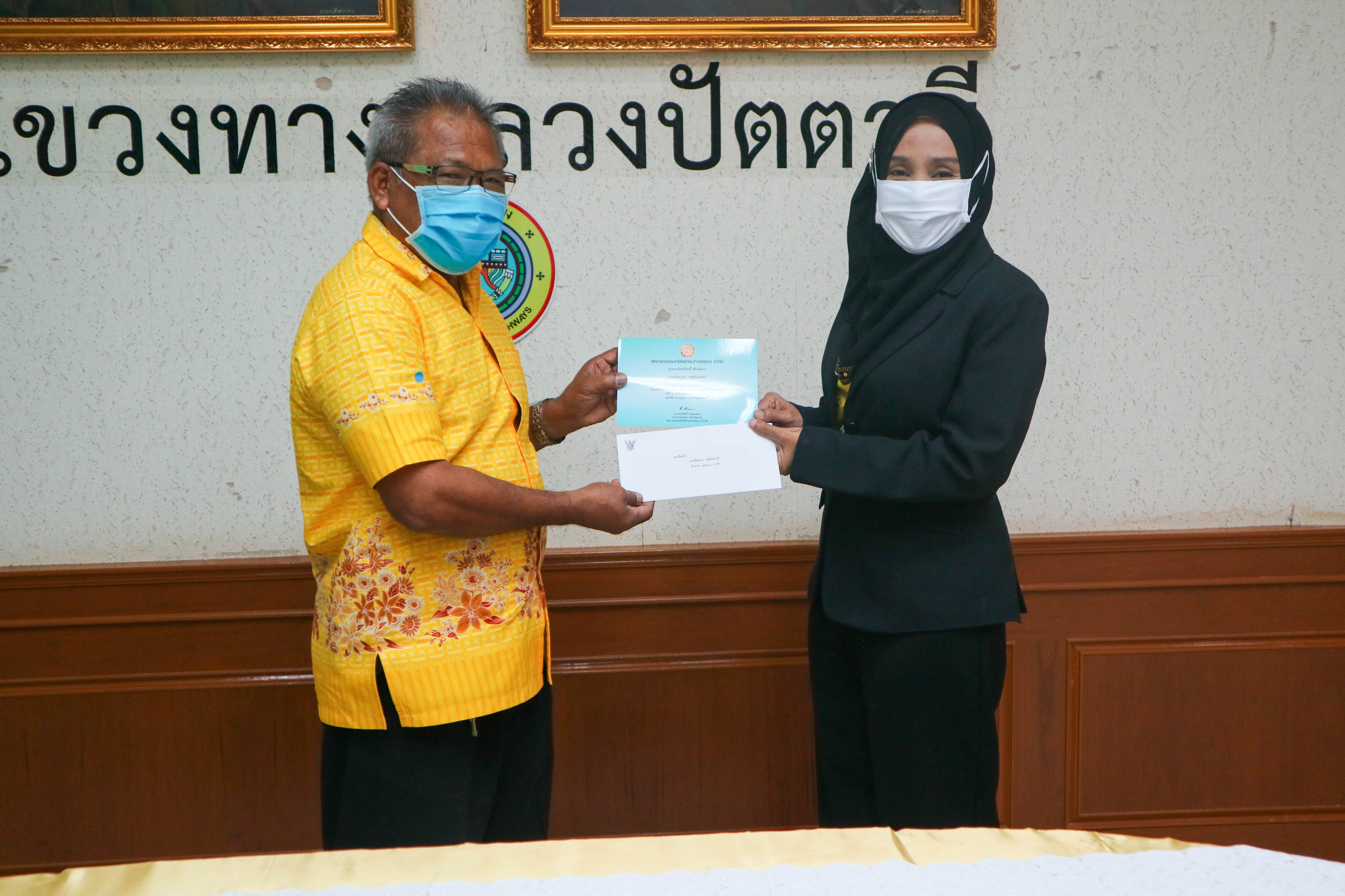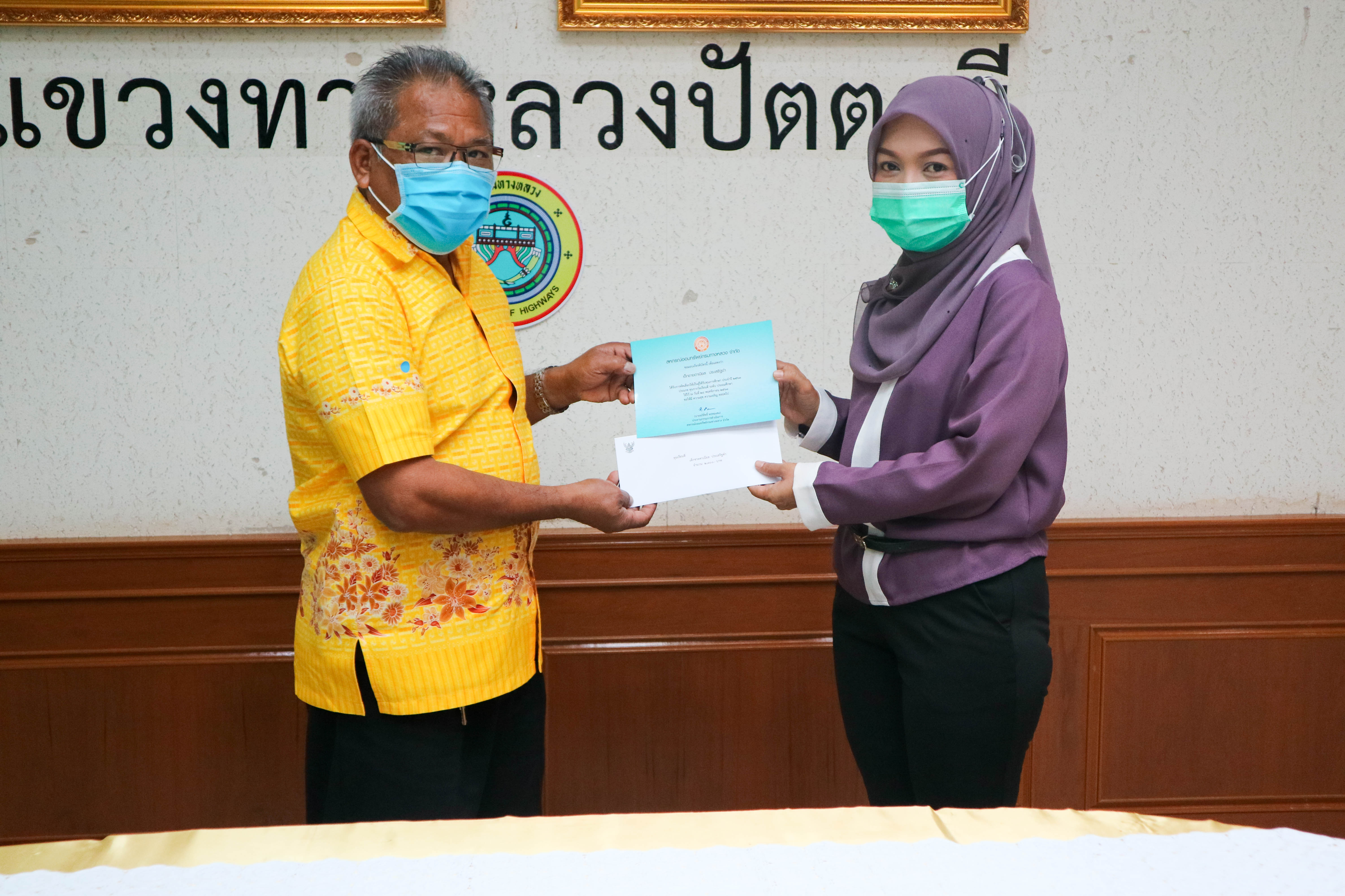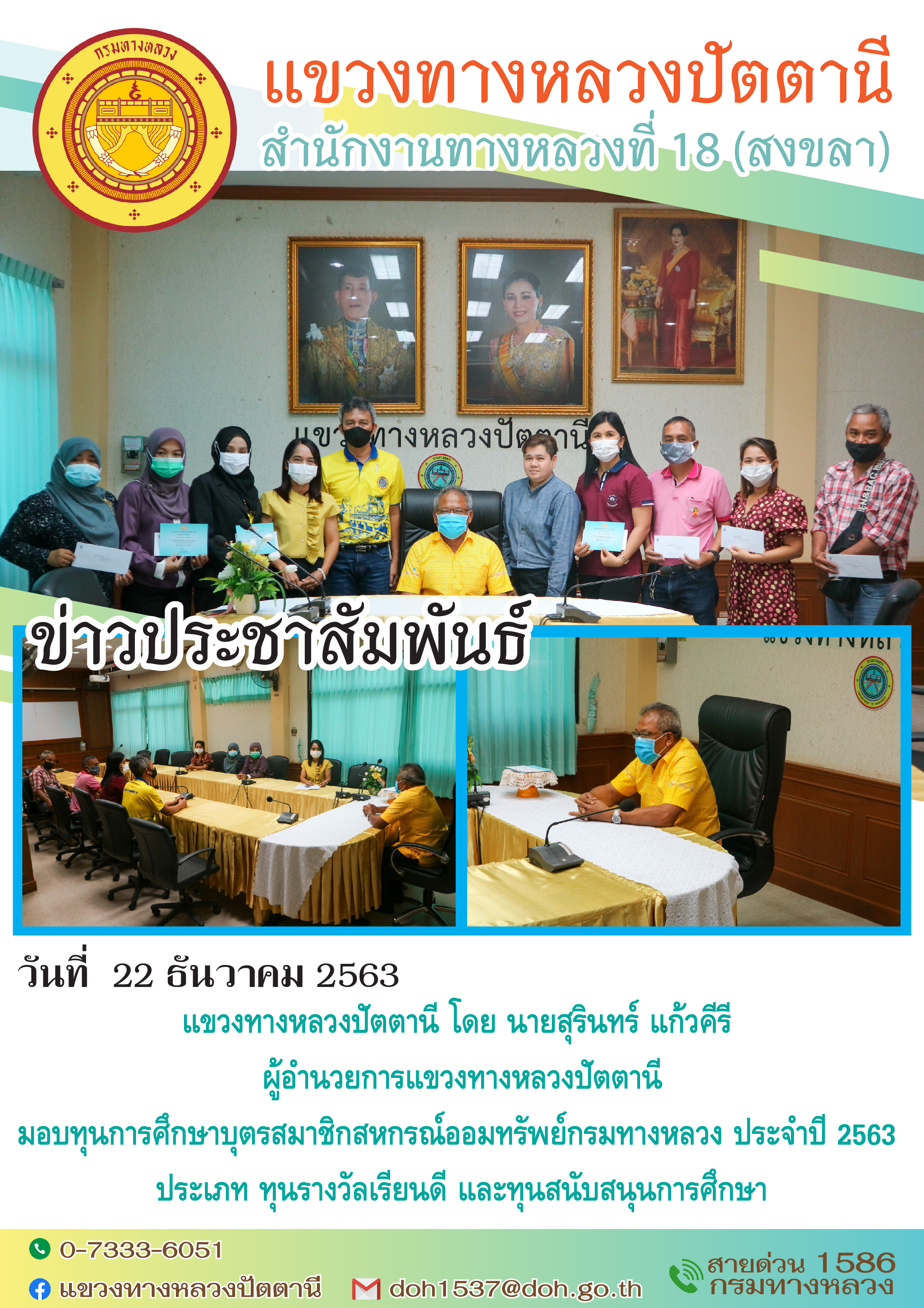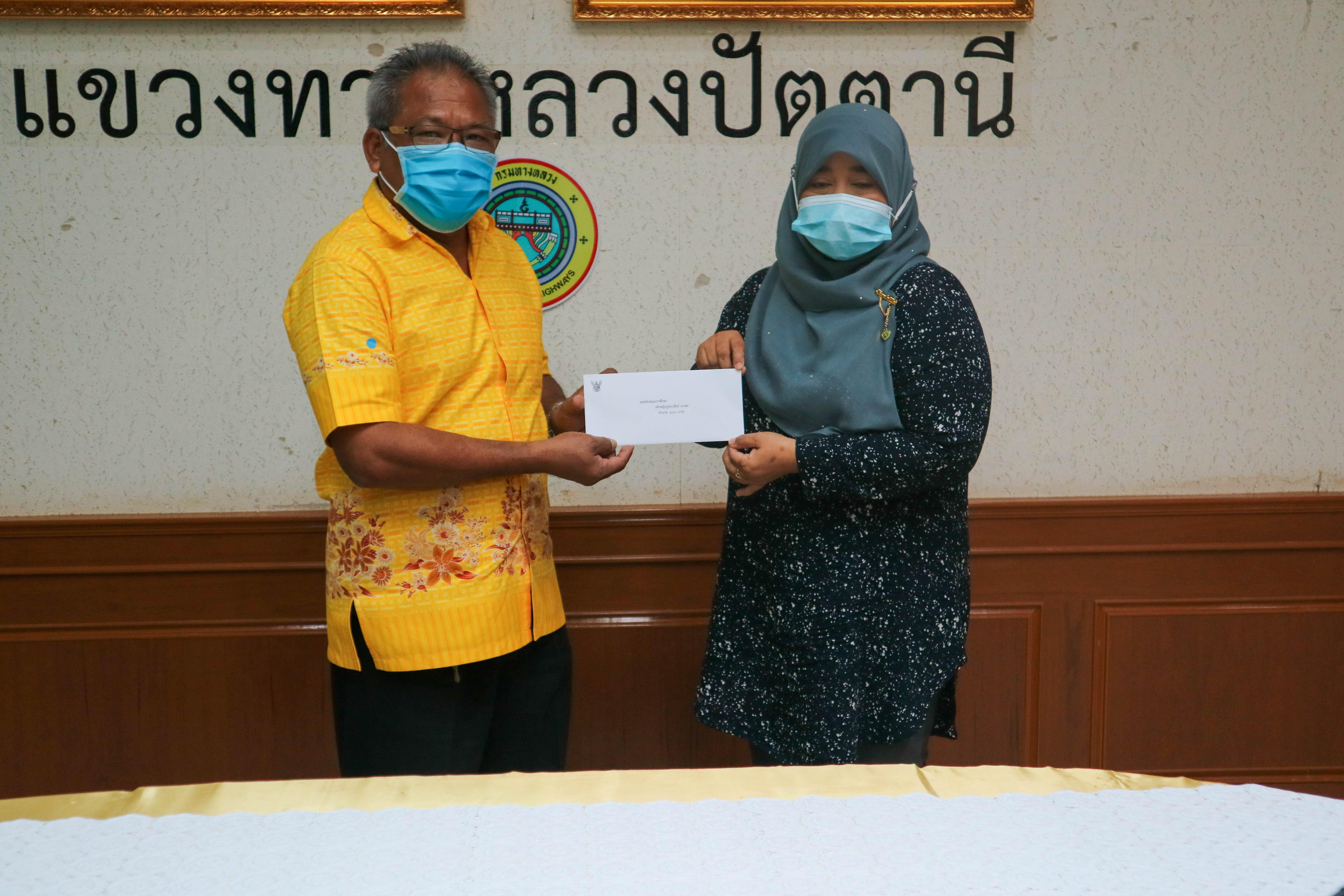 วันที่ 6 มกราคม 2563 นายสุรินทร์ แก้วคีรี ผู้อำนวยการแขวงทางหลวงปัตตานี มอบเงินสวัสดิการทุนการศึกษาบุตรสมาชิกสหกรณ์ออมทรัพย์กรมทางหลวงประจำปี 2563