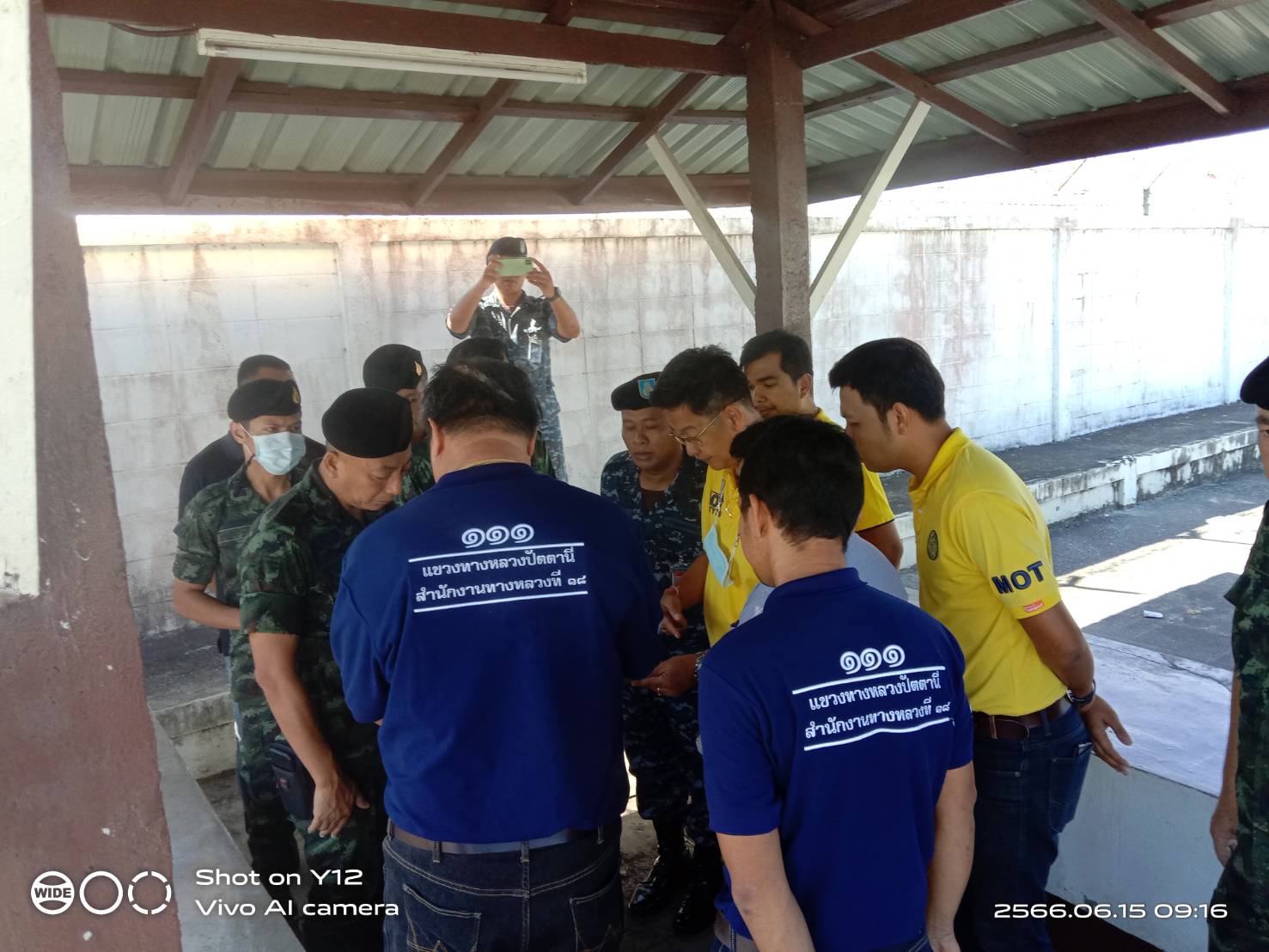 เมื่อวันพฤหัสบดีที่ 15 มิถุนายน 2566 เวลา 09.00 น. นายสมกิตติ์ กิตติโศภิษฐ์ ผู้อำนวยการแขวงทางหลวงปัตตานี พร้อมด้วย นายกัมปนาท พรหมเทพ วิศวกรโยธาชำนาญการ ส่วนสำรวจและออกแบบ สำนักงานทางหลวงที่ 18 และนายสุวิชัย นวลฉวี รองผู้อำนวยการแขวงทางหลวงปัตตานี ผู้ควบคุมงาน นายมนพัทธิ์ พลอยปัตตา หัวหน้าหมวดทางหลวงโคกโพธิ์ และนายรอซาดี้ ลือแมะ นายช่างโยธาปฏิบัติงาน ผู้ช่วยผู้ควบคุมงาน สัญญาที่ ปน.27/2566 ลงพื้นที่เพื่อร่วมกันปรึกษาหารือข้อปัญหาและร่วมกันกำหนดแนวทางและข้อสรุปในการกำหนดจุดกลับรถ และจุดรอเลี้ยว ที่มีความเหมาะสมสอดคล้องตามหลักวิศวกรรม ร่วมกับผู้แทนฝ่ายทหารจากค่ายอิงคยุทธบริหาร มณฑลทหารบกที่ 46 และค่ายสมเด็จพระสุริโยทัย กองพลทหารราบที่ 15 บนทางหลวงหมายเลข 42 ตอน นาจวก - ดอนยาง ระหว่าง กม.86+738 - กม.88+045