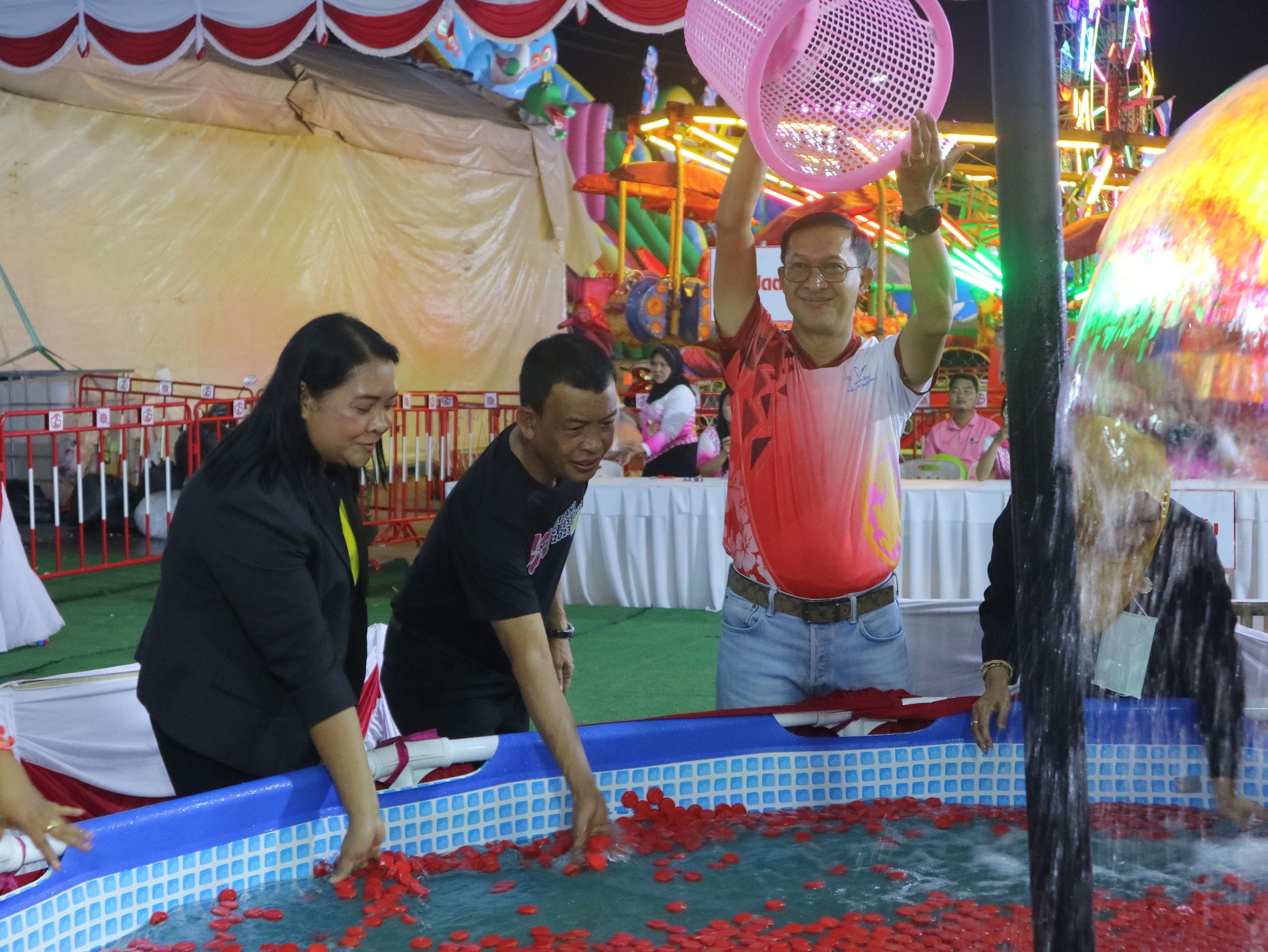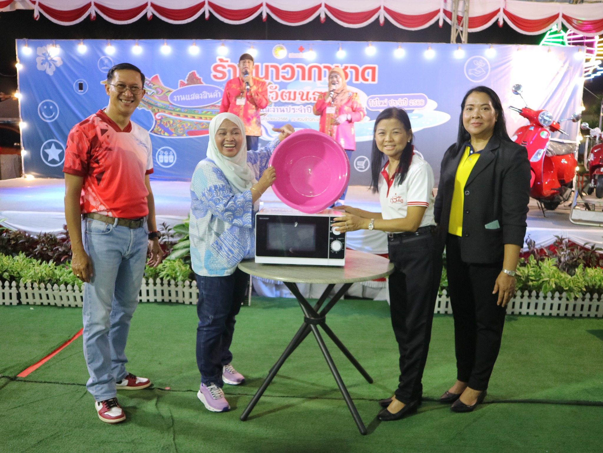 และนางธันย์ภัคนันท์ อุสมันบาฮา ร่วมปฏิบัติงานและมอบรางวัลภายในร้านนาวากาชาด จังหวัดปัตตานี