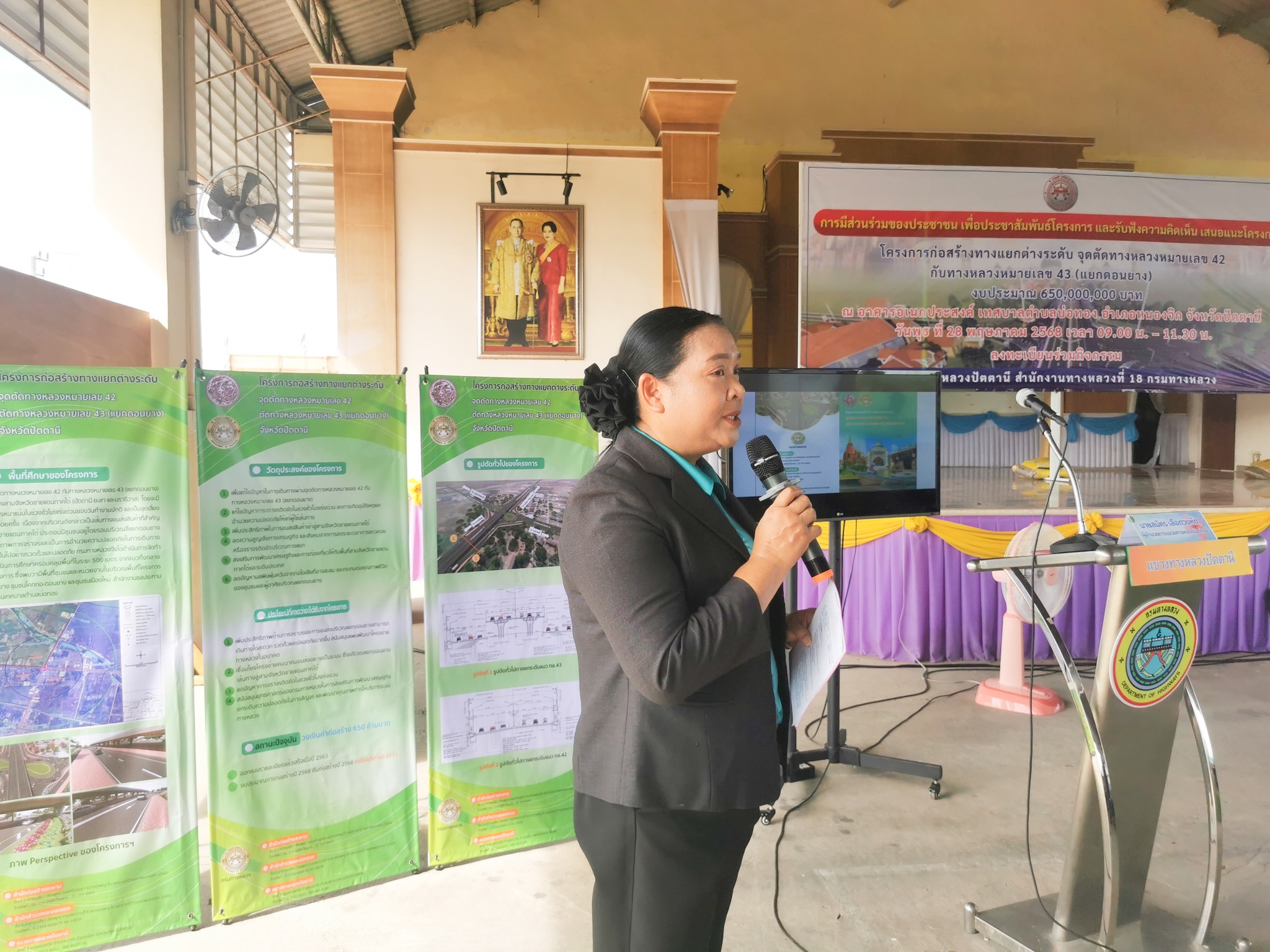 การดำเนินงาน การมีส่วนร่วมของประชาชน ประชาสัมพันธ์โครงการ และรับฟังความคิดเห็นของประชาชน จุดตัด ทล.42 กับทางหลวงหมายเลข 43 (แยกดอนยาง)