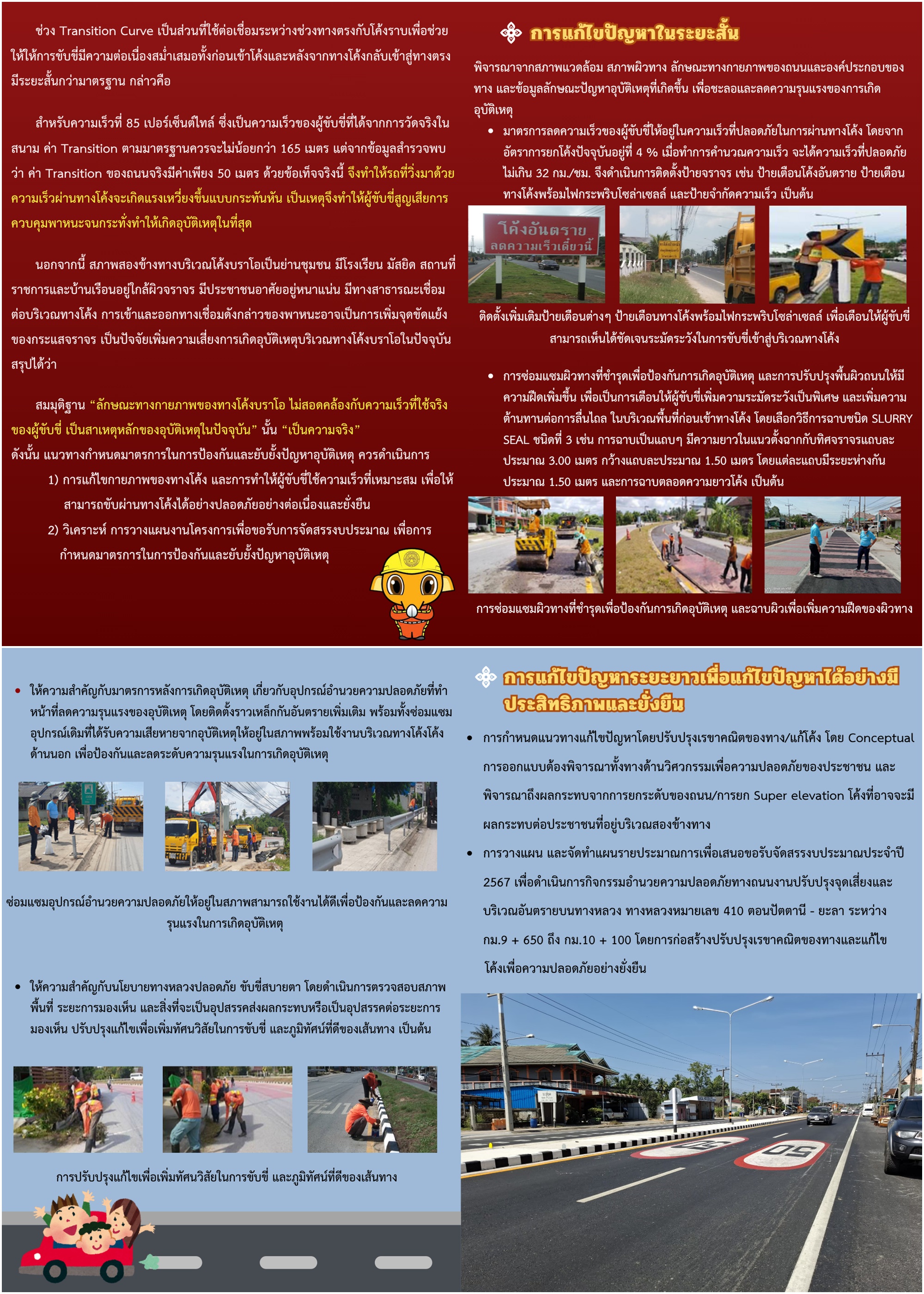 โครงการปรับปรุงจุดเสี่ยง และจุดอันตรายบนทางหลวง เพื่อแก้ไขปัญหาการเกิดอุบัติเหตุบนทางหลวง หมายเลข 410 ตอนควบคุม 0100 ตอน ปัตตานี - ยะลา ระหว่าง กม. 9 + 650 - กม.10 +00 (โค้งบราโอ)