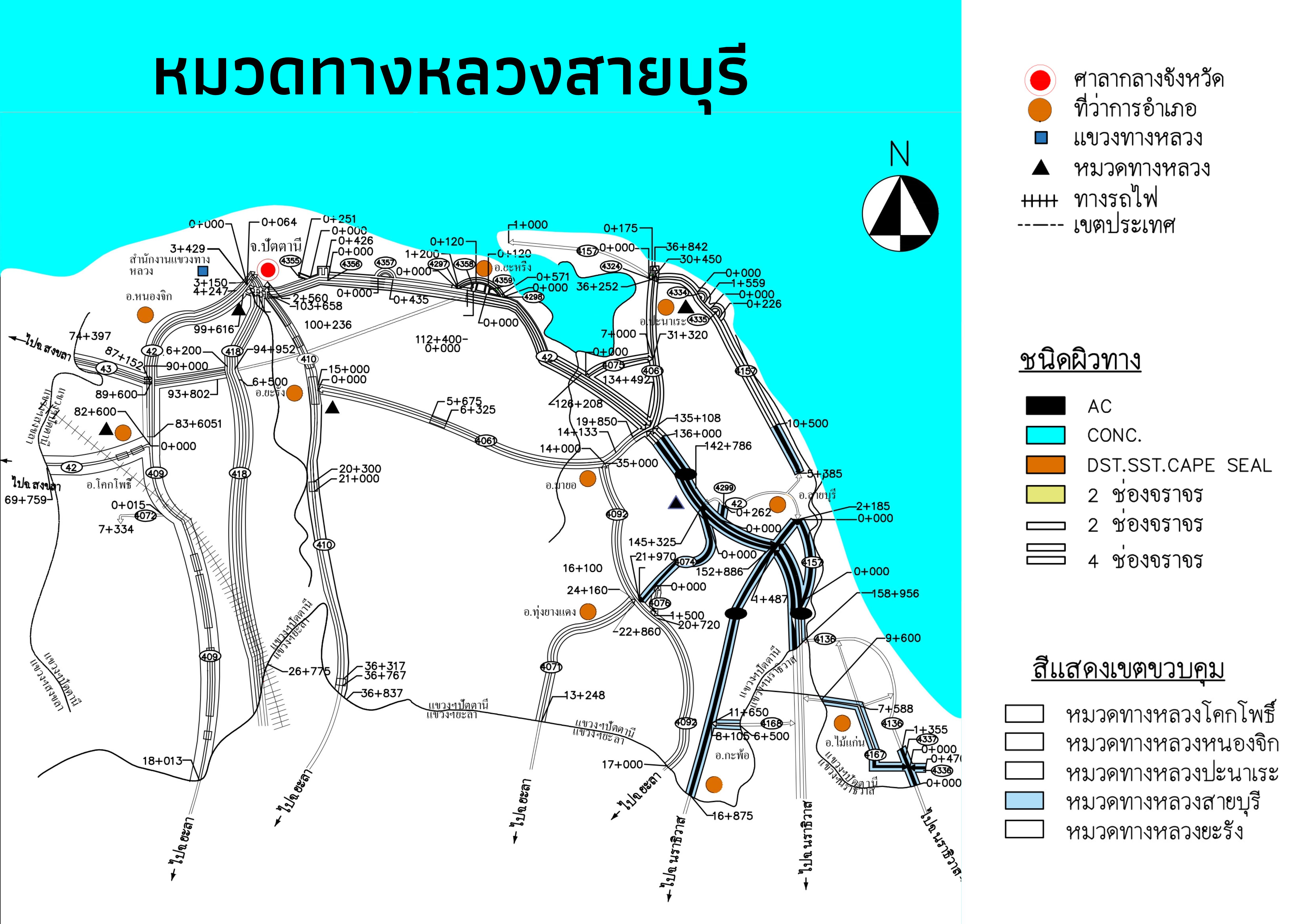 - ทางหลวงหมายเลข 4060 0100 ตอนสายบุรี - กะรุบี (กม.0+000 – กม.16+875) ระยะทาง 16.875 กม.