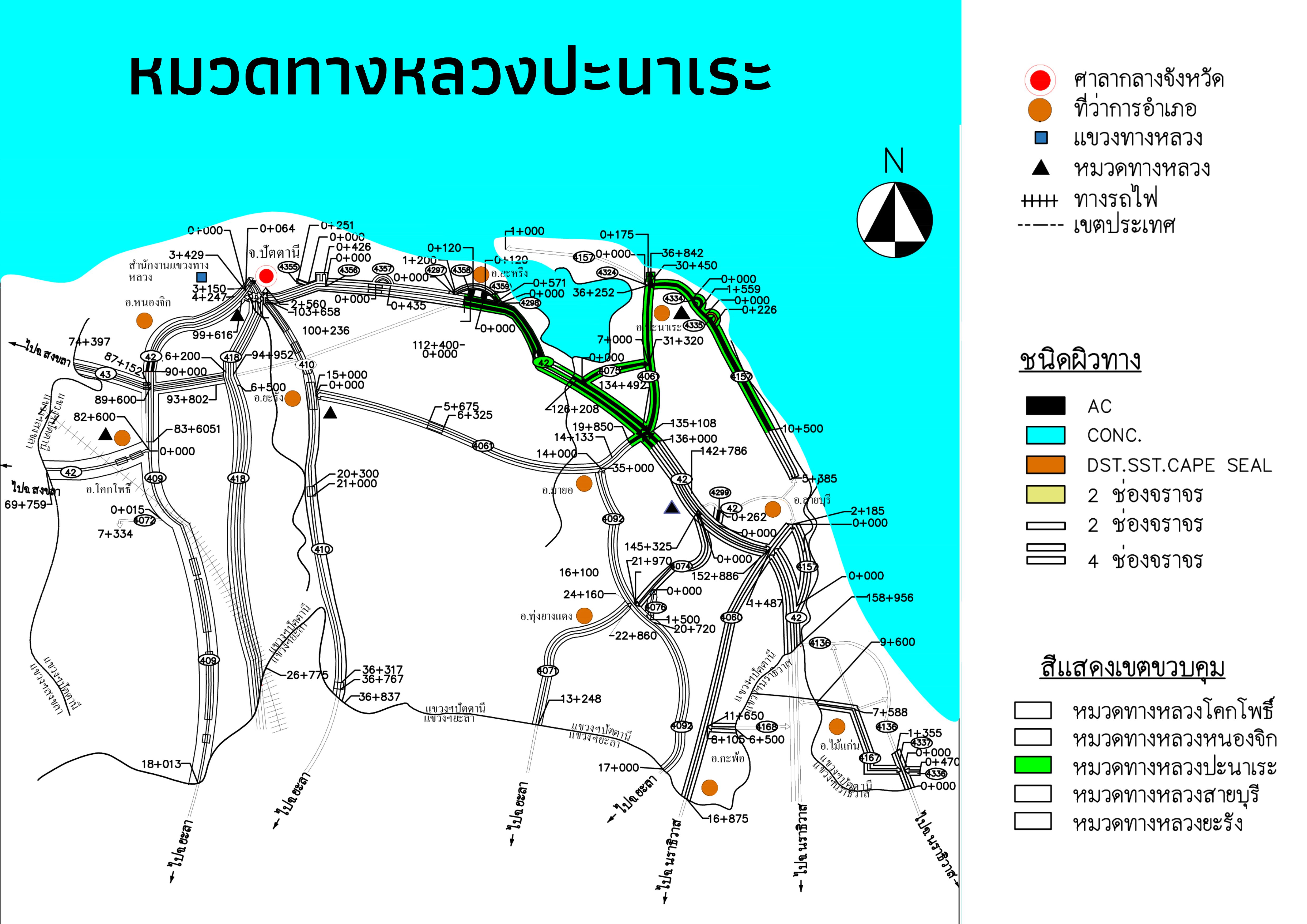 1. ทางหลวงหมายเลข 42 0203 ตอนบ้านดี - ปาลัส (กม.112+400 – กม.136+000) ระยะทาง 23.600 กม.