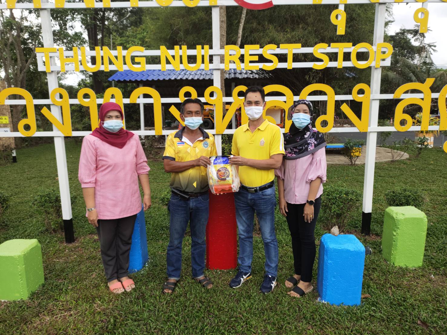 นายประเสริฐ จอมชิตกล่ำ รองผู้อำนวยการ (ฝ่ายปฏิบัติการ) มอบของเพื่อเป็นขวัญและกำลังใจต่อเจ้าหน้าที่ผู้ปฏิบัติงาน ณ จุดบริการทั่วไทย
