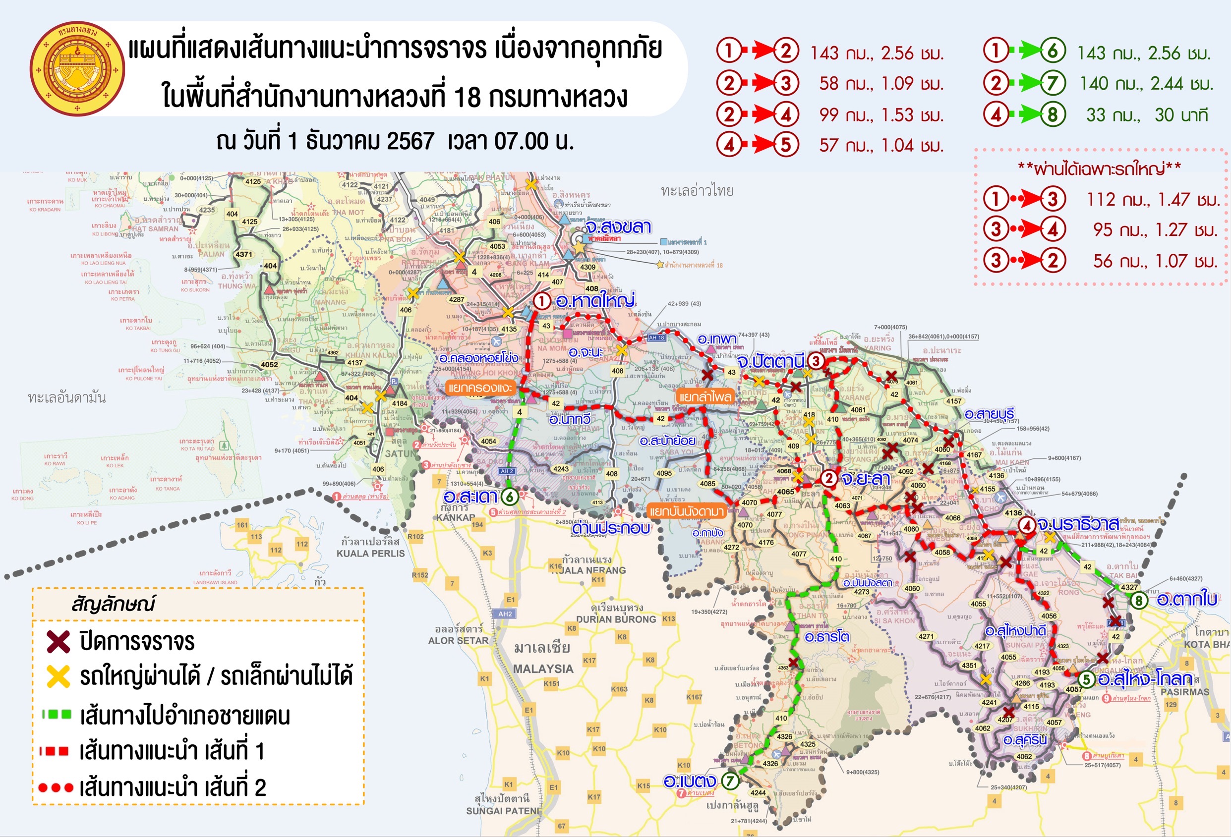 แขวงทางหลวงนราธิวาสขอแจ้งเปิดการจราจร ทางหลวงหมายเลข 0042 ตอน สะปอม - ปาเสมัส ข้อมูล วันที่ 1 ธันวาคม 2567