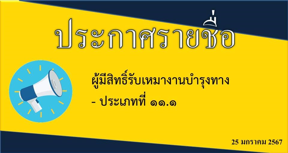 ประกาศรายชื่อผู้มีสิทธิ์รับเหมางานบำรุงทาง ประเภทที่ ๑๑.๑
