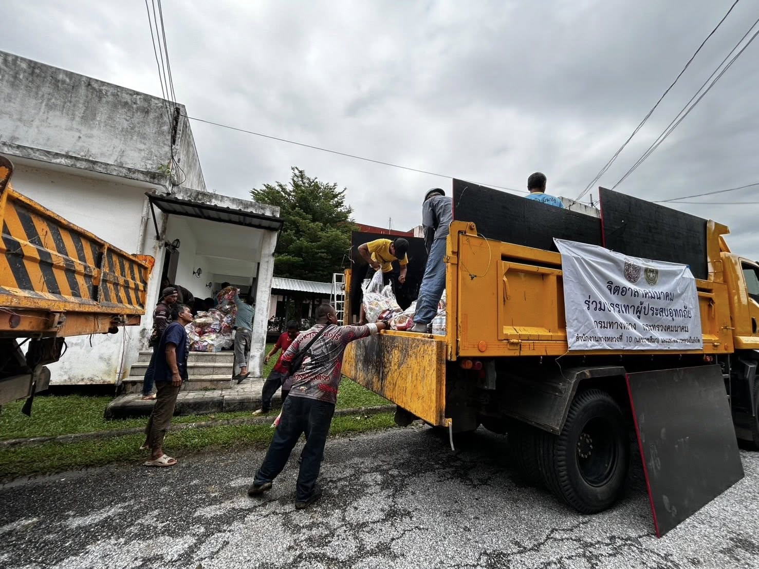 กรมทางหลวง โดยเจ้าหน้าที่ฯ ได้รับภารกิจส่งถุงยังชีพ จำนวน 1 คันรถ ไปยังแขวงทางหลวงพัทลุง