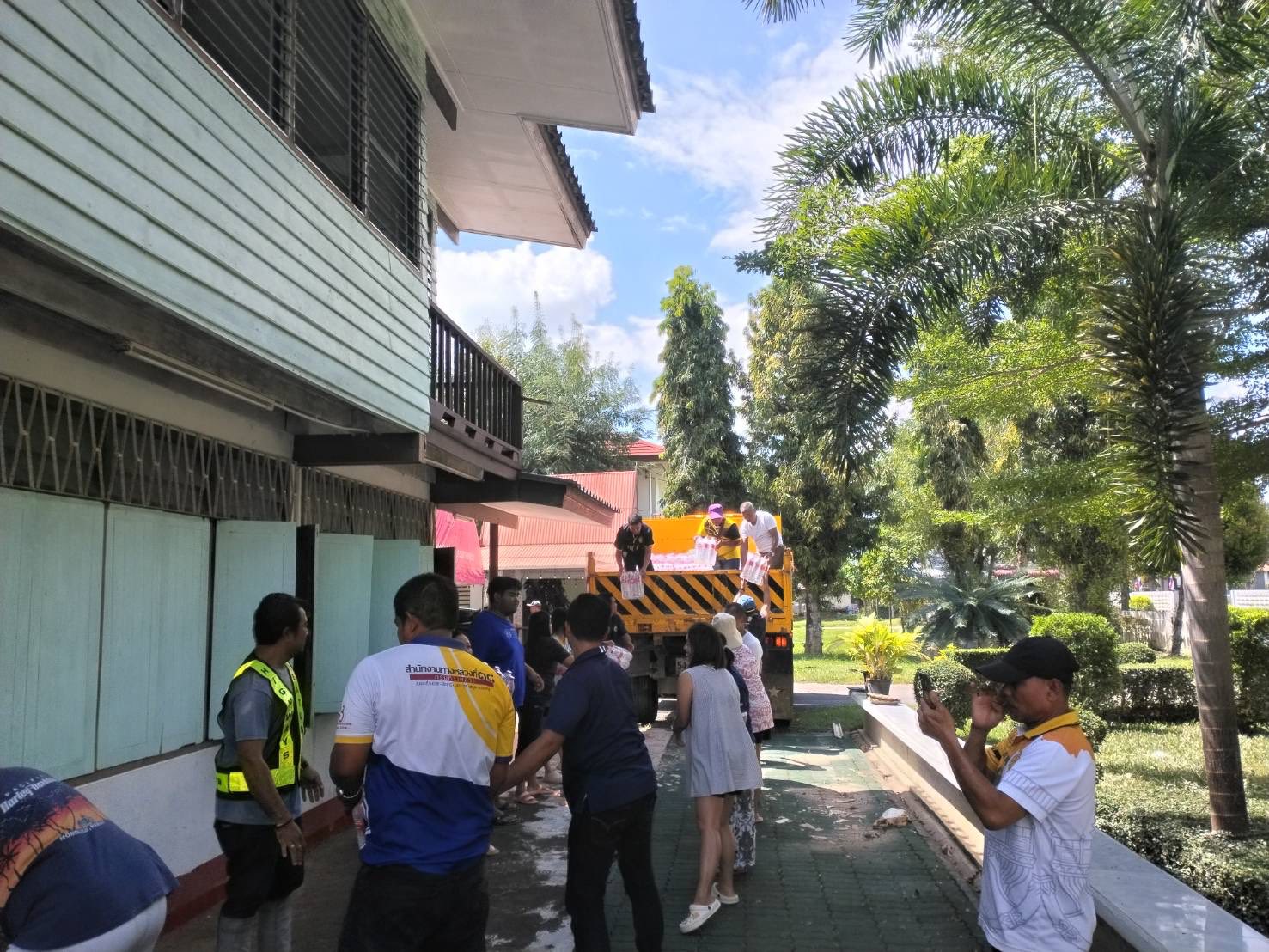 รถคาราวานกรมทางหลวง โดยเจ้าหน้าที่ฯ ได้รับภารกิจส่งถุงยังชีพและน้ำดื่มอย่างละ 1 คันรถ ไปยังแขวงทางหลวงนราธิวาส