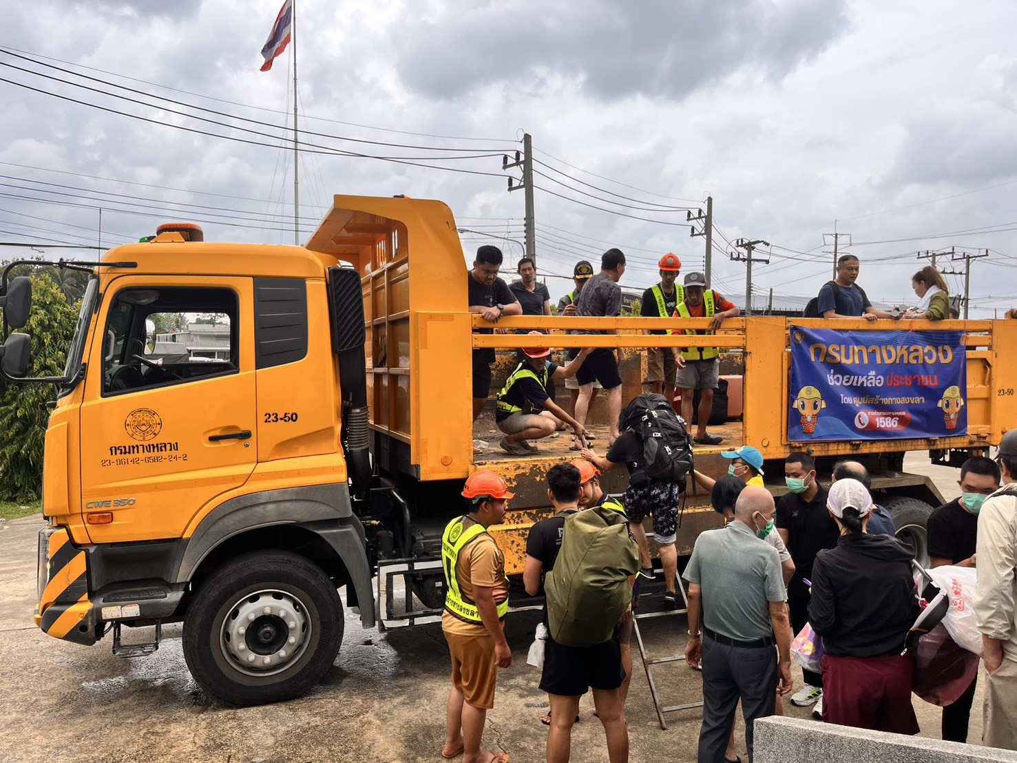 กรมทางหลวง กรมทางหลวง นำโดยเจ้าหน้าที่ ได้ให้การช่วยเหลือประชาชนโดยการรับส่งจากมณฑลทหารบกที่ 42 ไปส่งยังศูนย์พักพิงมหาวิทยาลัยสงขลานครินทร์วิทยาเขตหาดใหญ่