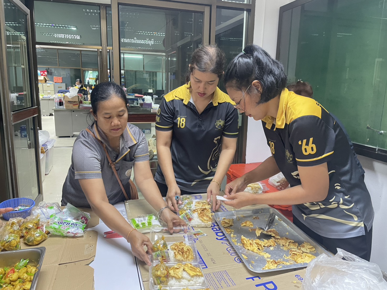 นางเสาวณีย์ ทิพย์มณี ผู้อำนวยการส่วนบริหาร และคณะผู้บริหาร และเจ้าหน้าที่ได้นำข้าวกล่อง จำนวน 100 ชุดไปแจกให้กับเจ้าหน้าที่สำนักงานในบริเวณบ้านพัก