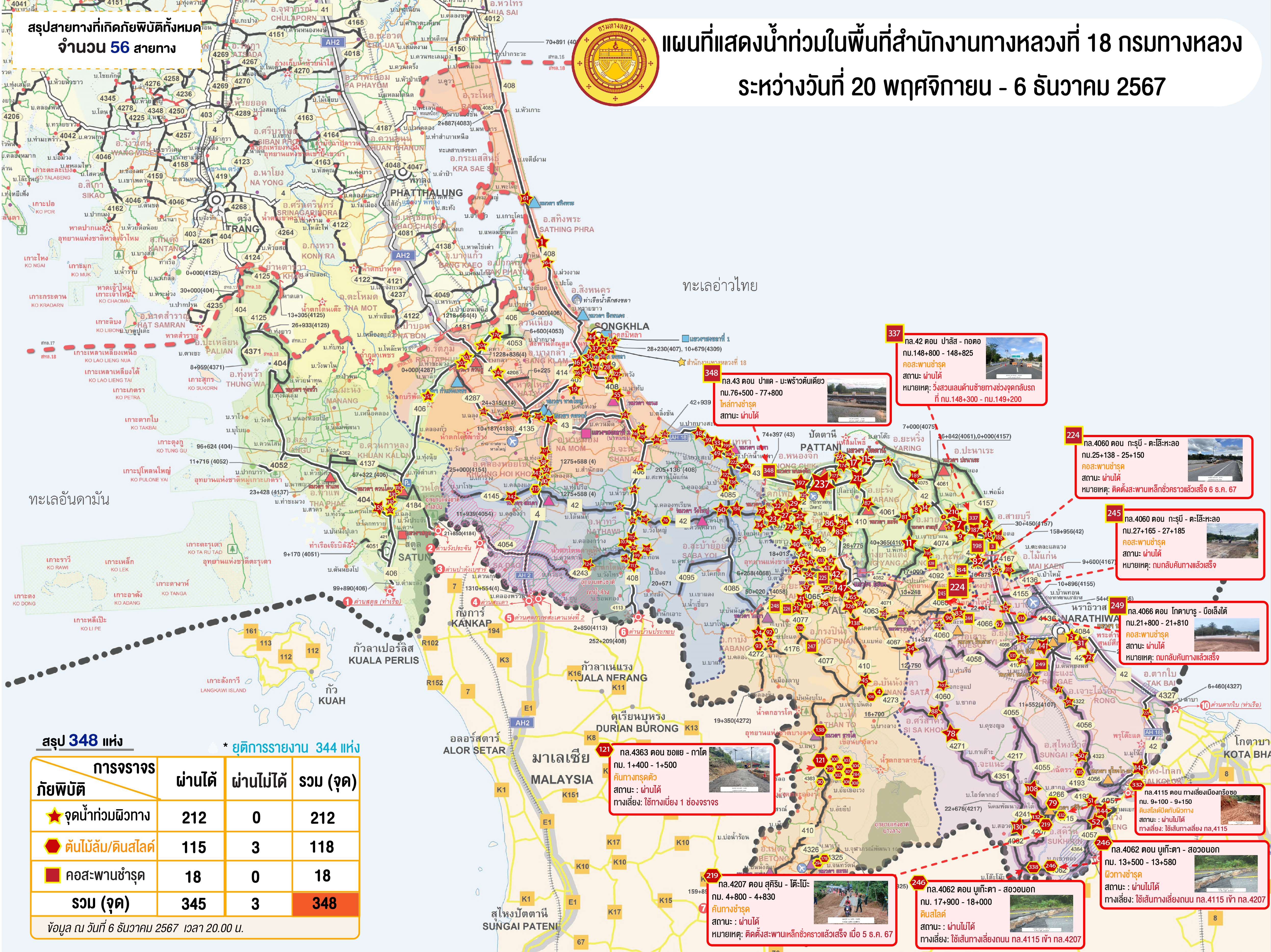 รายงานน้ำท่วมระหว่างวันที่ 20 พ.ย.- 6 ธ.ค. 67 ประจำวันที่ 6 ธ.ค. 67 ณ เวลา 20.00 น.