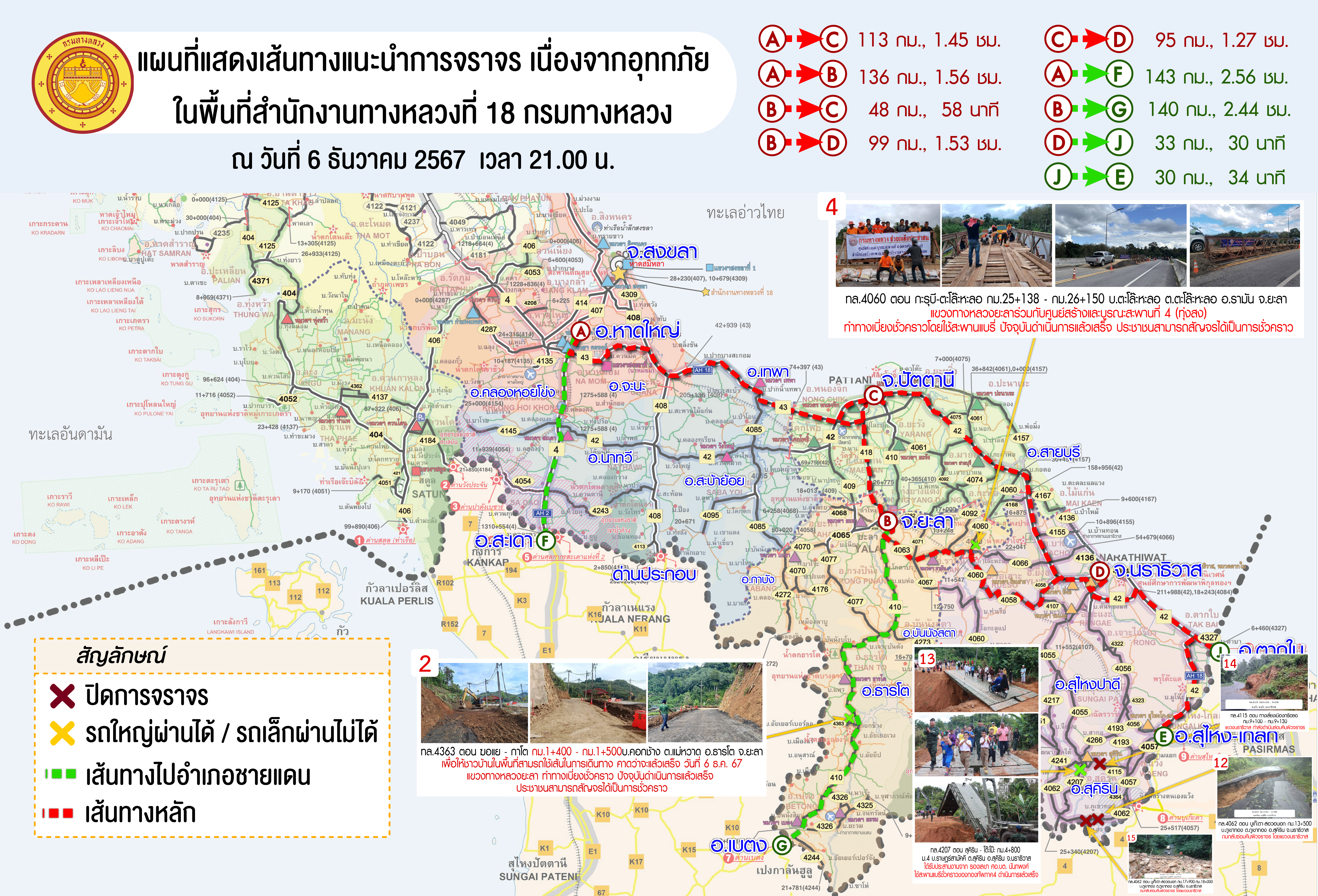แผนที่แสดงเส้นทางแนะนำการจราจร ณ วันที่ 6 ธันวาคม 2567 เวลา 21.00 น.