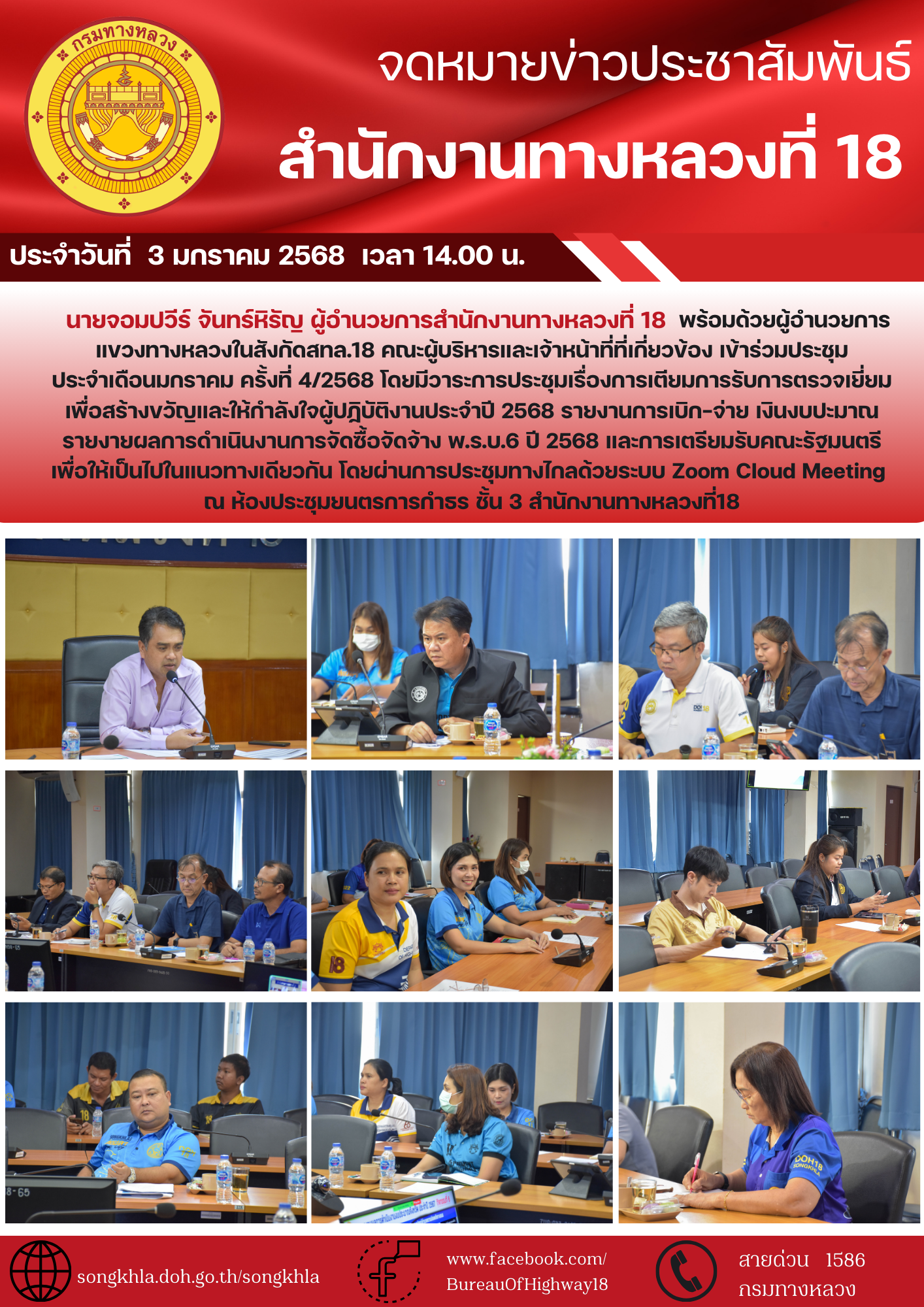 ประชุมประจำเดือนมกราคม ครั้งที่ 4/2568 สำนักงานทางหลวงที่18