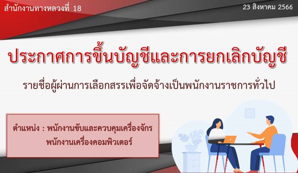 ประกาศการขึ้นบัญชีและการยกเลิกบัญชีรายชื่อผู้ผ่านการเลือกสรรเพื่อจัดจ้างเป็นพนักงานราชการทั่วไป ตำแหน่ง : พนักงานขับและควบคุมเครื่องจักร พนักงานเครื่องคอมพิวเตอร์