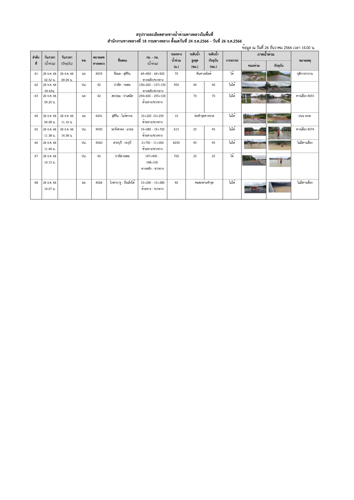 ข้อมูลข่าว : รายงานสถานการณ์น้ำท่วมวันที่ 26 ธันวาคม พ.ศ. 2566 เวลา 14.00 น.