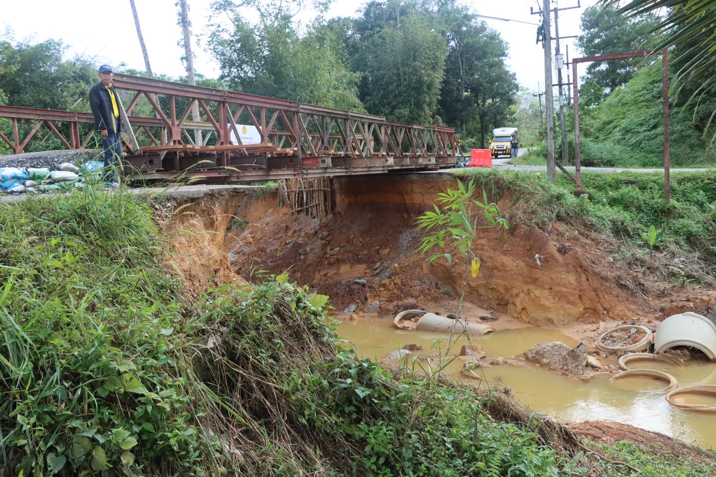 วันที่ 8 มกราคม 2567 เวลา 13.30 น. นายจิระพงศ์ เทพพิทักษ์ รองอธิบดีกรมทางหลวง ฝ่ายบำรุงทาง พร้อมด้วย นายจอมปวีร์ จันทร์หิรัญ ผู้อำนวยการสำนักงานทางหลวงที่ 18 และคณะ ลงพื้นที่ติดตามปัญหาบริเวณทางหลวงหมายเลข 4241 ตอนควบคุม 0100 ตอน สุคิริน - ไอร์ตากอ ช่วง กม.10+220 ถึง กม.10+230 เนื่องจากได้รับความเสียหายจากฝนตกหนักติดต่อกันเป็นเวลาหลายวัน เกิดน้ำท่วมและน้ำป่าไหลหลาก ส่งผลให้ถนนถูกกัดเซาะได้รับความเสียหาย ประชาชนในพื้นที่ไม่สามารถสัญจรไปมาได้ จากสถานการณ์ฝนตกหนักอย่างต่อเนื่อง ตั้งแต่ 24 ธันวาคม 2566 - 4 มกราคม 2567 ที่ผ่านมา โดยมีนายสมัคร เลือดวงหัด ผู้อำนวยการแขวงทางหลวงนราธิวาส รายงานสรุปการดำเนินงานวิธีการแก้ไขปัญหาดังกล่าว ซึ่งในขณะนี้ได้ติดตั้งสะพานเบลีย์ให้ประชาชนใช้เส้นทางเป็นการชั่วคราว
