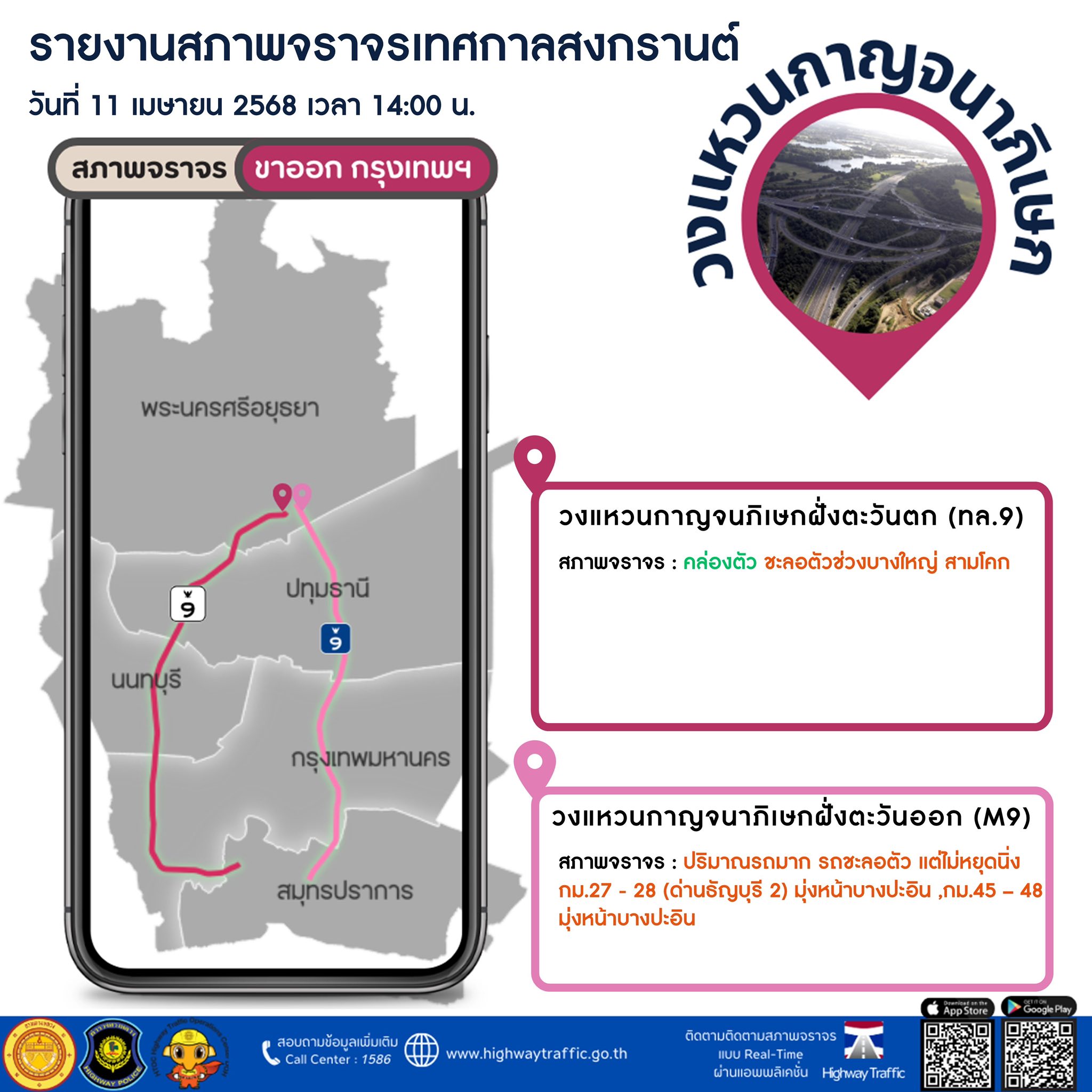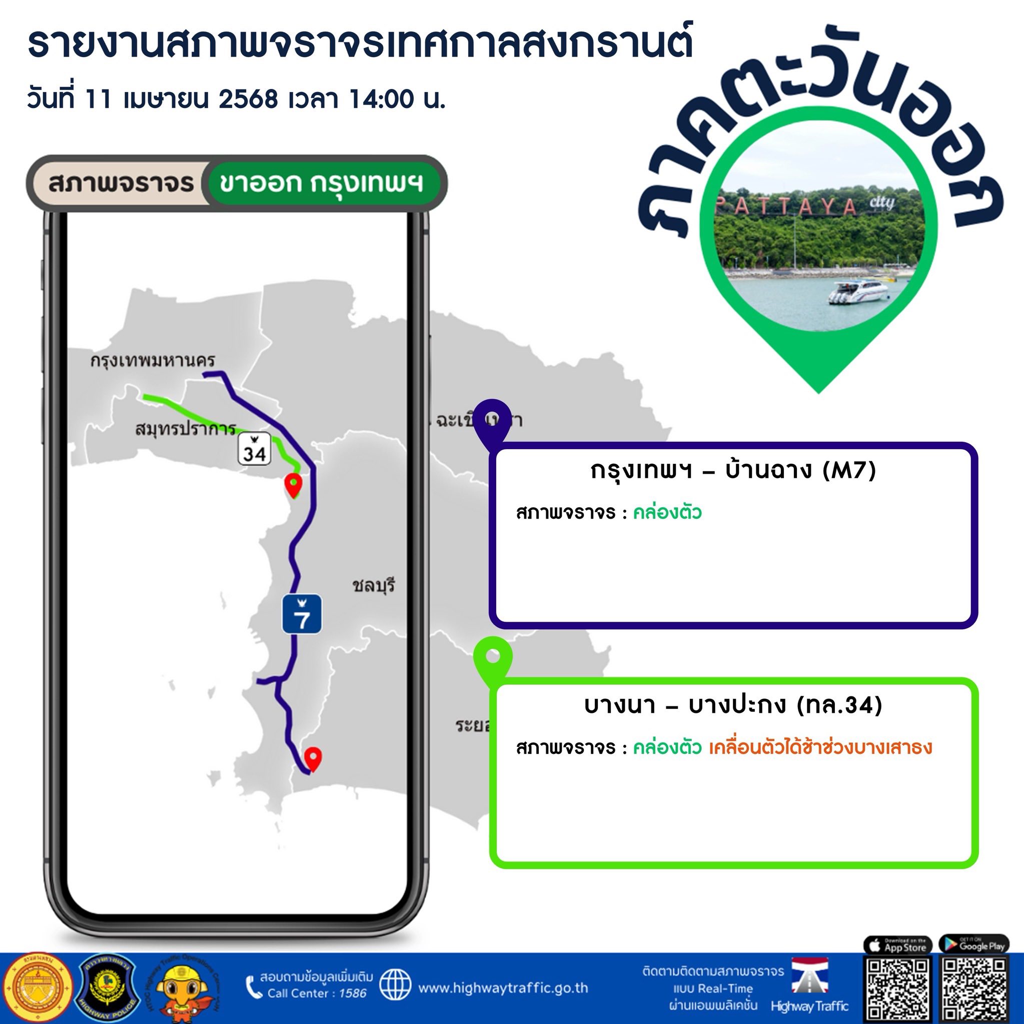 แอปดูรถติด Highway Traffic เป็นแอปพลิเคชันที่พัฒนา โดยกรมทางหลวง กระทรวงคมนาคม มีประโยชน์อย่างมากสำหรับผู้ใช้ที่ต้องการเช็คสภาพจราจรบนทางหลวงโดย เฉพาะช่วงเทศกาลสงกรานต์ปีนี้ สามารถเช็คได้แบบเรียลไทม์ จะเลือกเช็คเส้นทางจราจรเป็นแบบแผนที่ หรือผ่านภาพจากกล้องวงจรปิด (CCTV) กว่า 100 ตัว บนถนนทางหลวงสายหลักกระจายอยู่ทั่วทั้งประเทศ พร้อมบอก ความเร็วเฉลี่ยบนถนนเส้นนั้น นอกจากนี้คุณยังสามารถเช็คจุดบริการทางหลวง จุดจอดแวะพักระหว่างทาง เพื่อให้ผู้ใช้รถบนทางหลวงได้รับความสะดวกมากที่สุด