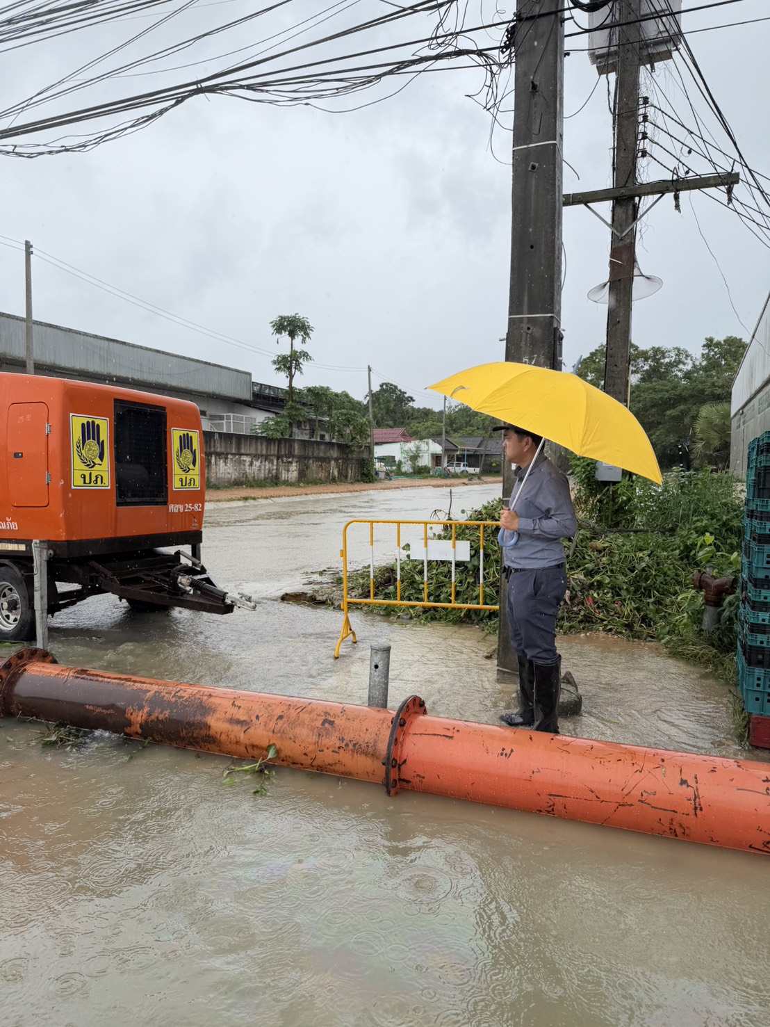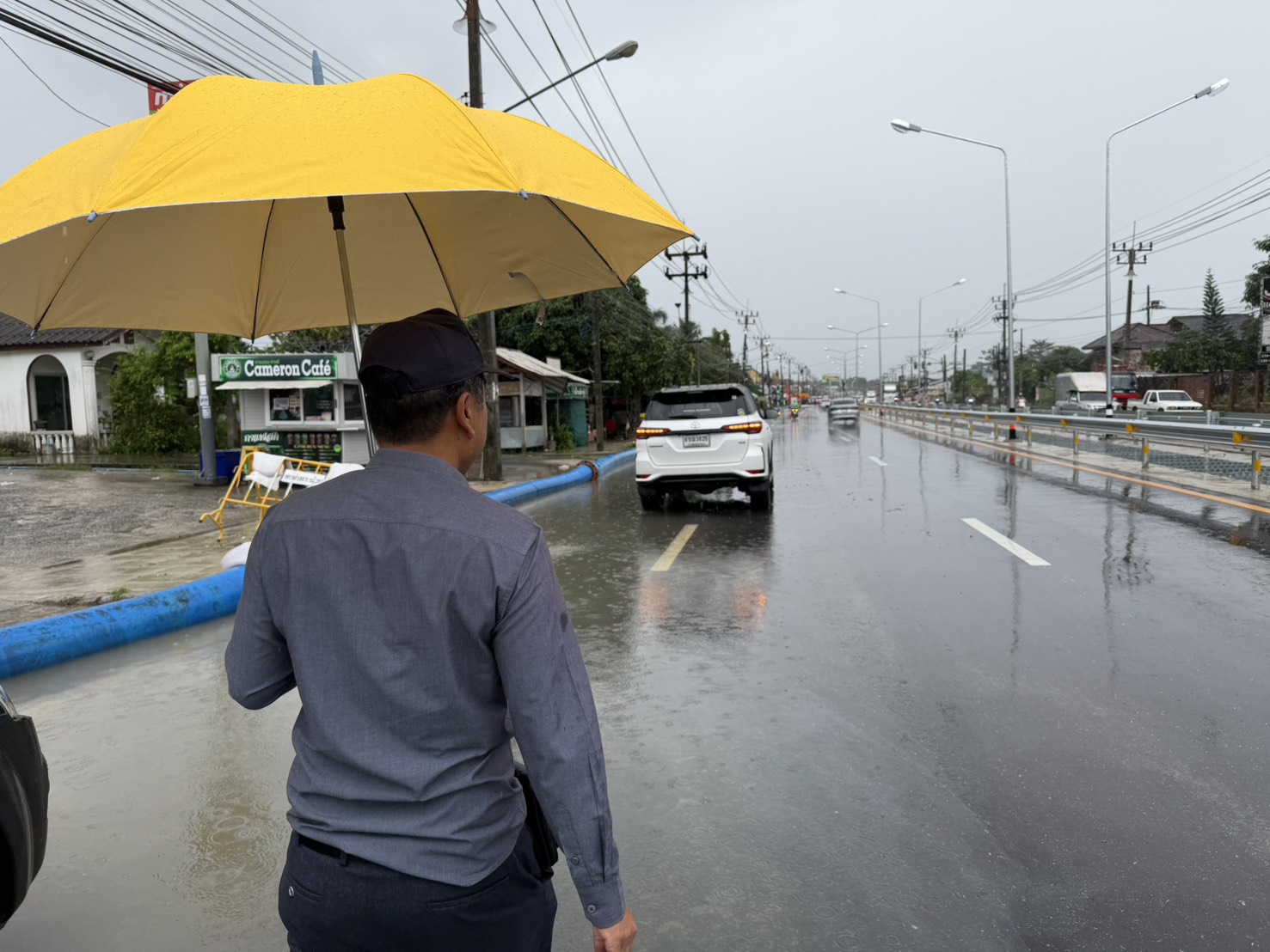วันที่ 20 พฤศจิกายน 2568 นายจอมปวีร์ จันทร์หิรัญ ผู้อำนวยการสำนักงานทางหลวงที่ 18 ลงพื้นที่ตรวจดูสถานการณ์น้ำท่วมผิวจราจร เนื่องจากฝนตกหนักต่อเนื่อง น้ำระบายไม่ทัน บนทางหลวงหมายเลข 0407 ตอน คลองหวะ - ควนหิน ช่วง กม.: 13+800 ถึง กม.: 14+500 (ซ้ายทาง - ขวาทาง)