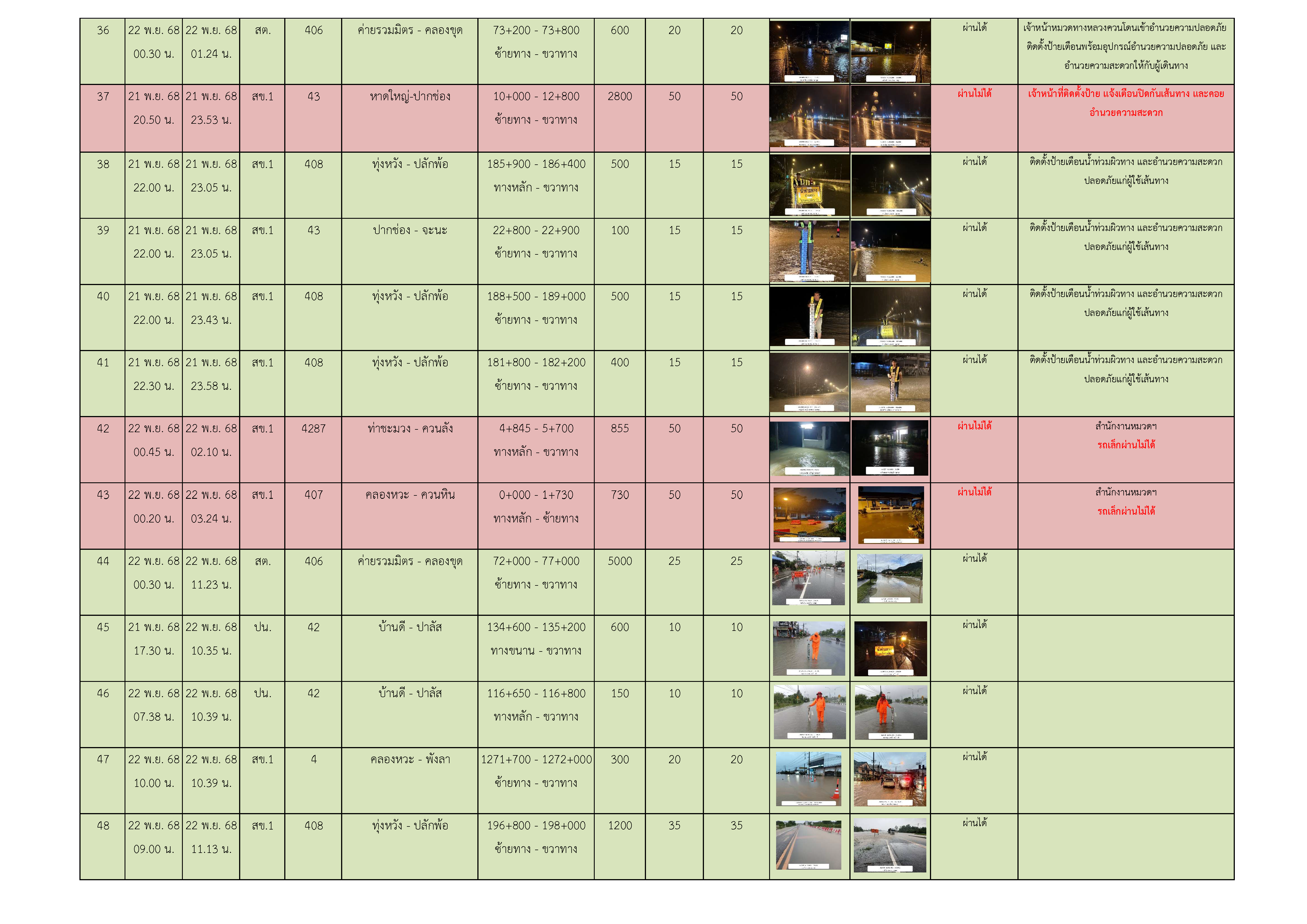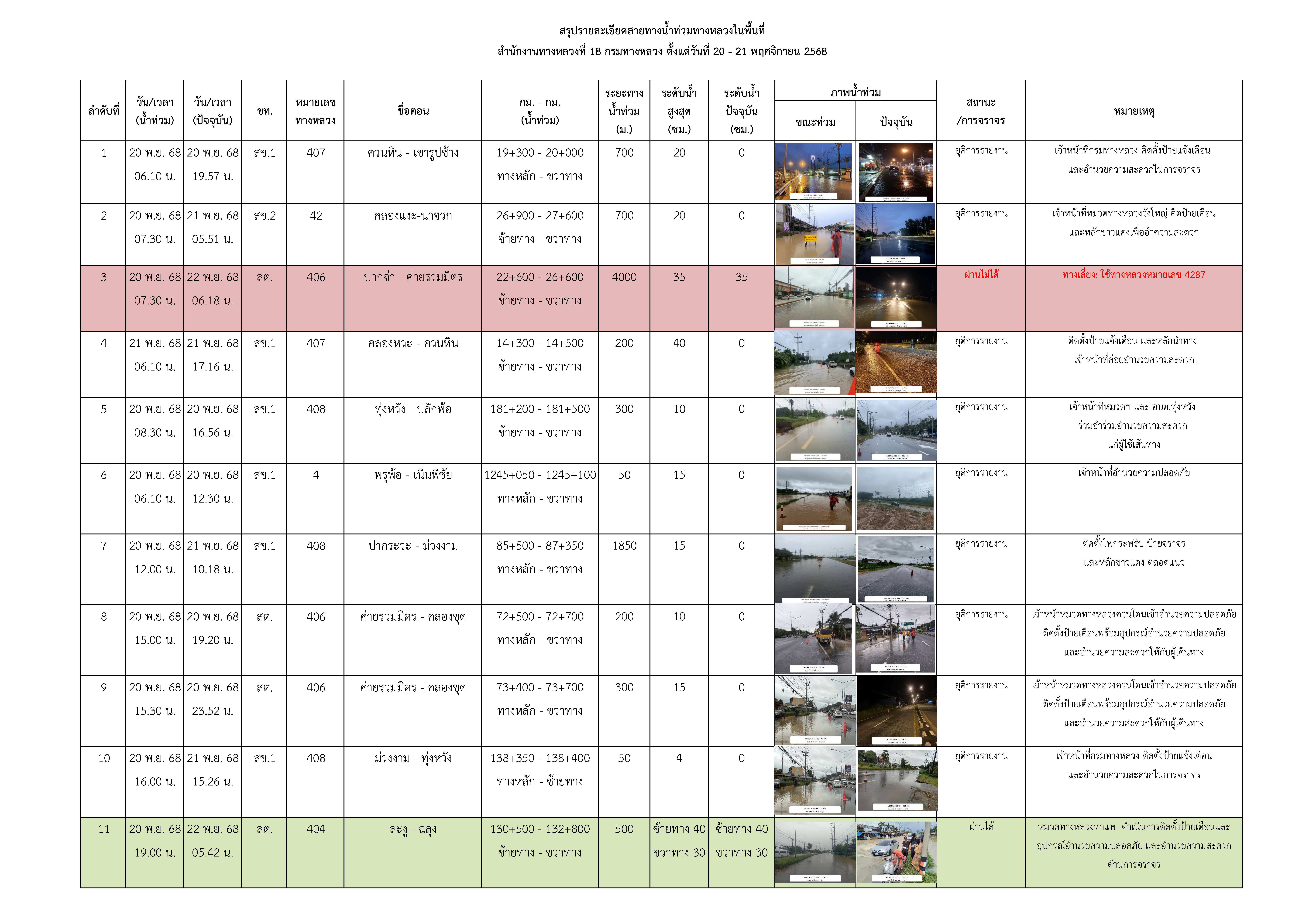 รายงานน้ำท่วมในระหว่างวันที่ 20-22 พ.ย. 68 ประจำวันที่ 22 พ.ย. 68 ณ เวลา 13.00 น. ตามรายงานแนบ