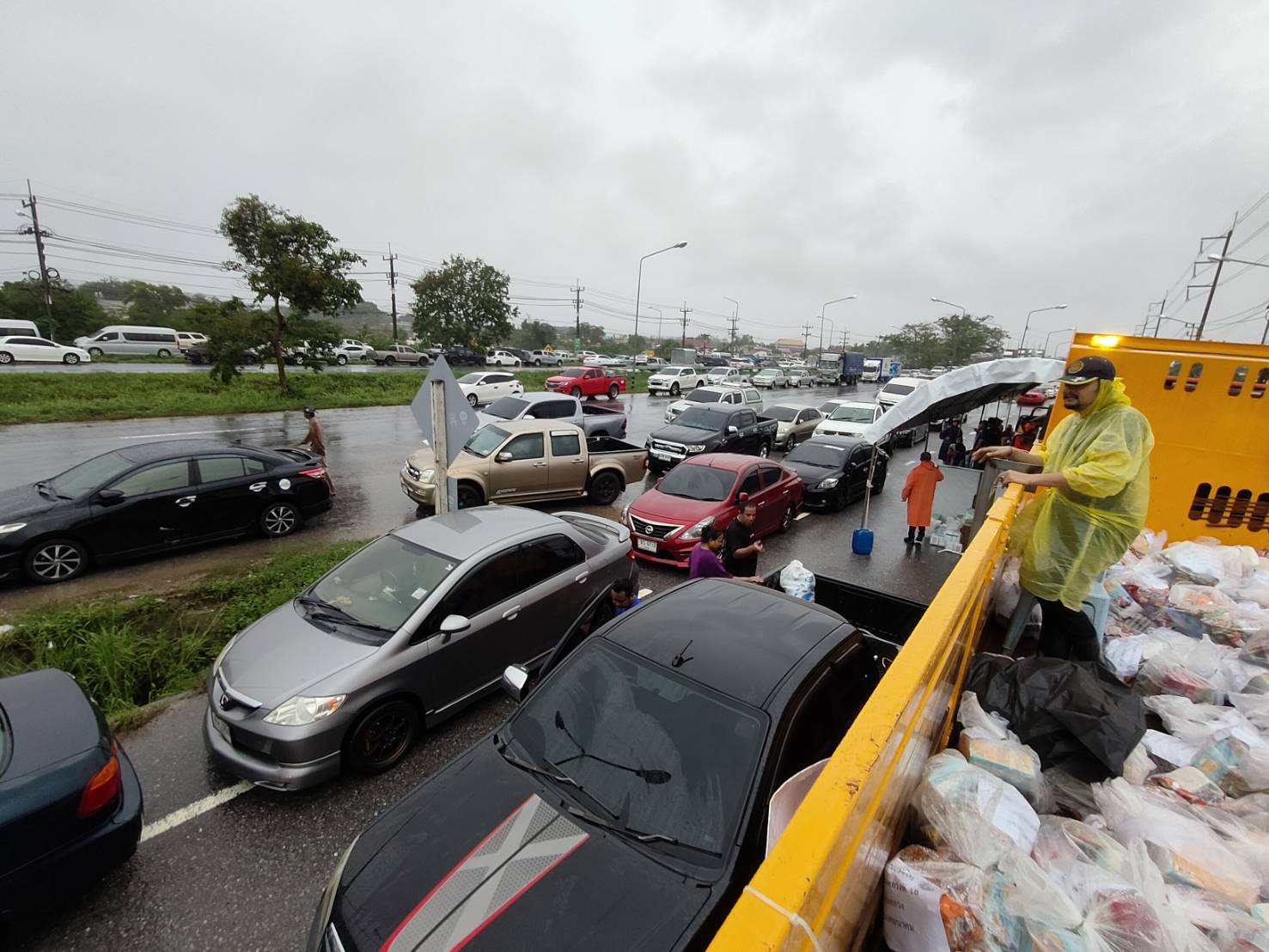 ผู้อำนวยการสำนักงานทางหลวงที่ 18 ได้นำข้าวกล่องพร้อมน้ำดื่ม จำนวน 200 ชุด ไปแจกผู้ประสบภัยบริเวณแยกคลองแห