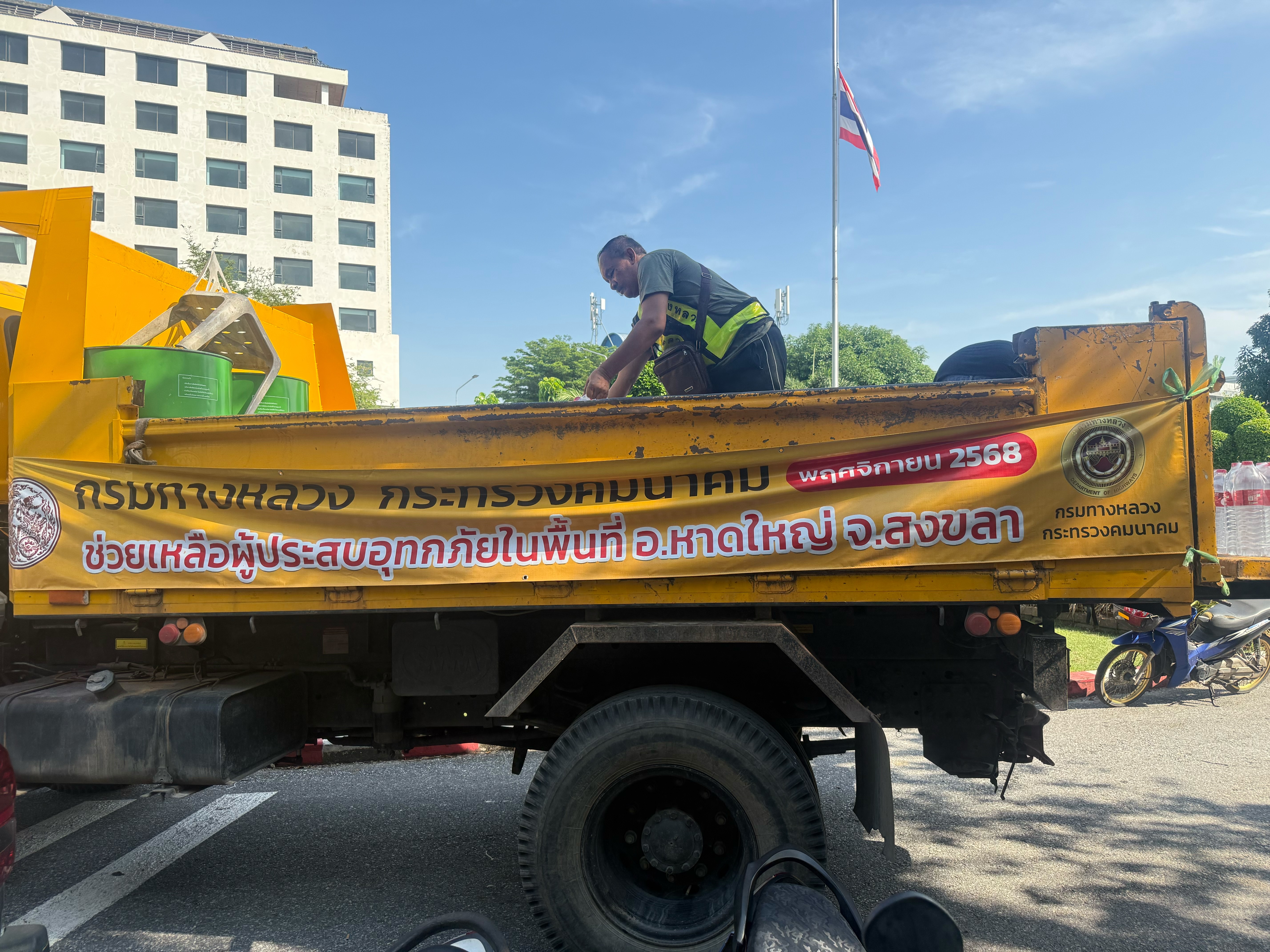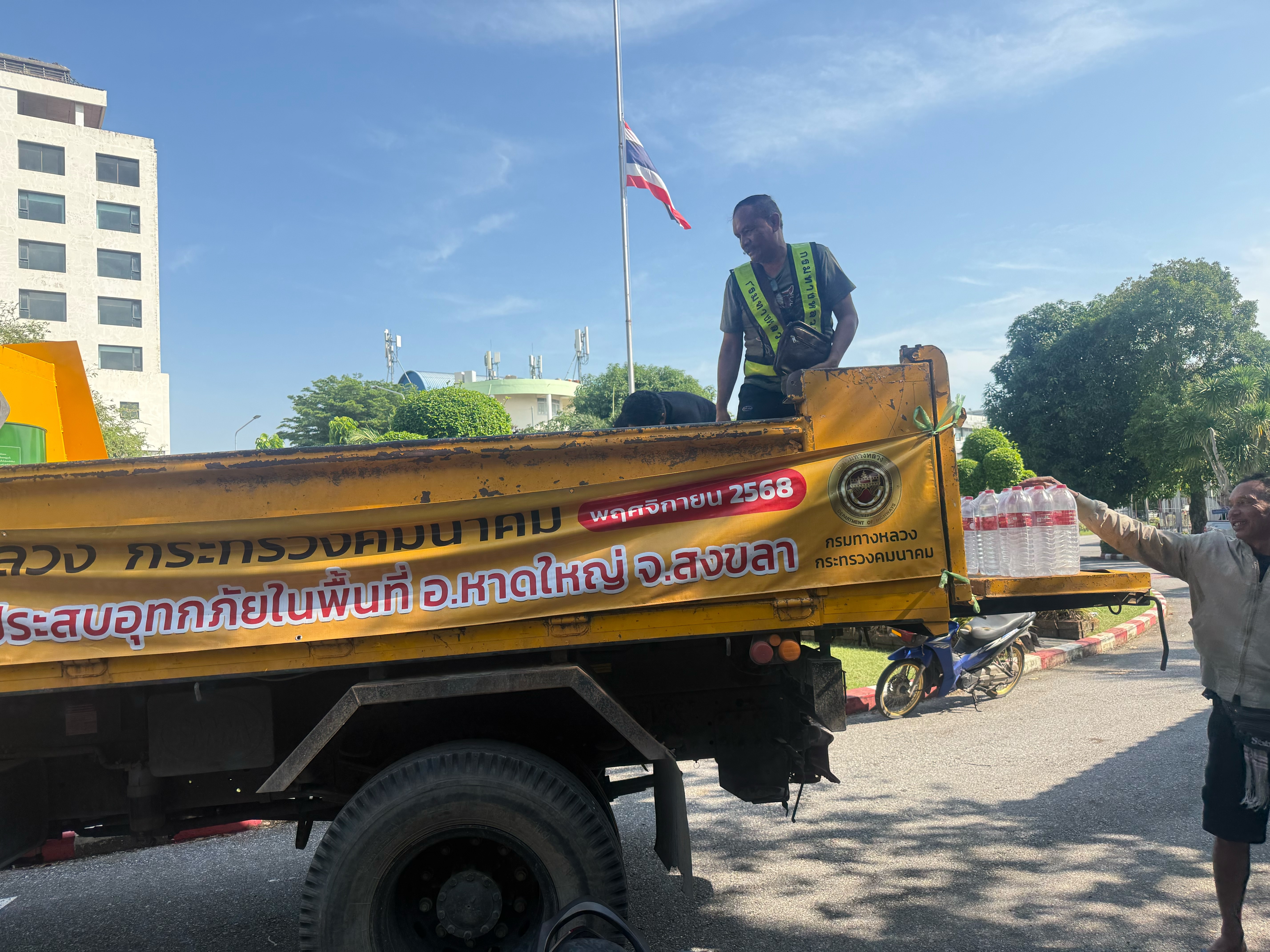วันที่ 29 พฤศจิกายน 2568 กรมทางหลวงโดยเจ้าหน้าที่สำนักงานทางหลวงที่ 15 ได้รับภารกิจรับส่งน้ำดื่มไปยังแขวงทางหลวงสงขลาที่1 เพื่อที่จะนำไปช่วยเหลือให้แก่ผู้ประสบภัย ด้วยความห่วงใยและร่วมแรงร่วมใจของพนักงานกรมทางหลวง
