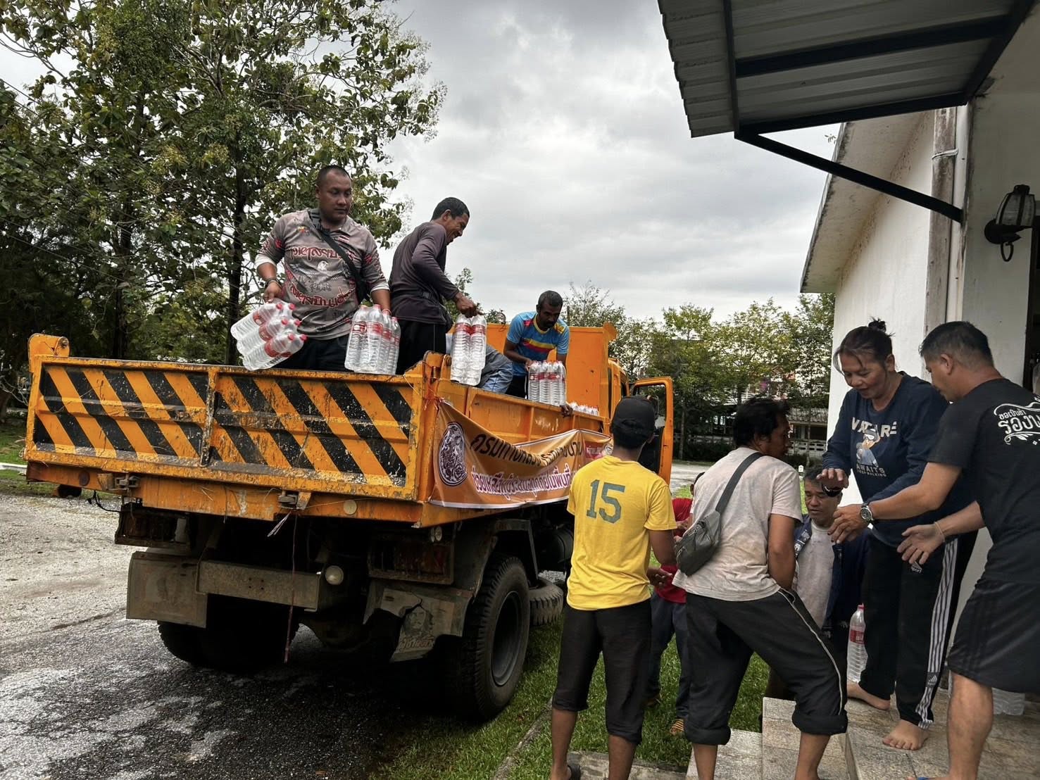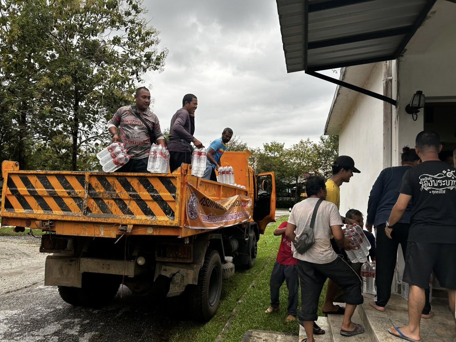 รถคาราวานกรมทางหลวง โดยเจ้าหน้าที่ฯ ได้รับภารกิจส่งถุงยังชีพและน้ำดื่มอย่างละ 1 คันรถ ไปยังแขวงทางหลวงนราธิวาส
